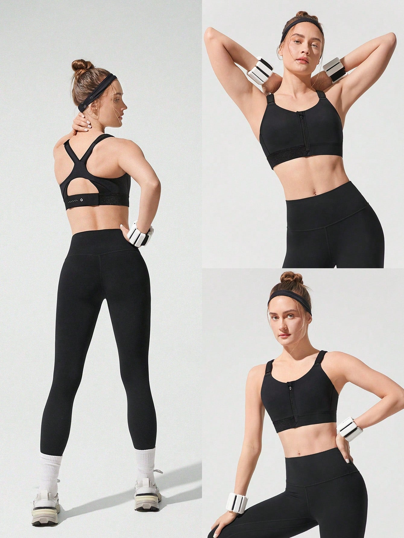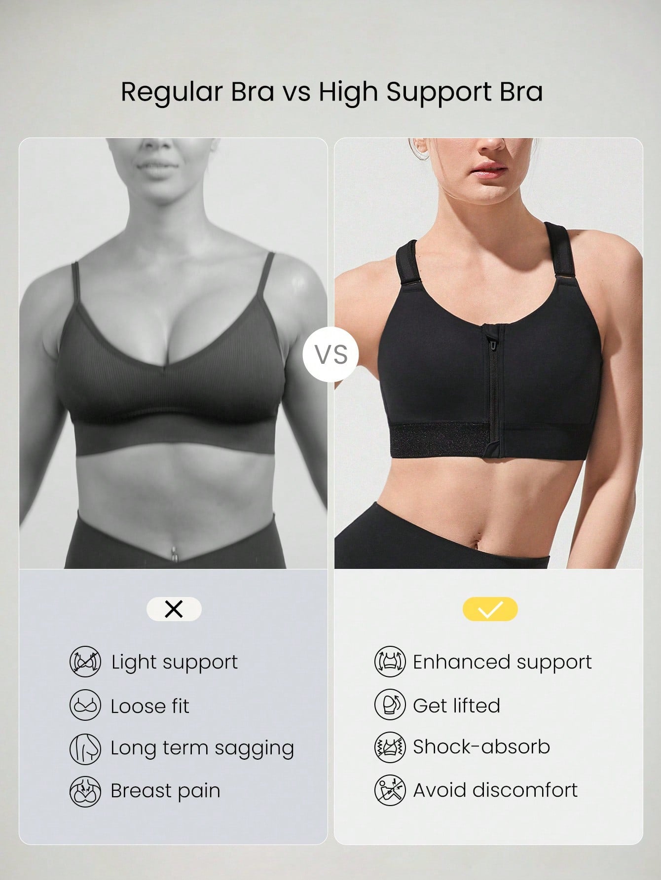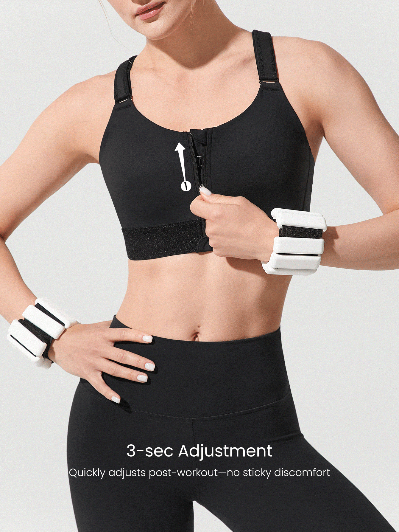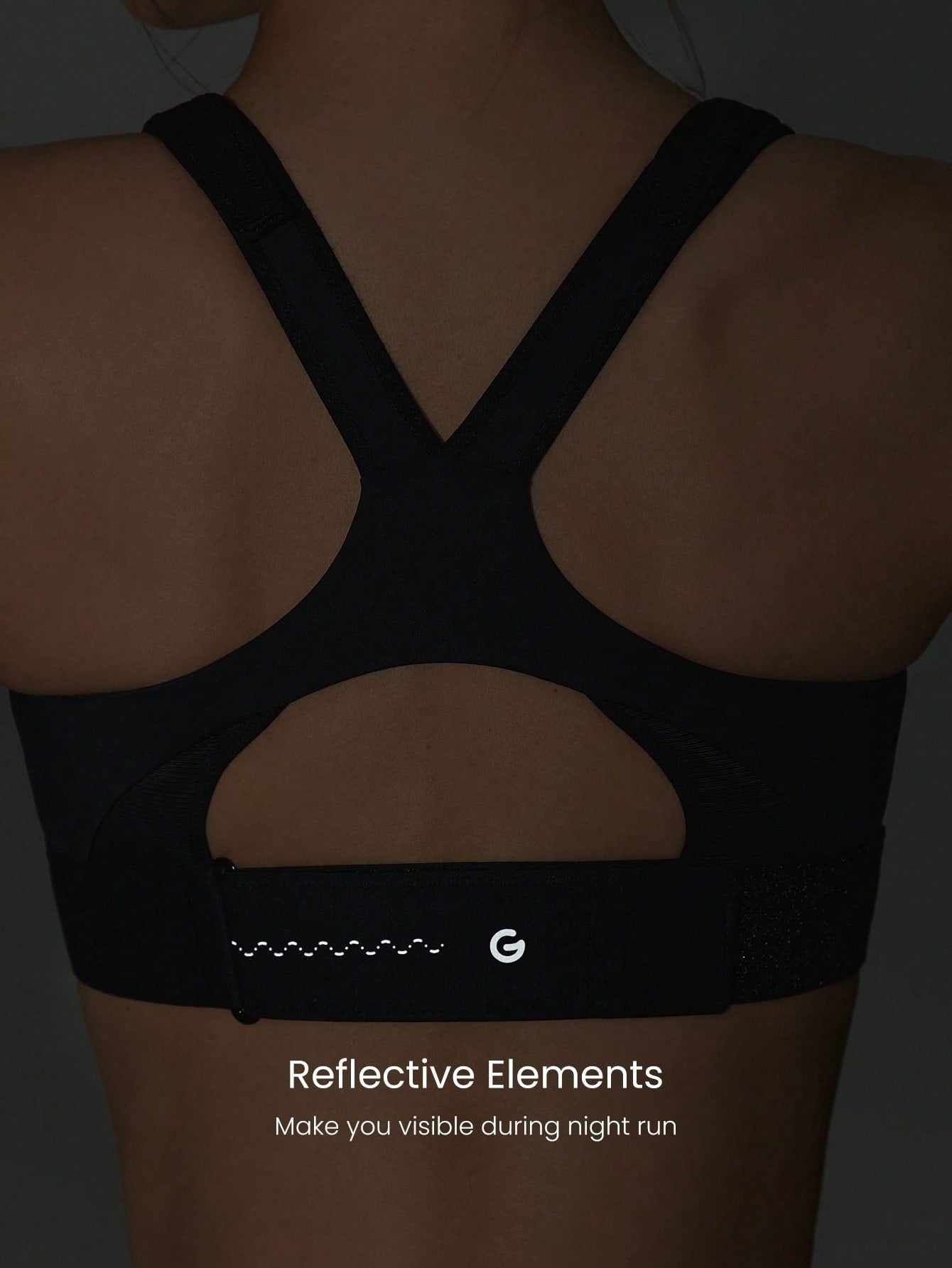 GLOWMODE Make An Impact Quick Dry Foam Cup Mesh Zipper Front Sports Bra High Impact Running Jogging Workout