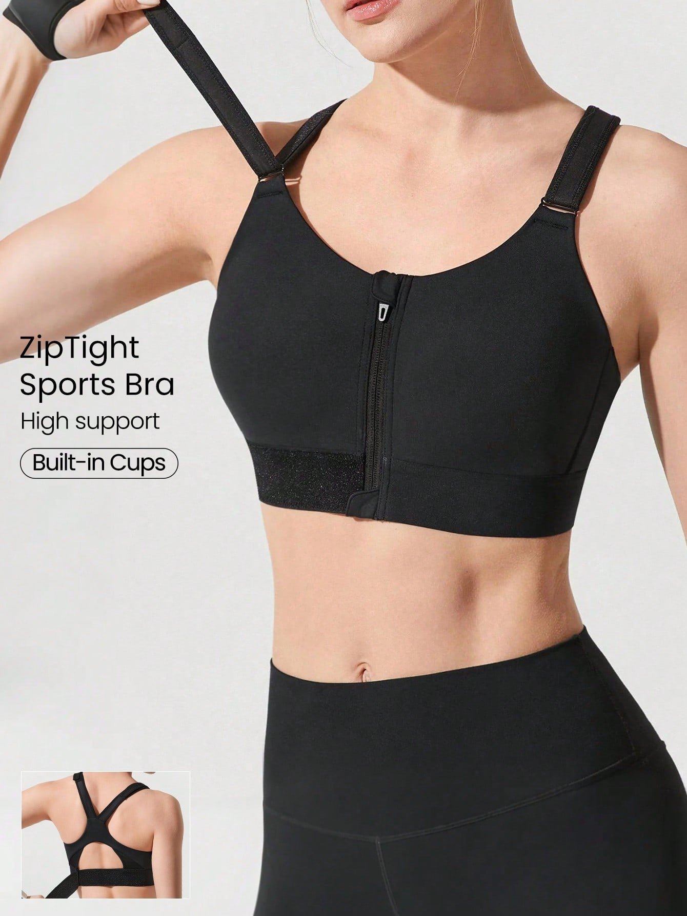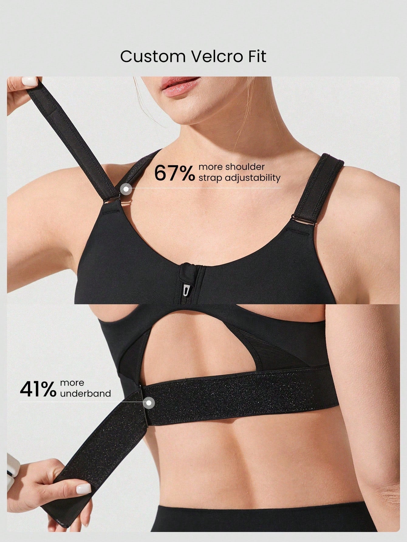 حمالة صدر رياضية GLOWMODE Make An Impact سريعة الجفاف مزودة بكأس من الفوم وسحاب أمامي شبكي وحمالة صدر رياضية عالية التأثير للجري والركض والتمرين