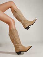 حذاء غربي بكعب سميك ونمط جرافيكي