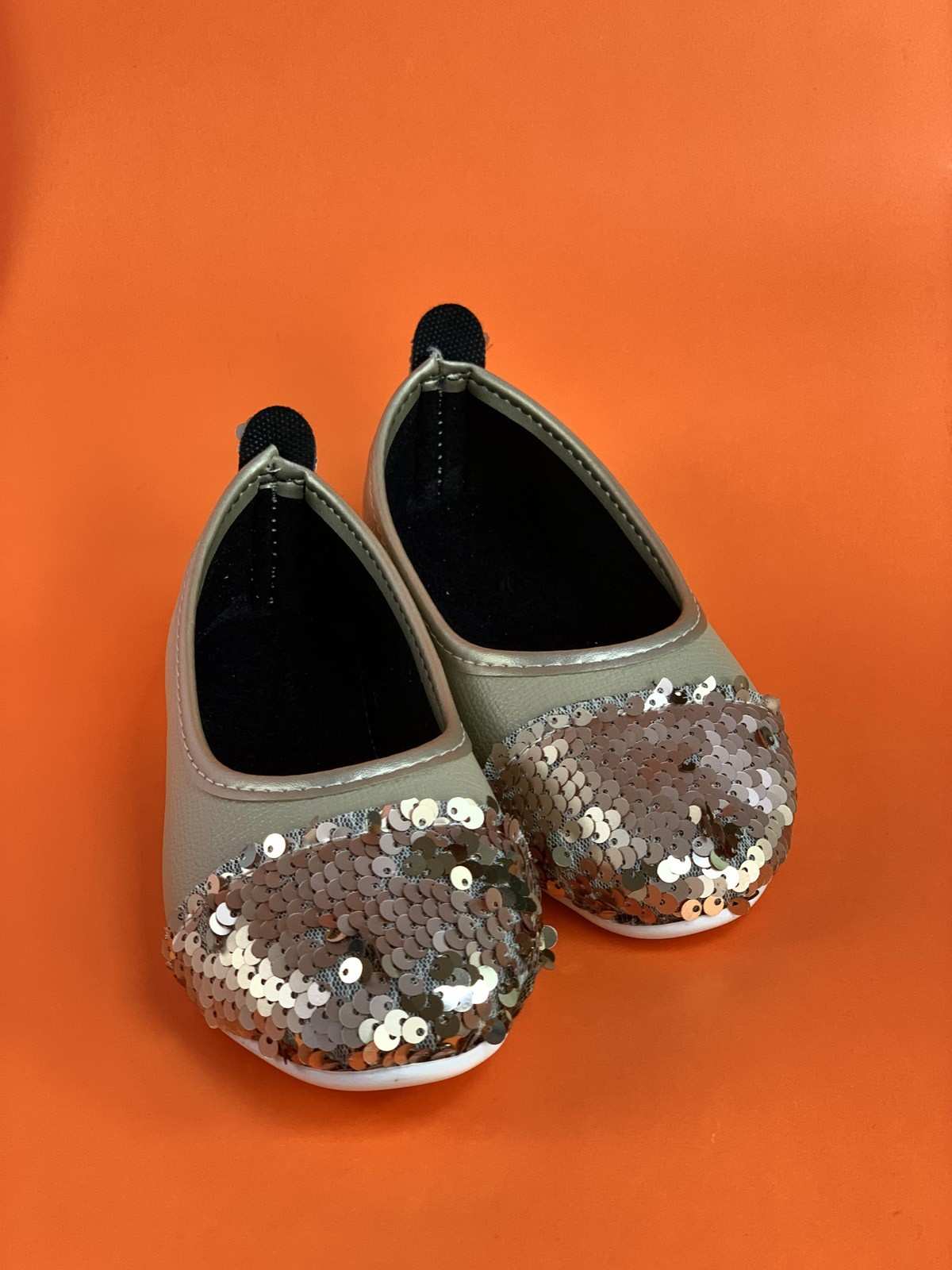 للنساء - حذاء رمادي مع دوائر فضية لامعة