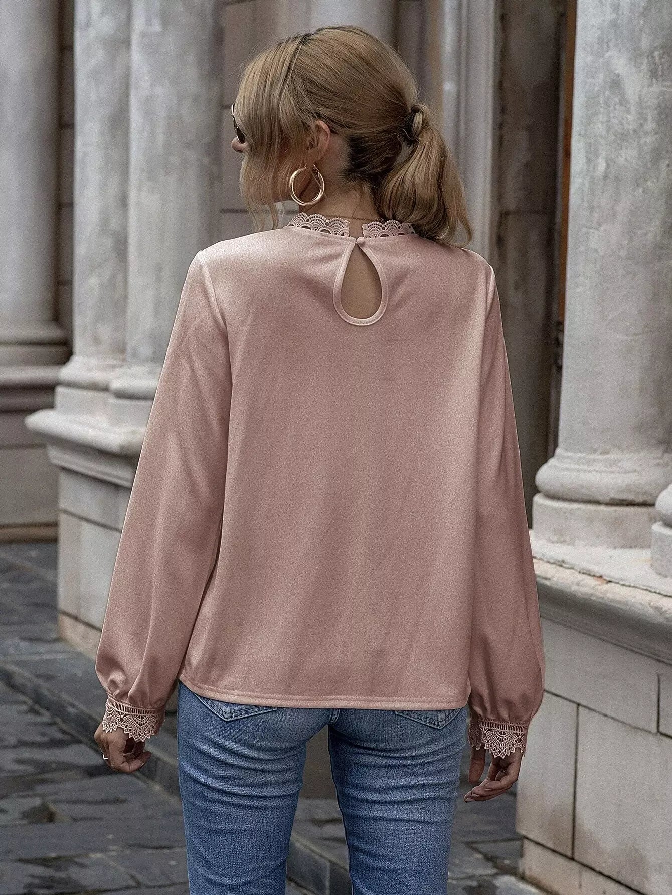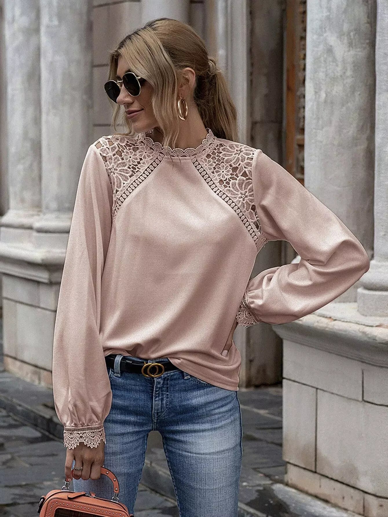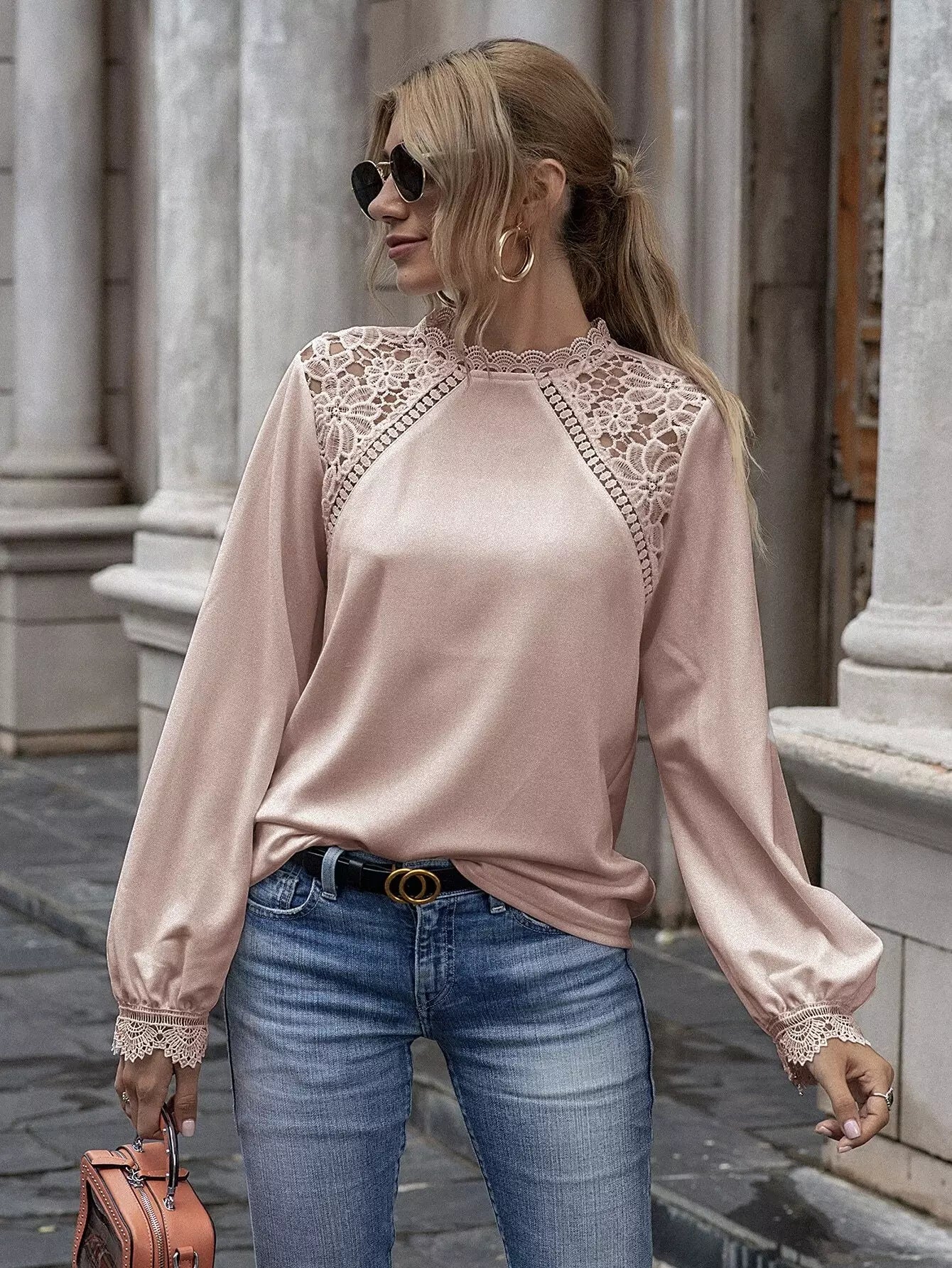 بلوزة دانتيل مخرمة من الدانتيل المخرم بفتحة ظهر مخرمة