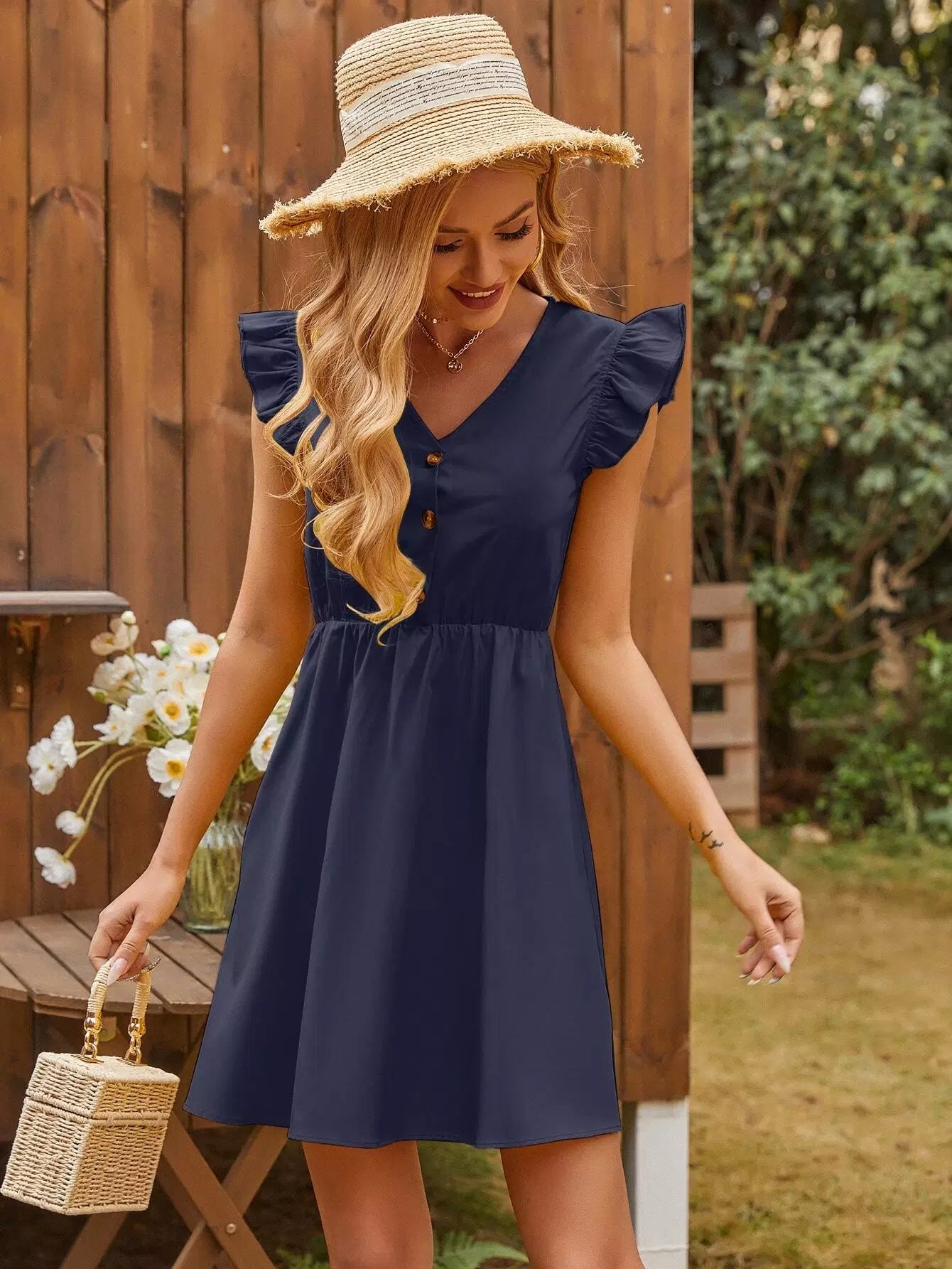فستان بنصف زر بحافة كشكش على شكل حرف A