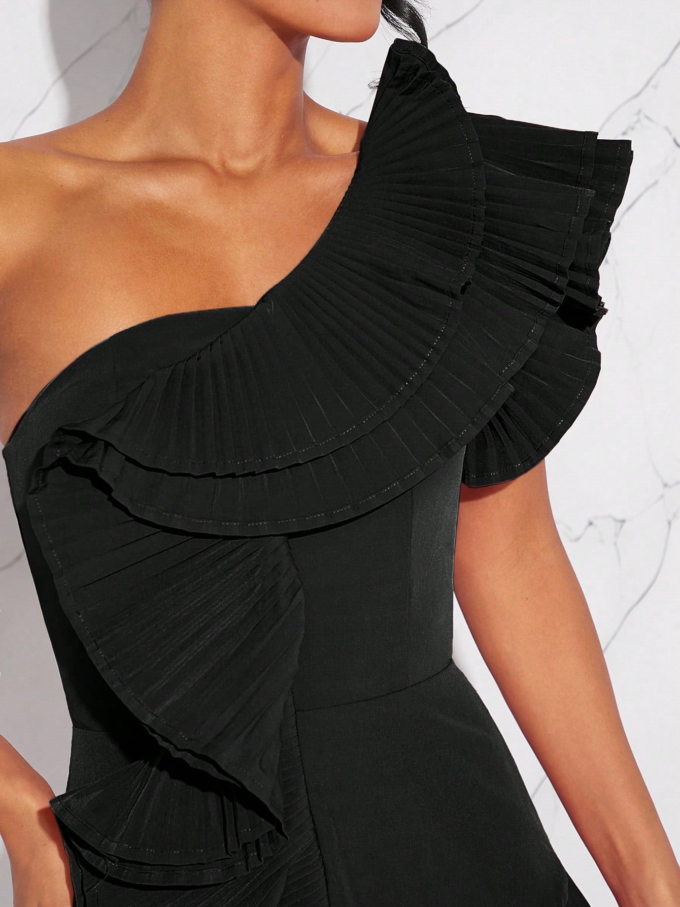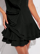 Hauture Fall Women Clothes, Women's Black Summer Elegant Sleeveless Dress With Pleats, Asymmetrical Neckline,