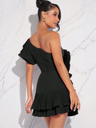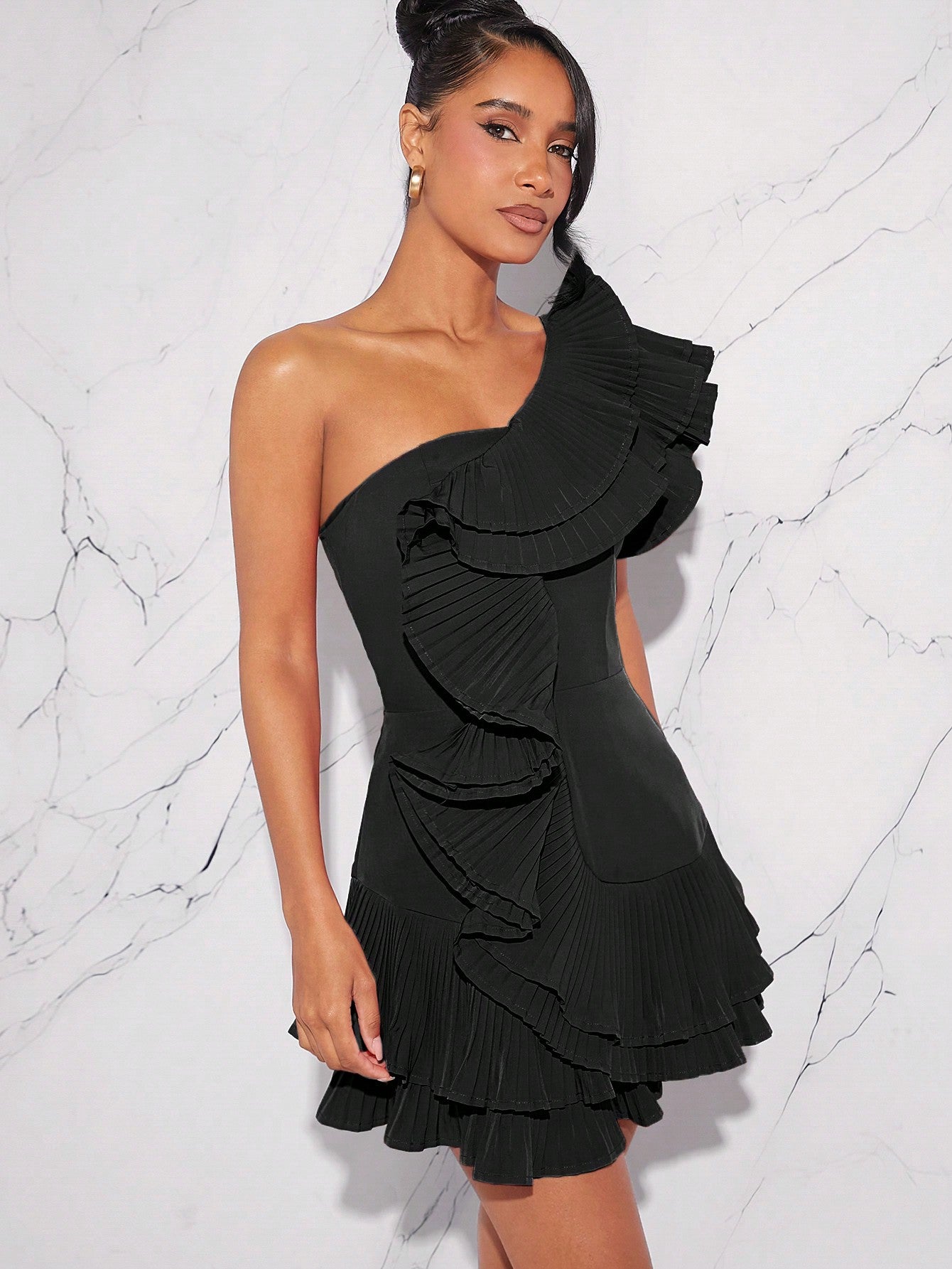 ملابس خريفية راقية للنساء، فستان صيفي أنيق أسود بدون أكمام مع طيات، رقبة غير متماثلة،