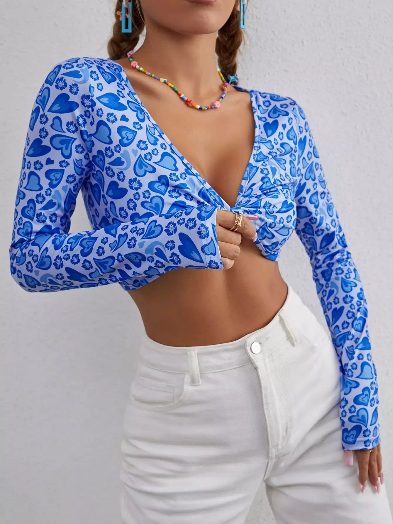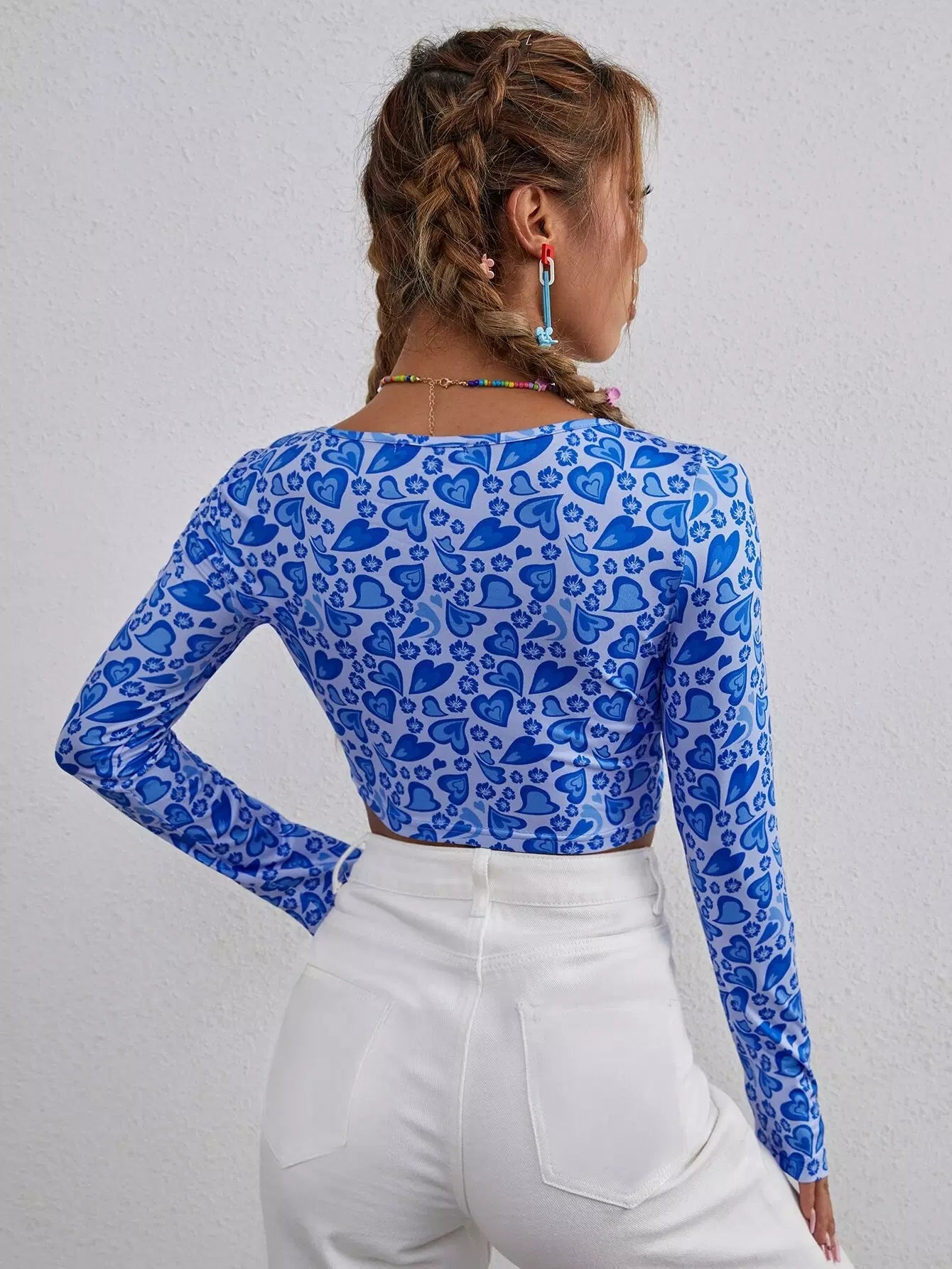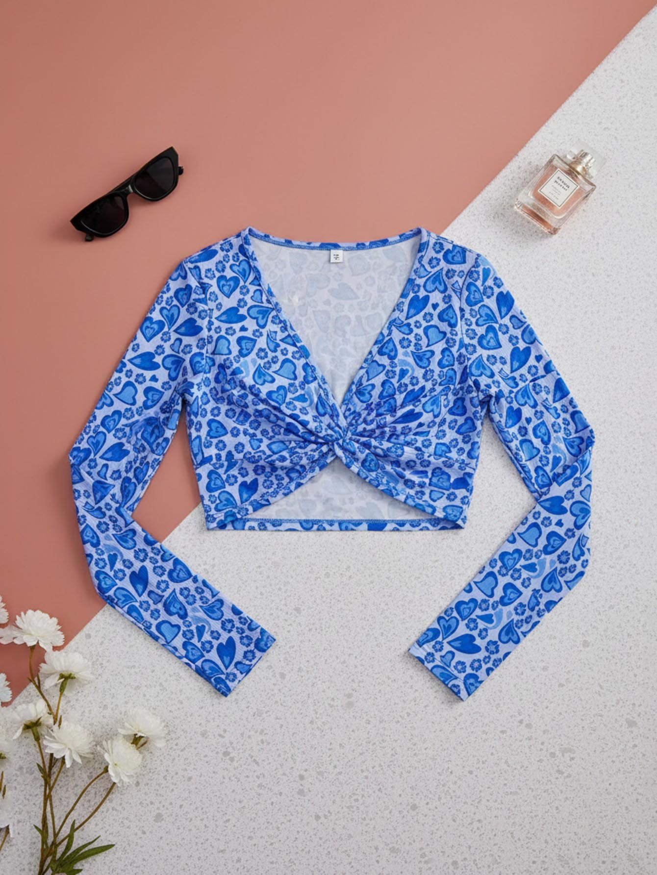 توب قصير قصير بطبعة قلب وزهور بطبعة قلب وزهور