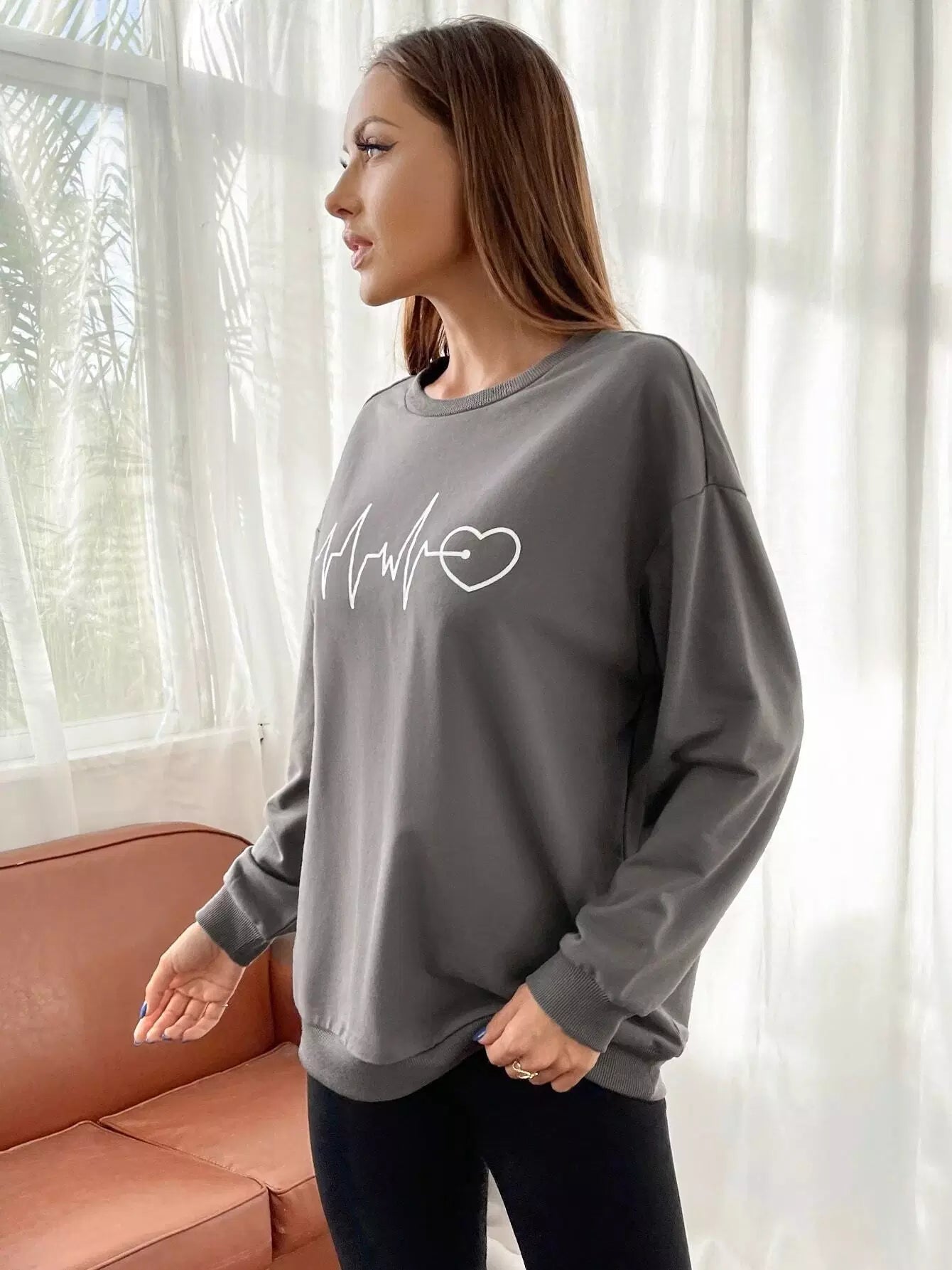 سويت شيرت ذو أكتاف منسدلة برسمة قلب