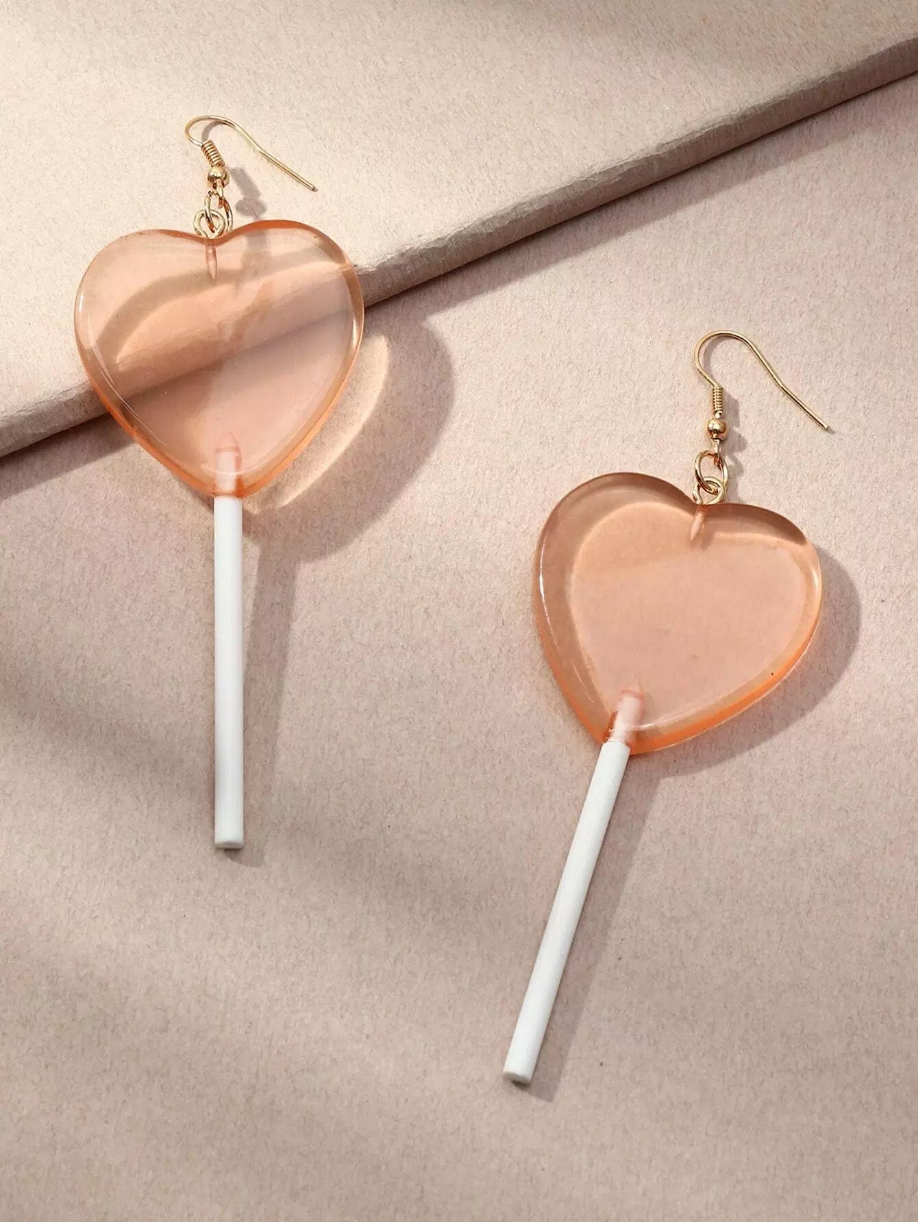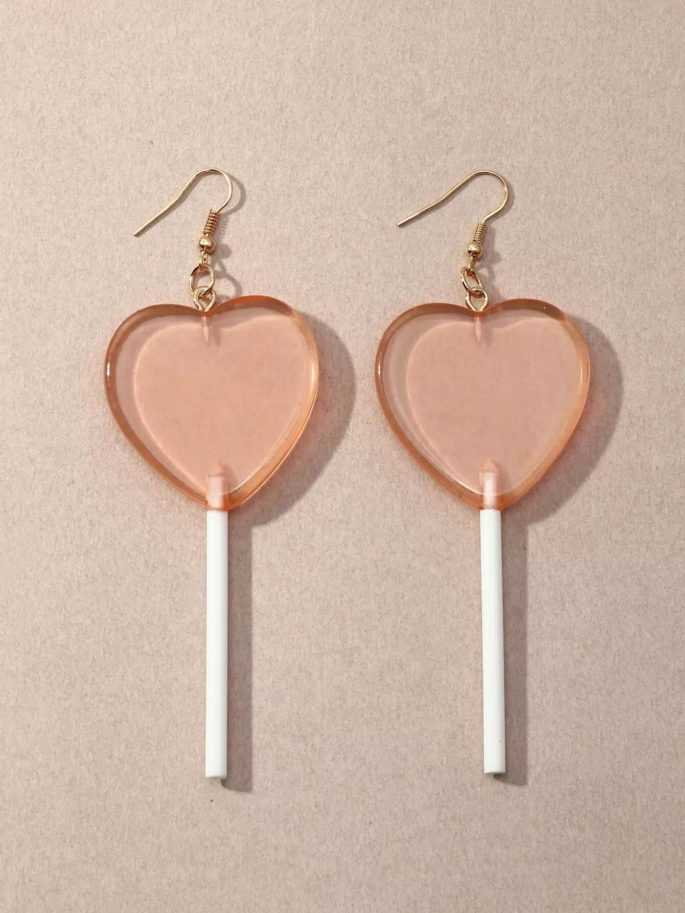 النساء - أقراط متدلية على شكل مصاصة على شكل قلب