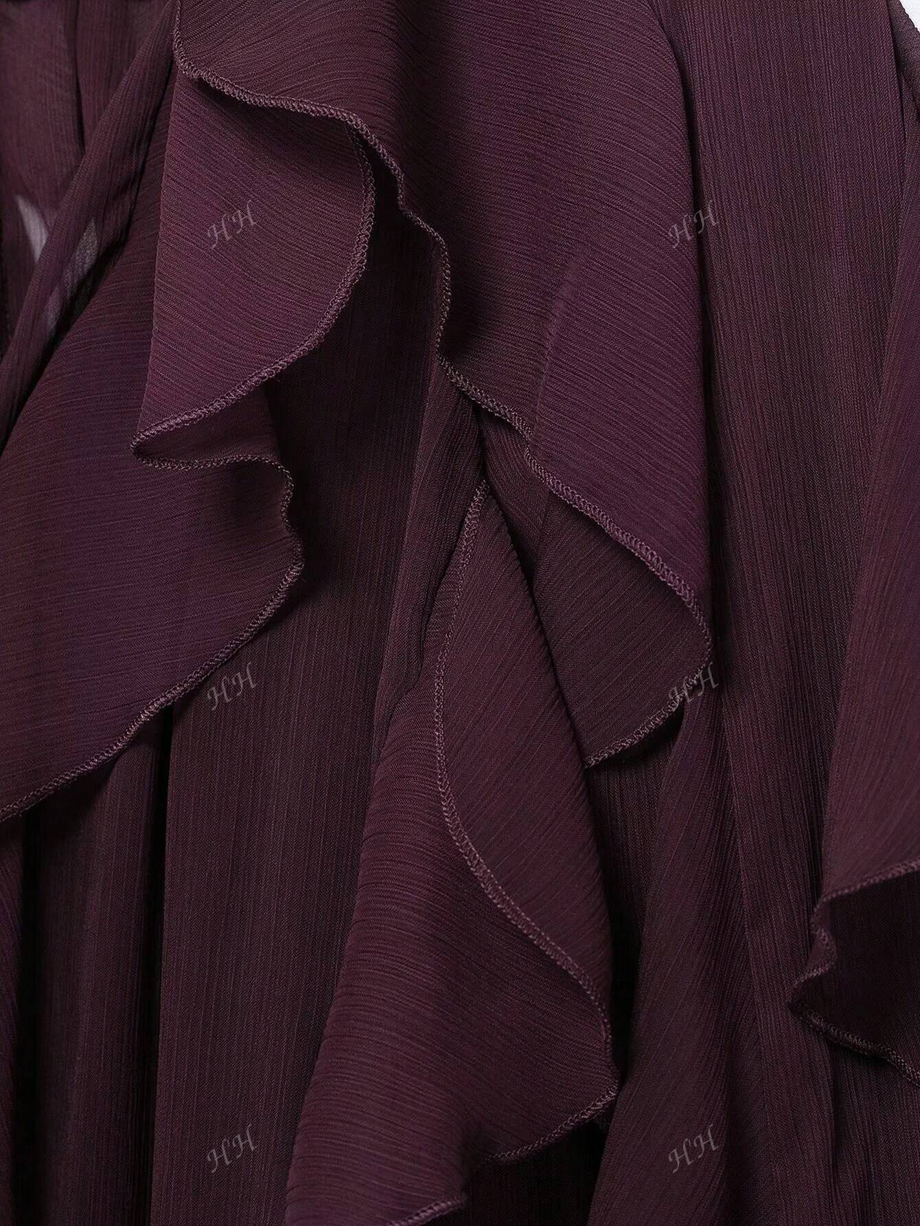 بلوزة نسائية أنيقة ربيعية HH 2025 بفتحة رقبة على شكل حرف V وأكمام طويلة وصدر واحد مزخرف بلون سادة
