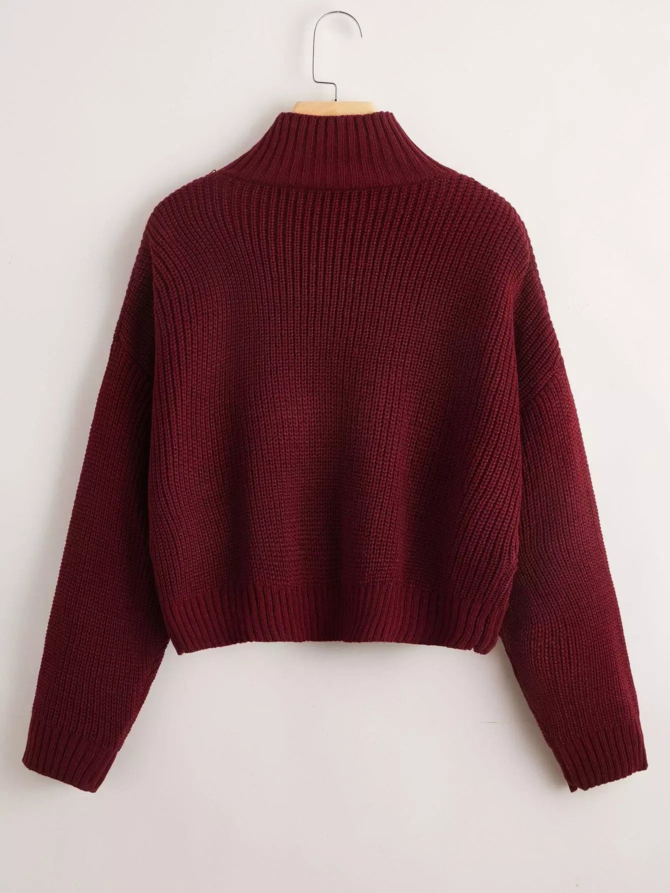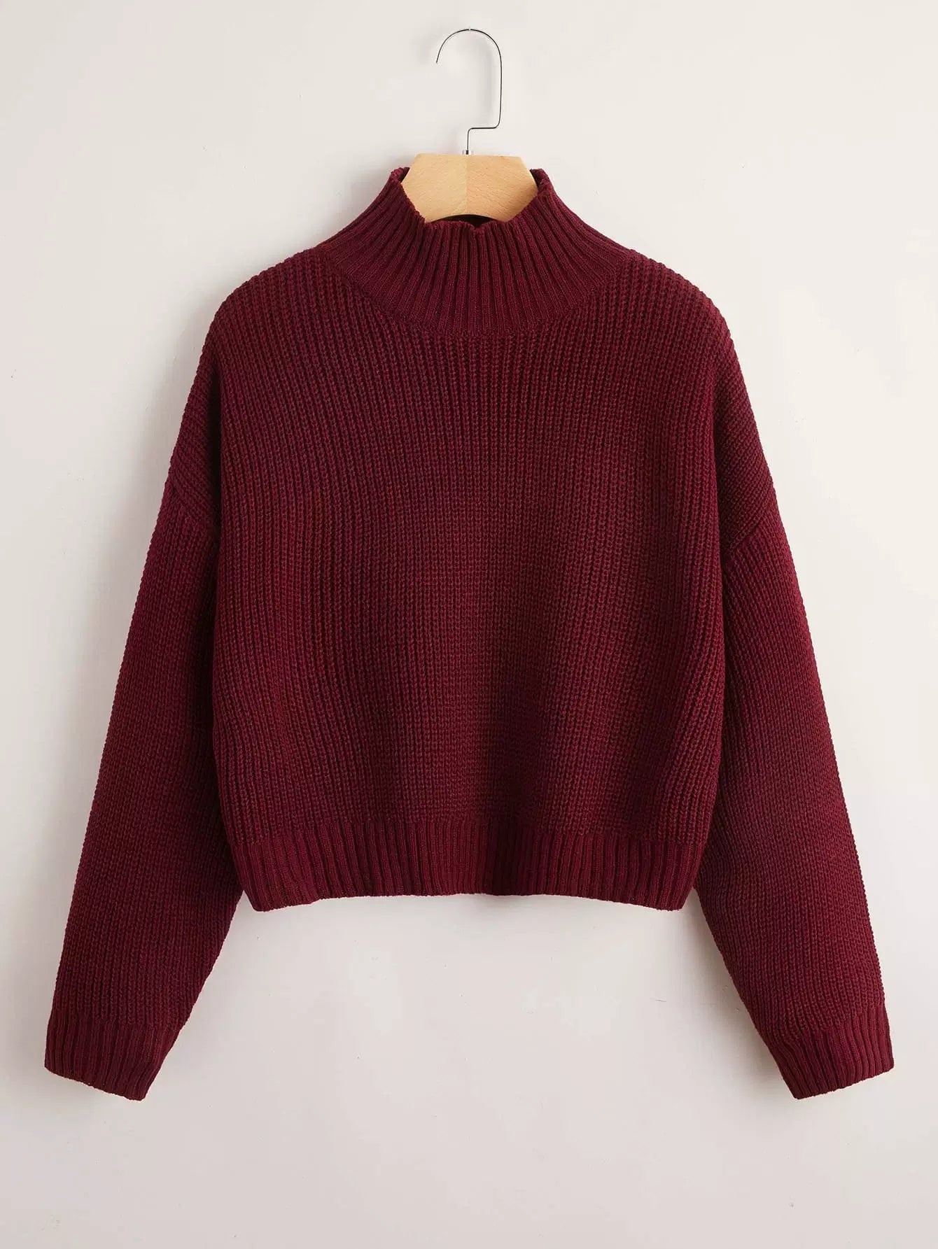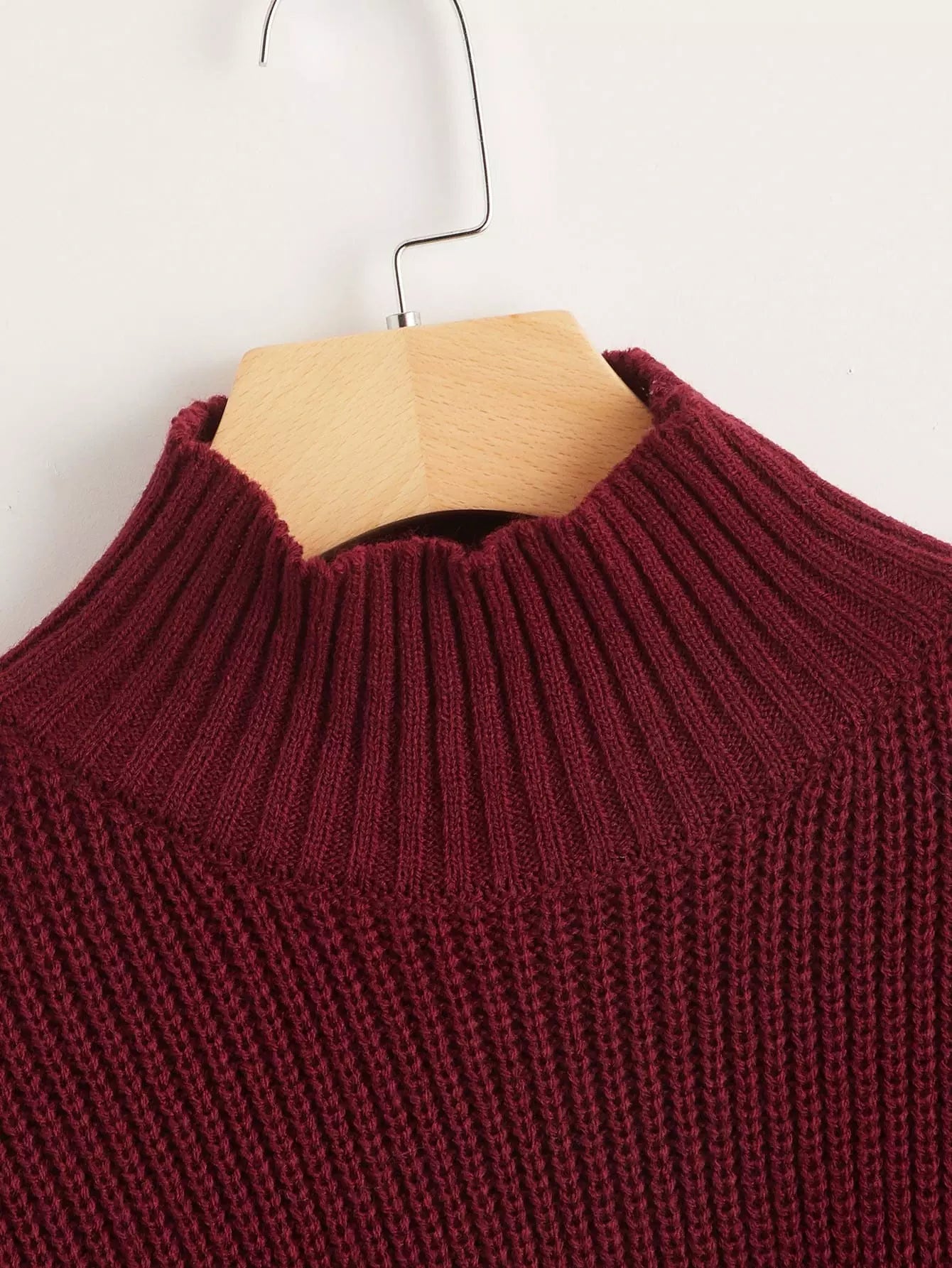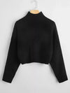 كنزة برقبة عالية منسدلة الكتفين مكتنزة ومحبوكة