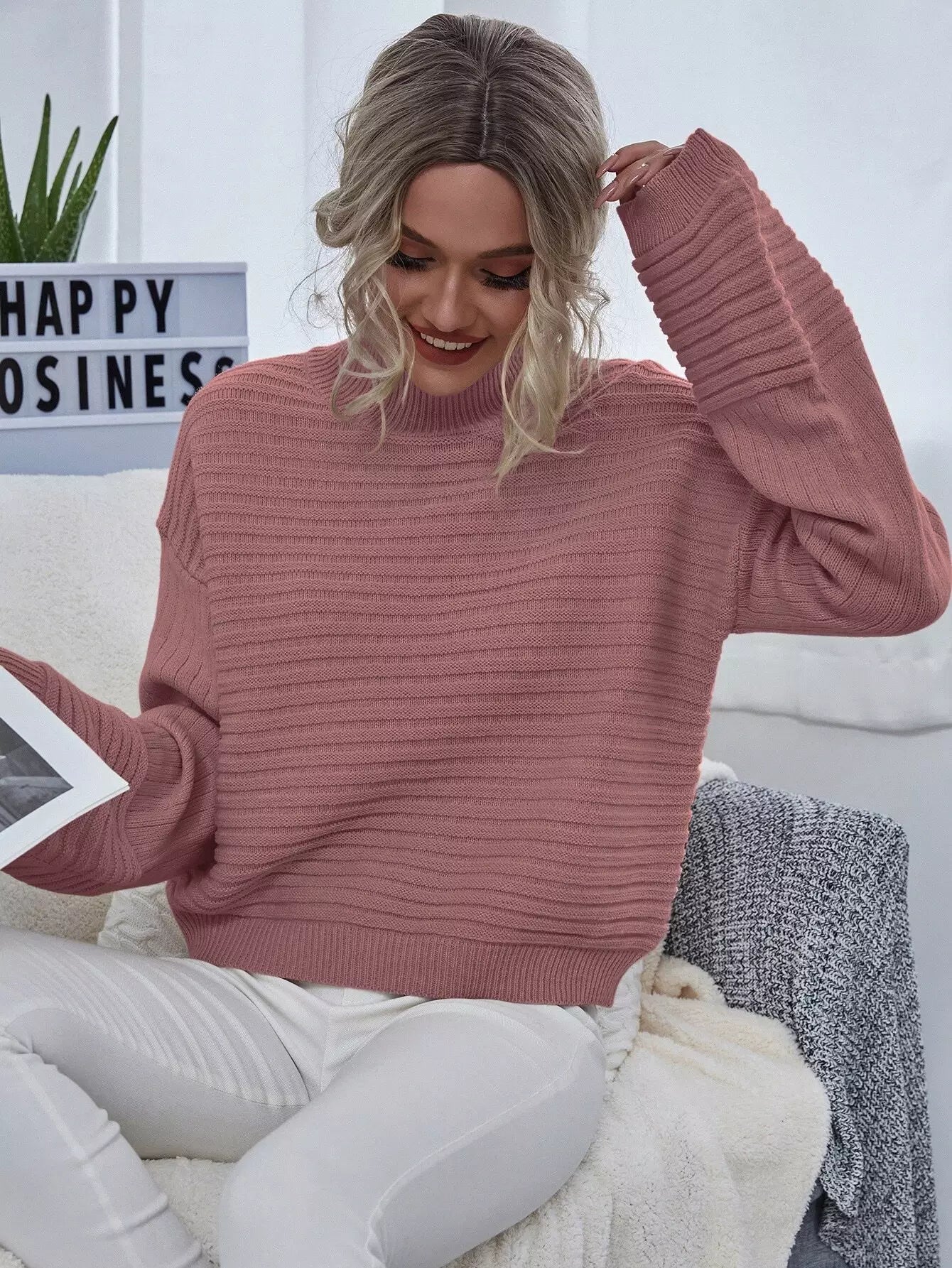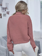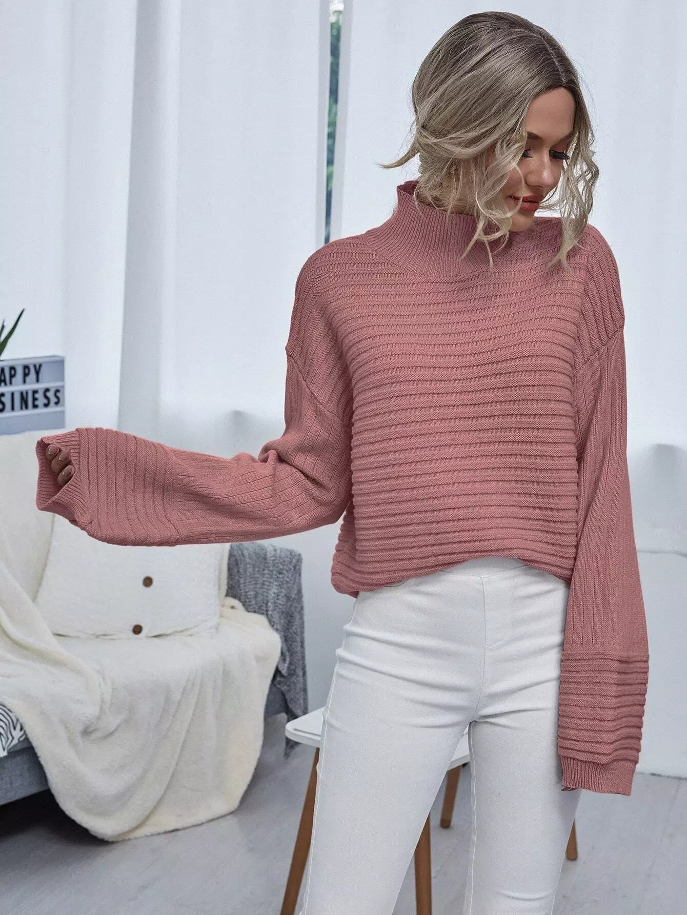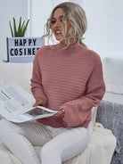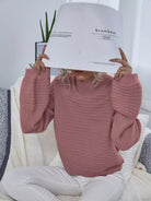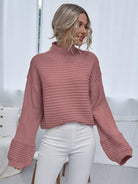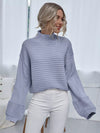كنزة بياقة عالية الرقبة منسدلة الكتفين محبوكة على شكل ضلع