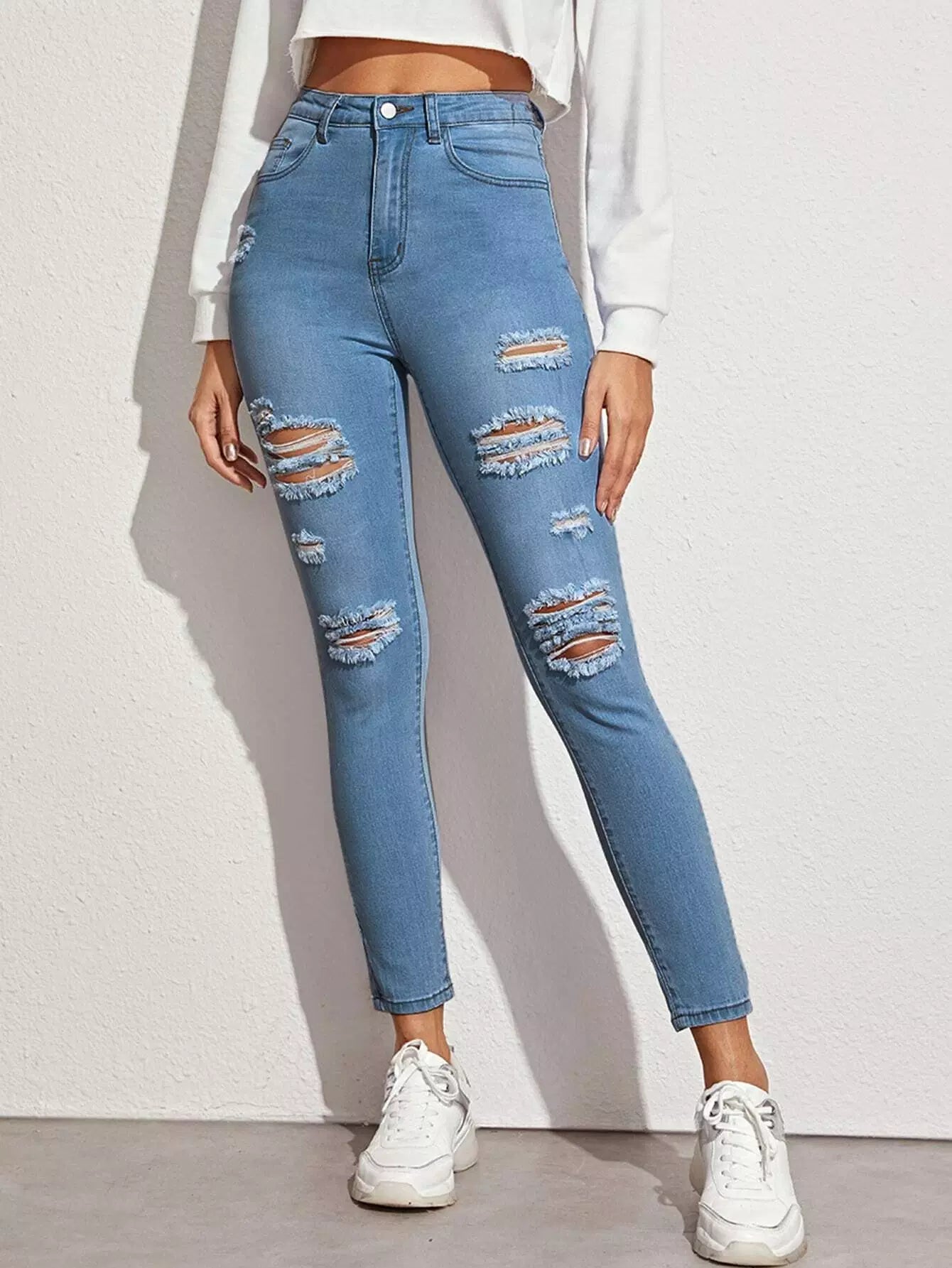بنطلون جينز سكيني سكيني عالي الخصر وضيق