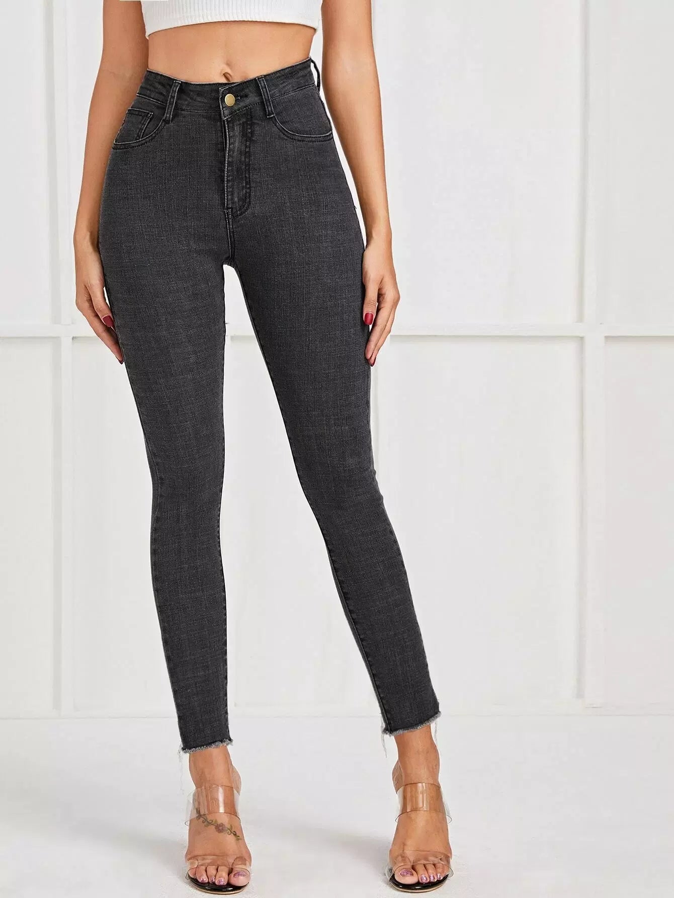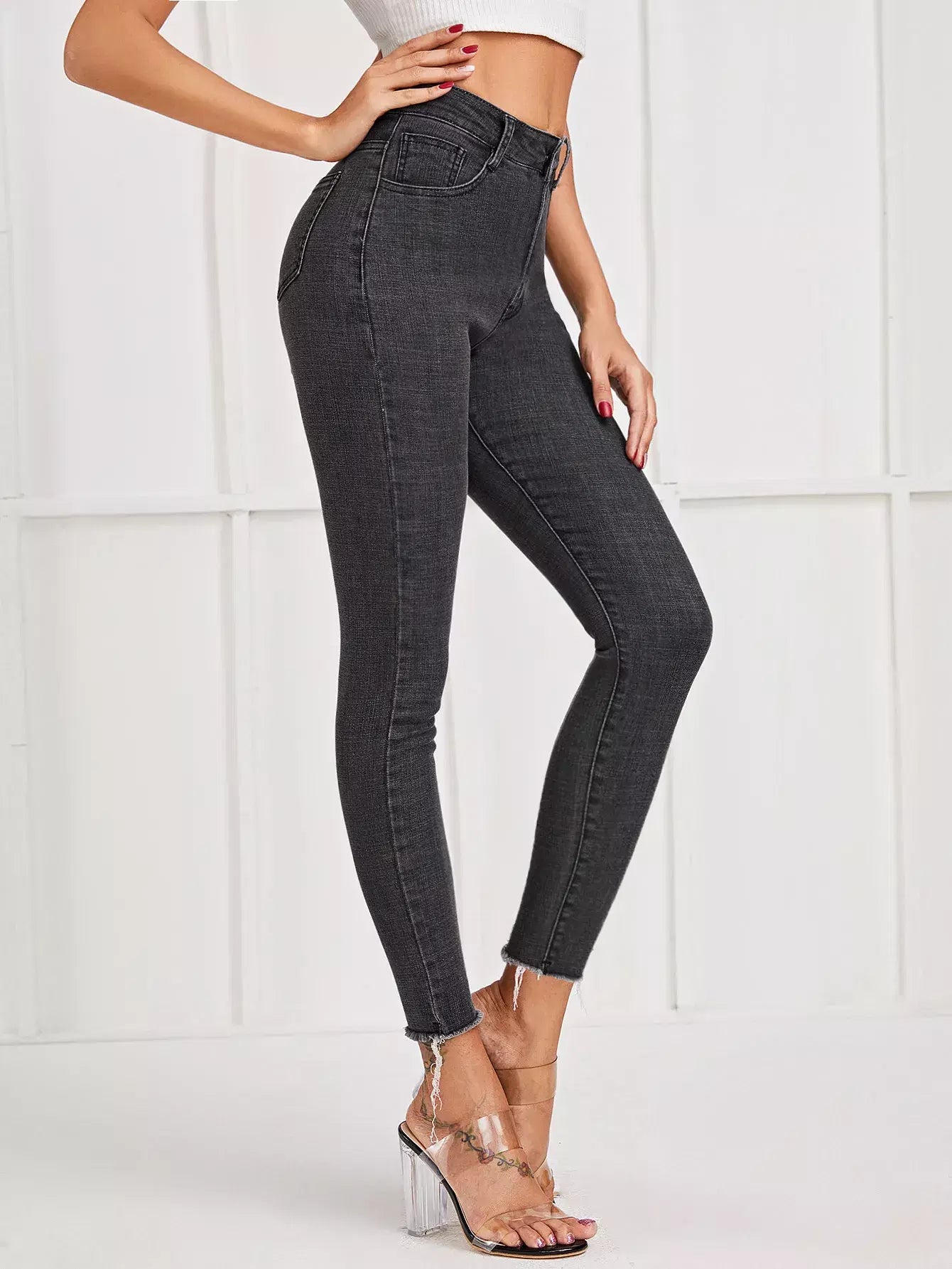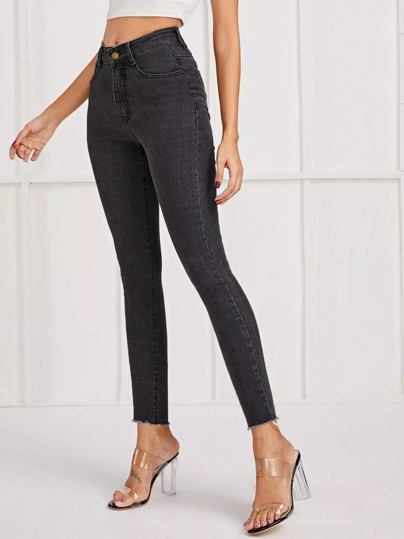 بنطلون جينز سكيني بحواف عالية التمدد خفيف الحواف