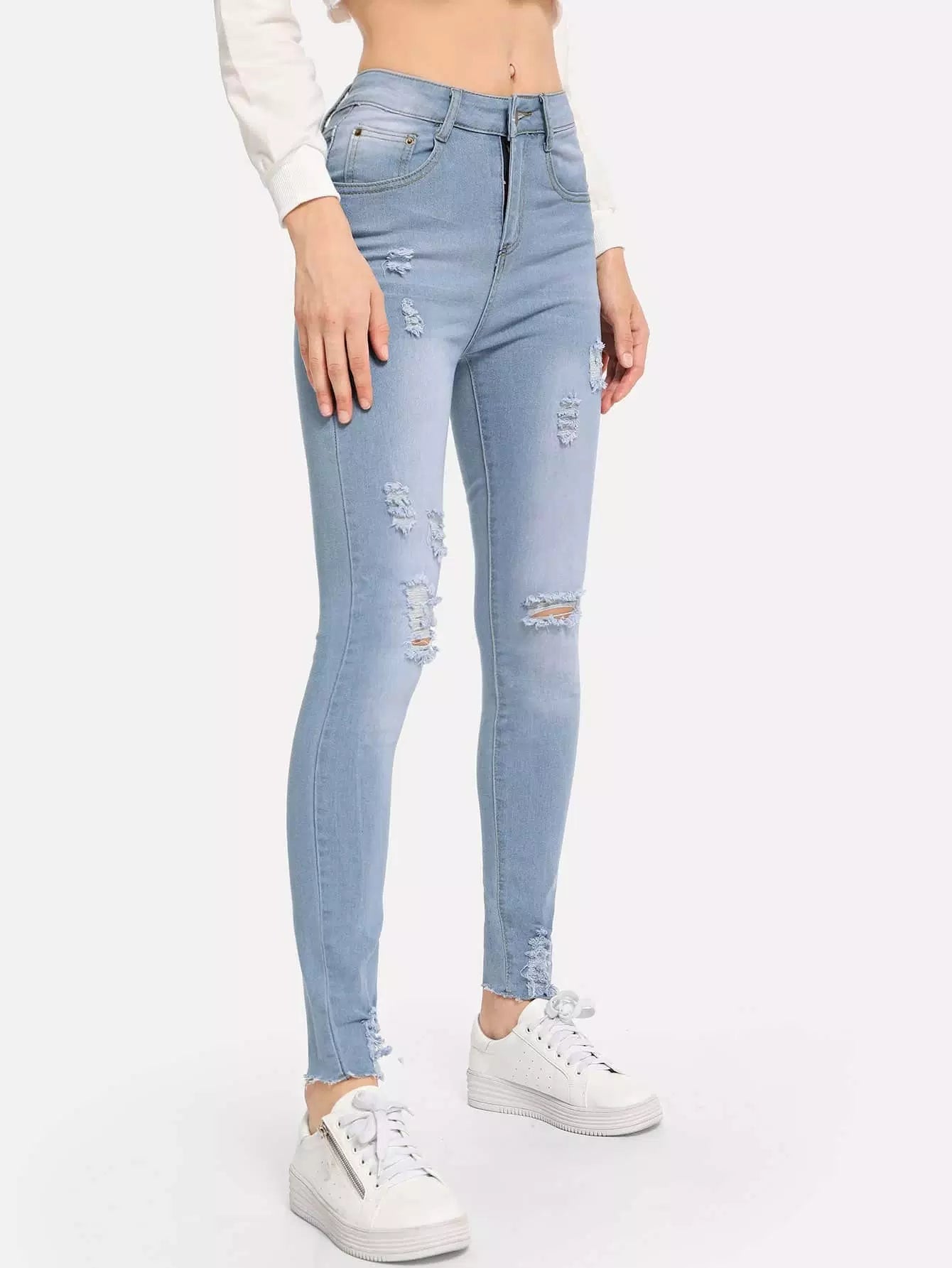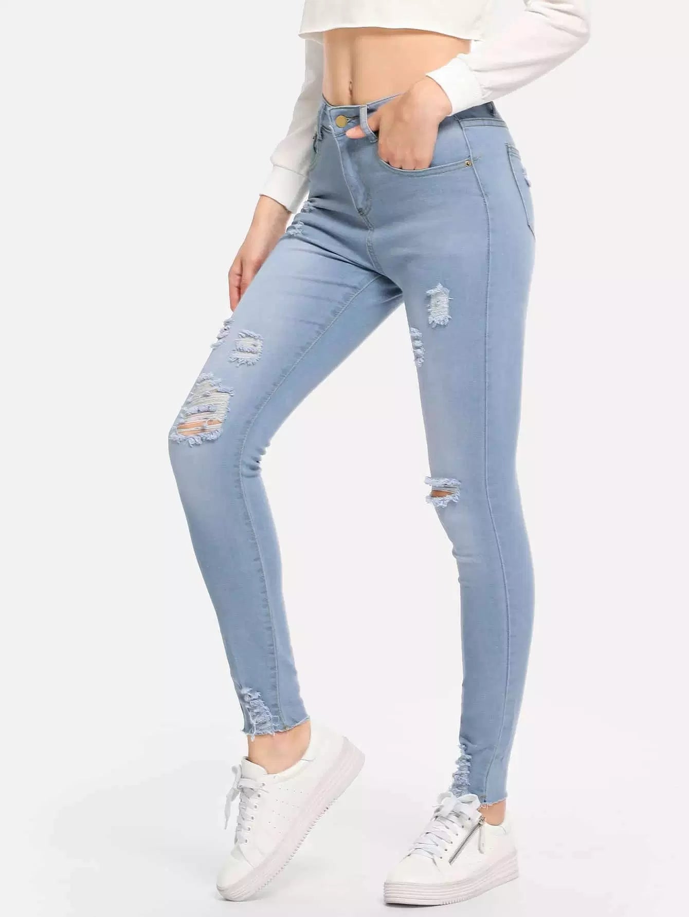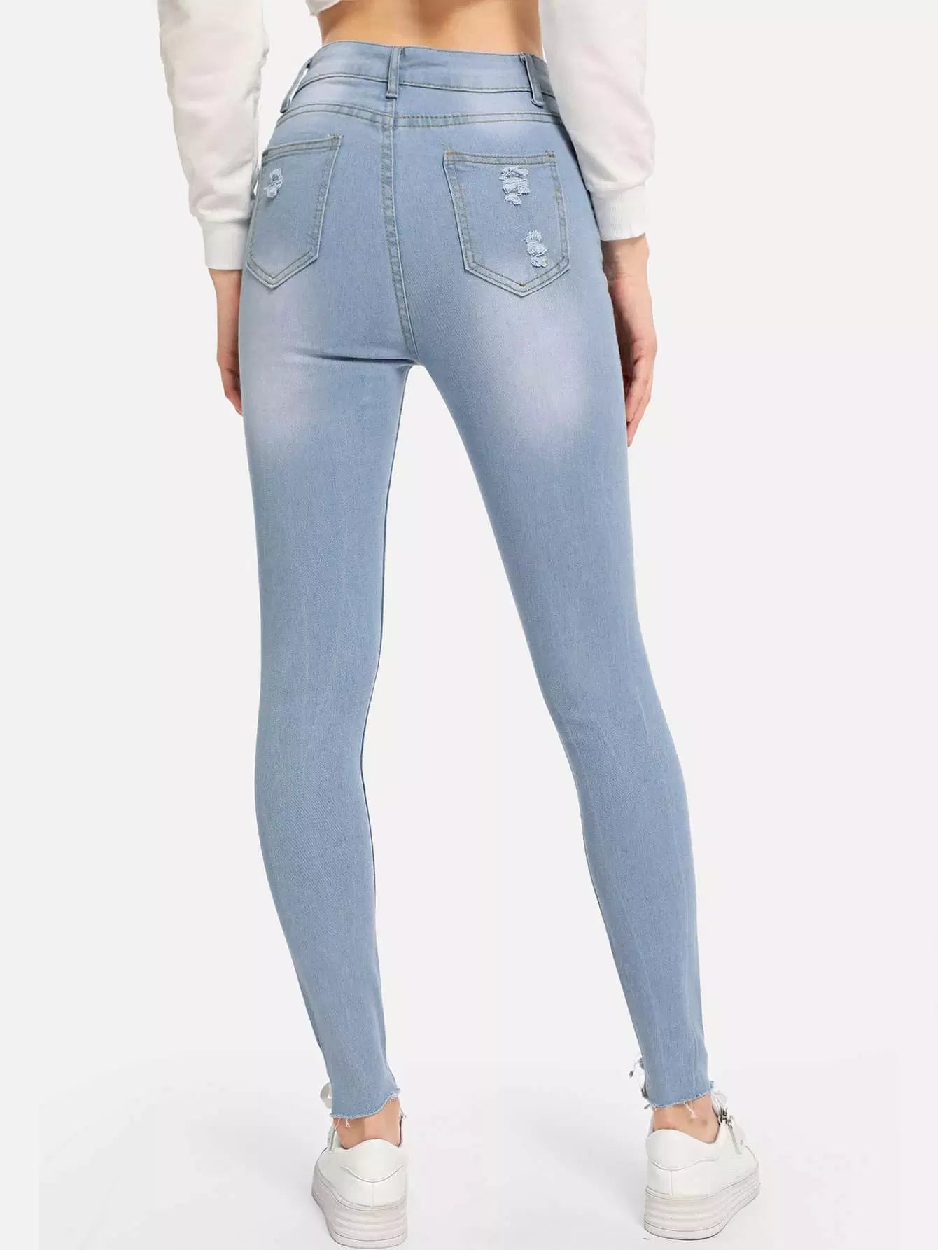 بنطلون جينز سكيني بحواف عالية التمدد خفيف الحواف