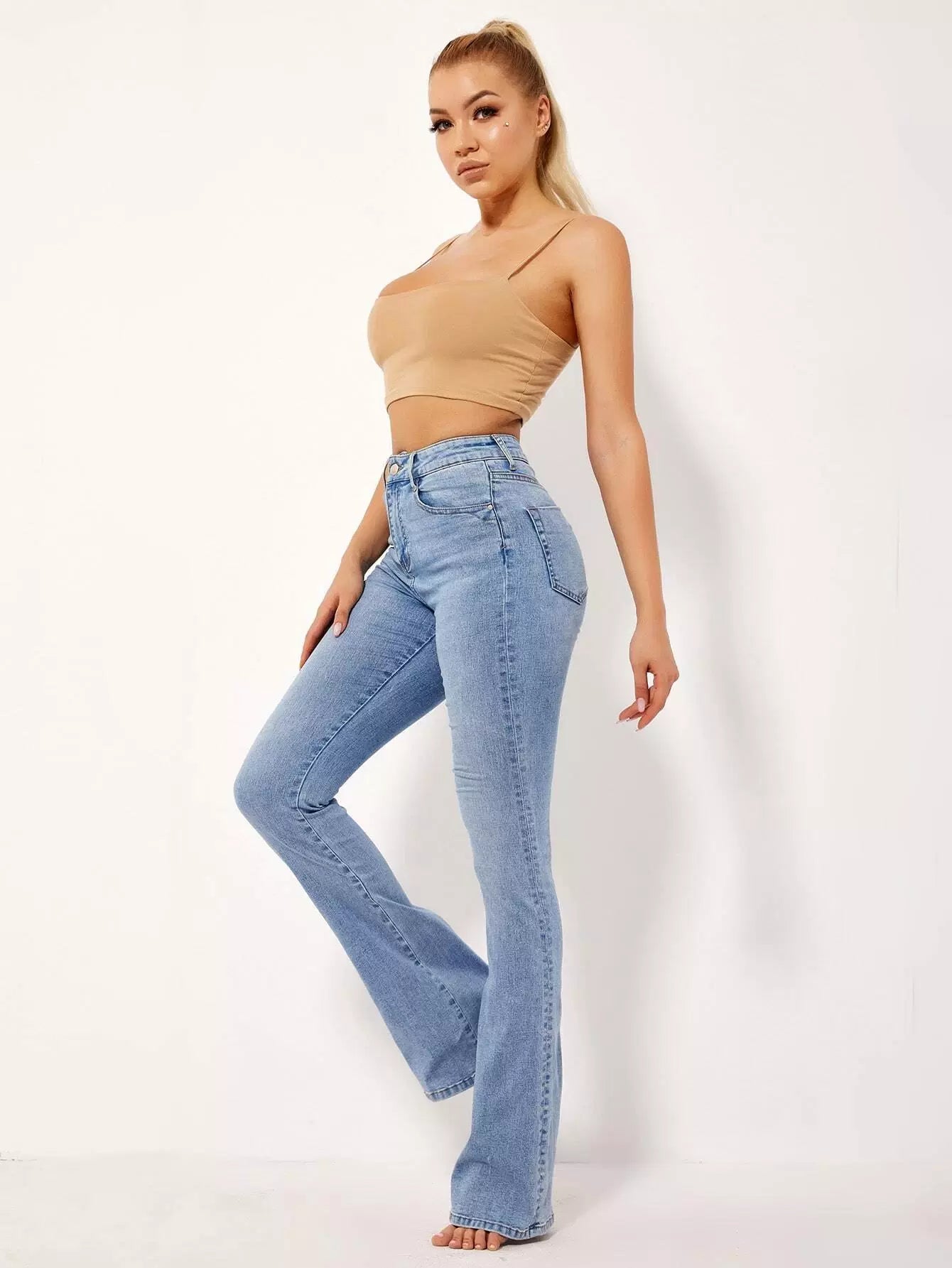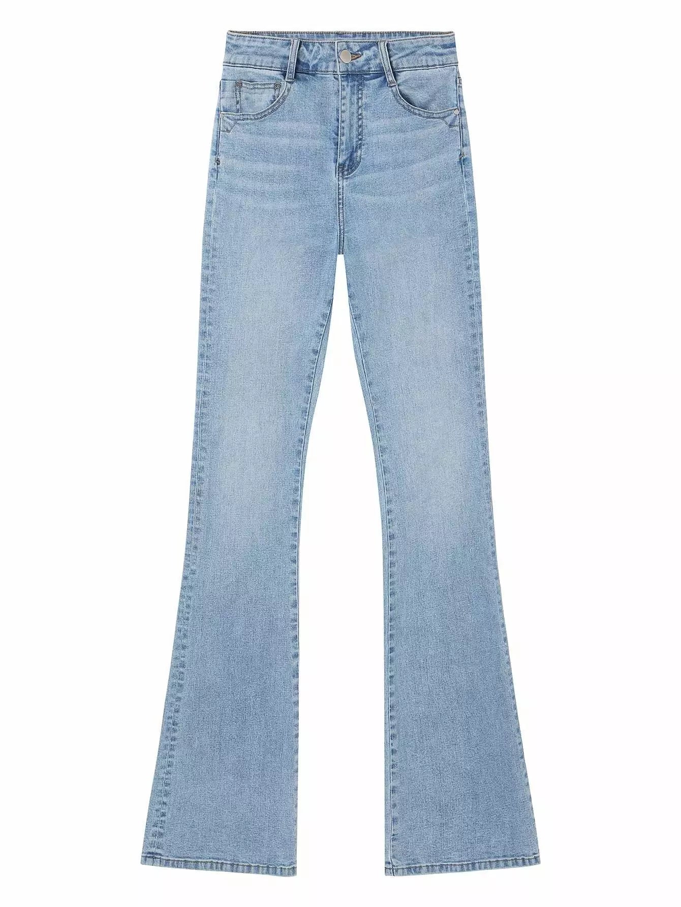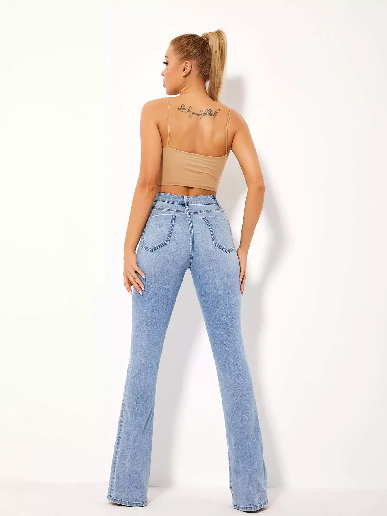 للنساء - جينز عالي الخصر وواسع الساق