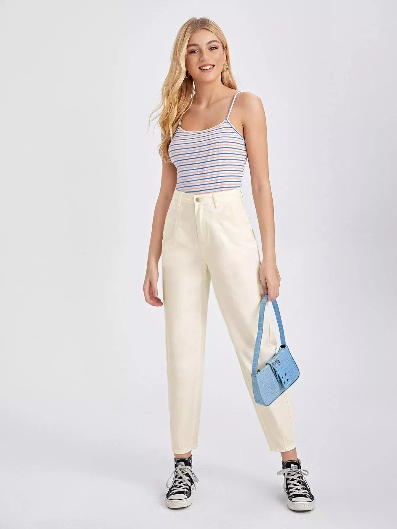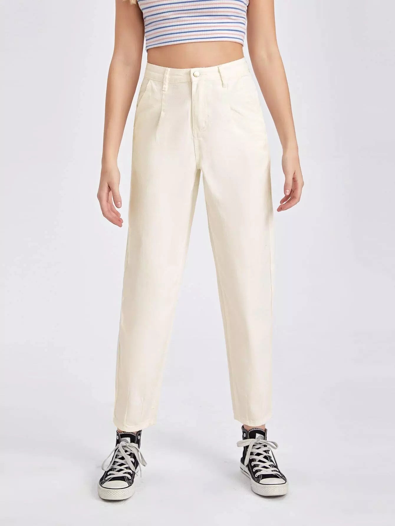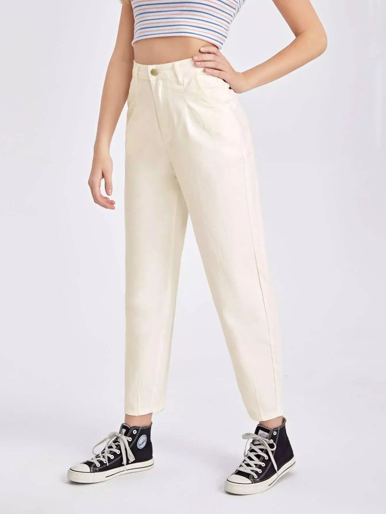 بنطلون جينز بطيات عالية الخصر مطوي الأم
