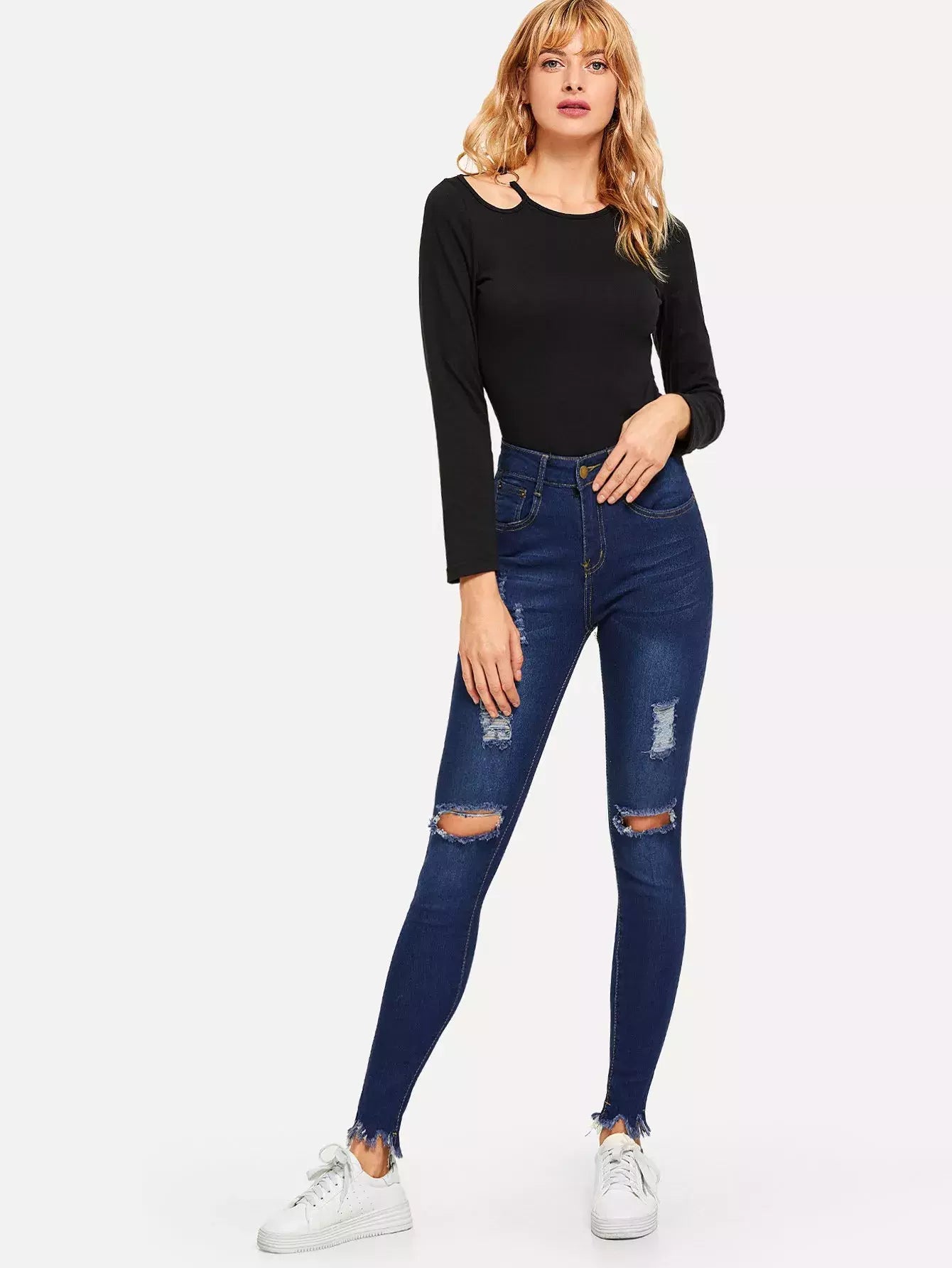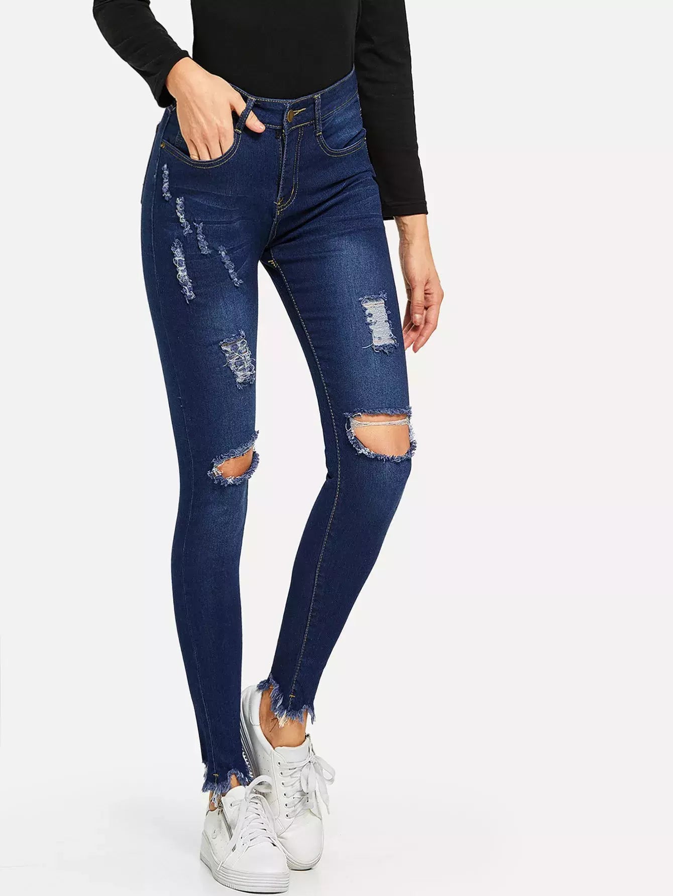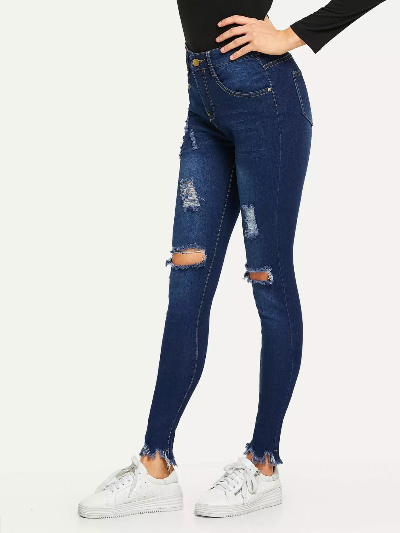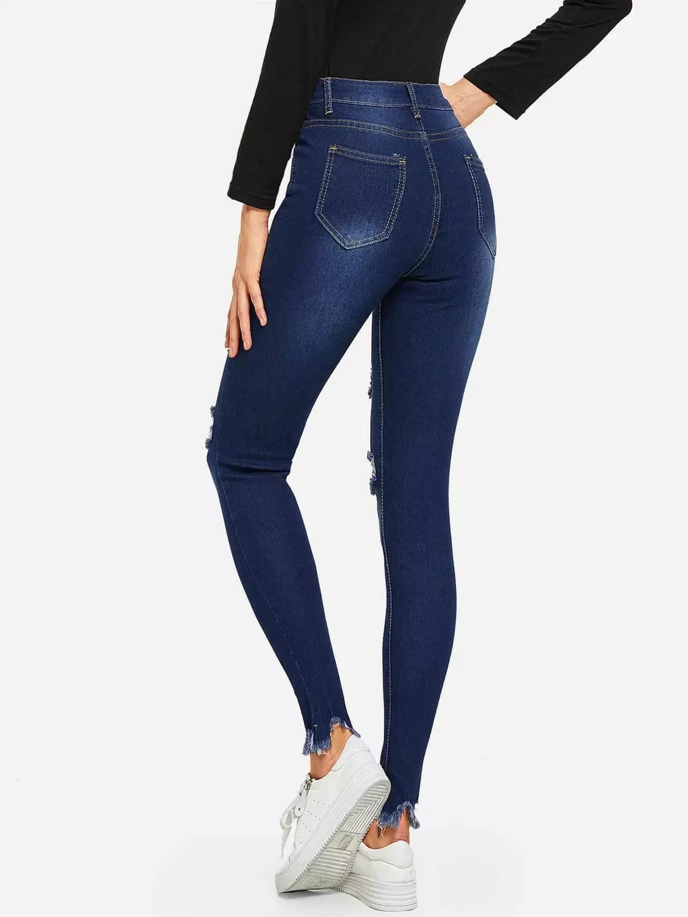 بنطلون جينز سكيني عالي الخصر عالي الحافة الخام الممتدة