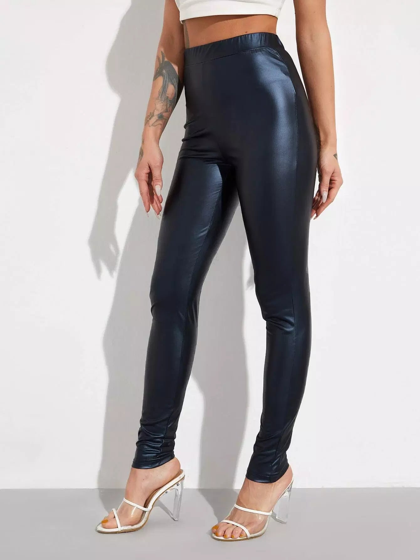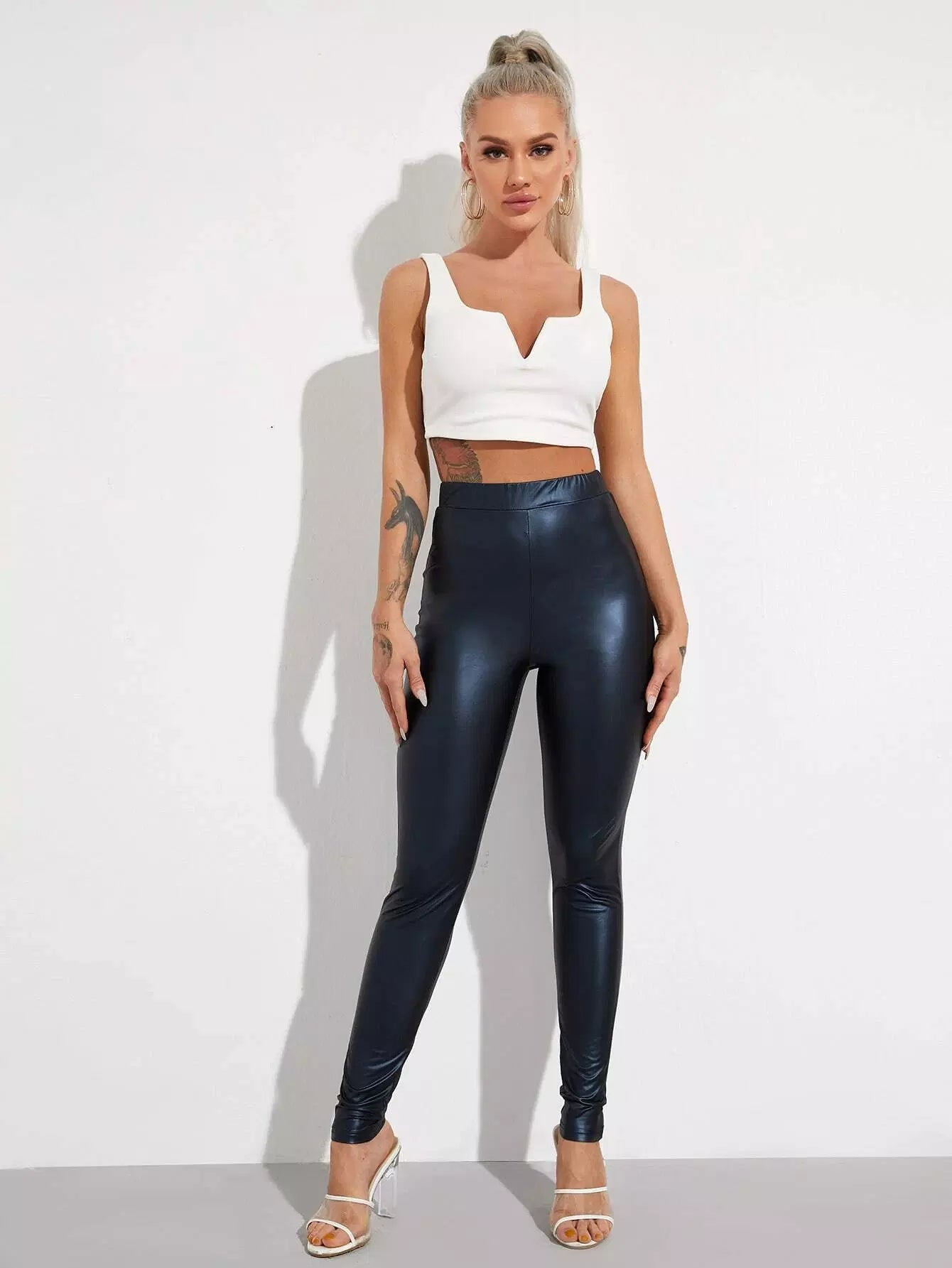 بنطال ضيق من الجلد الصناعي بخصر مرتفع