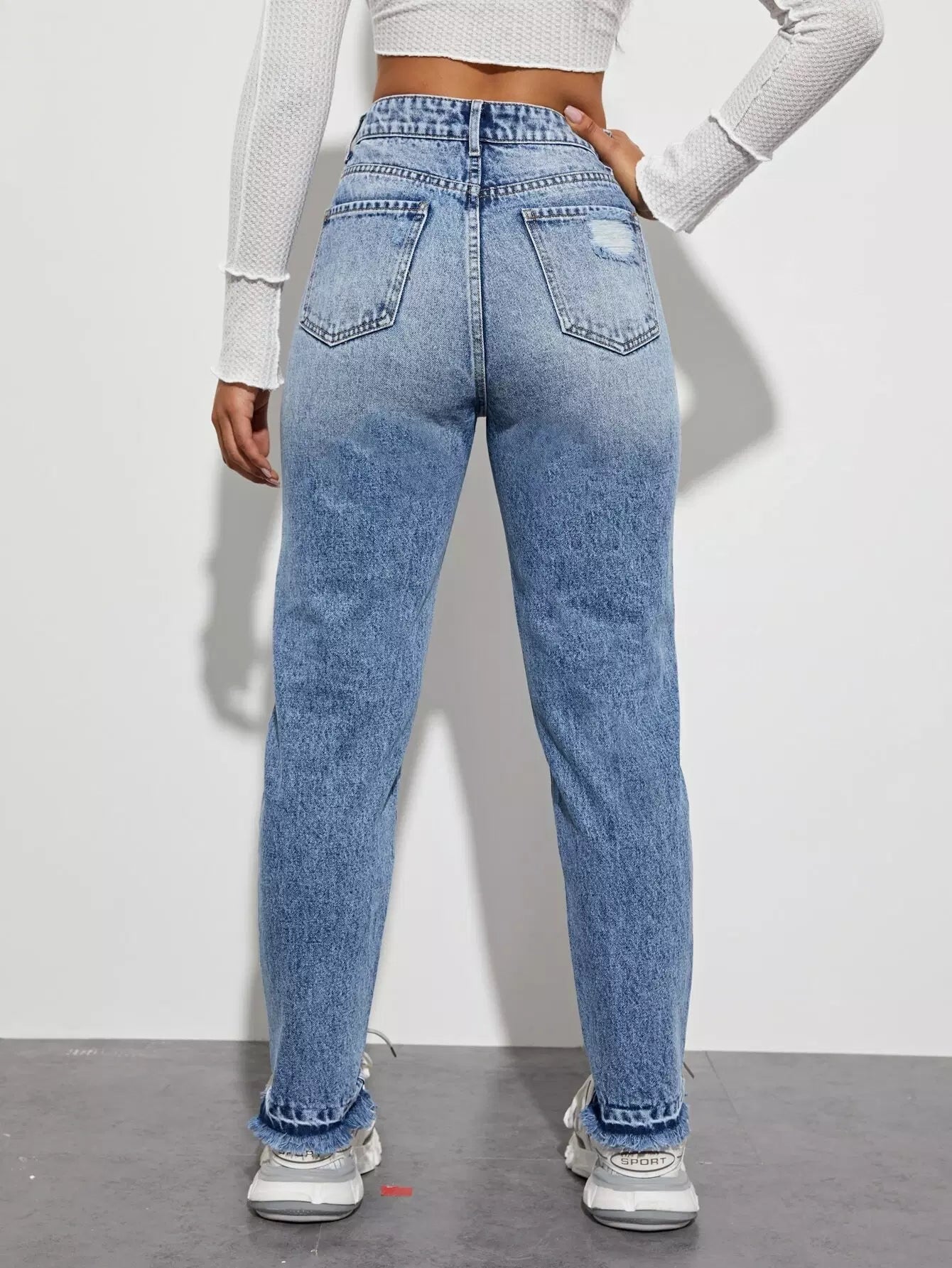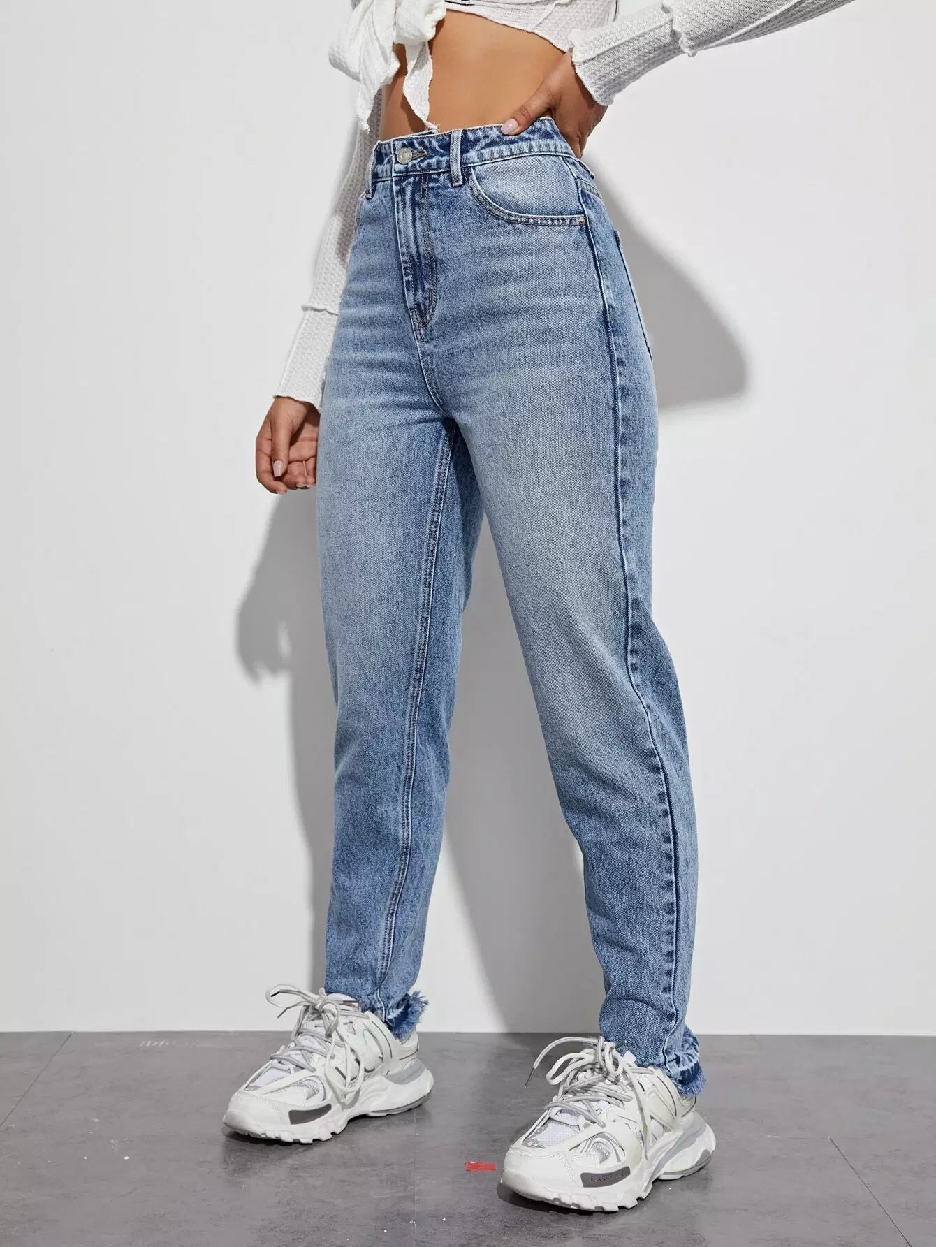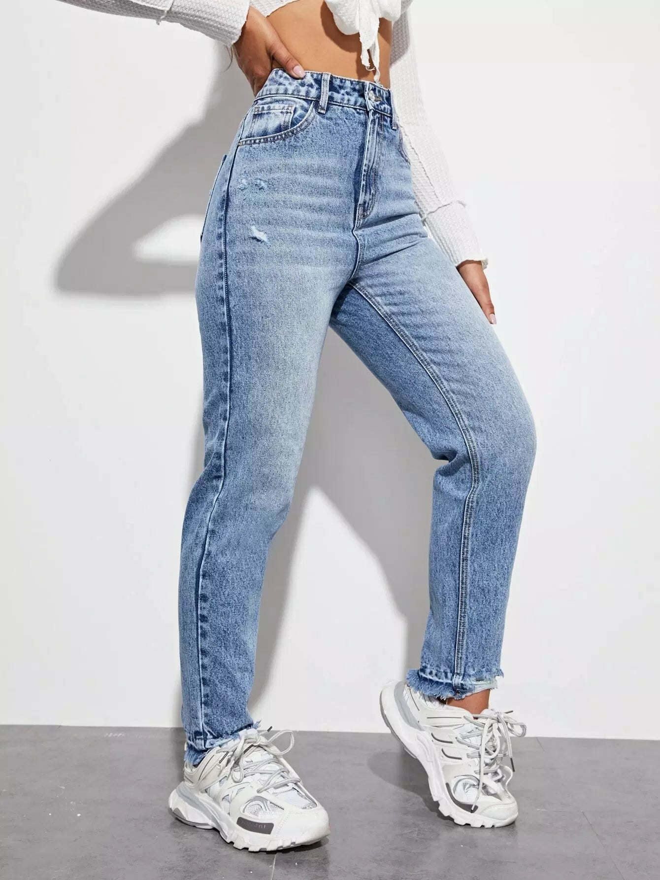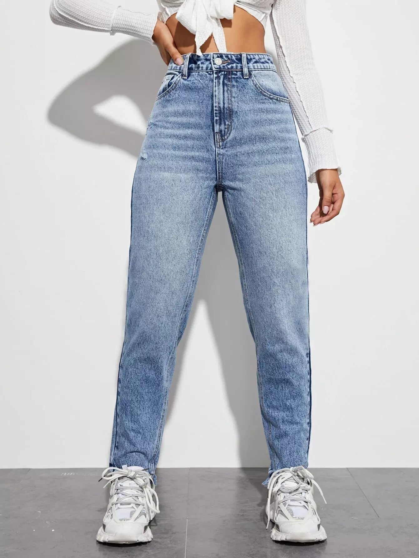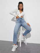 بنطلون جينز بحافة عالية الخصر عالية الخصر خفيف الوزن الأمهات
