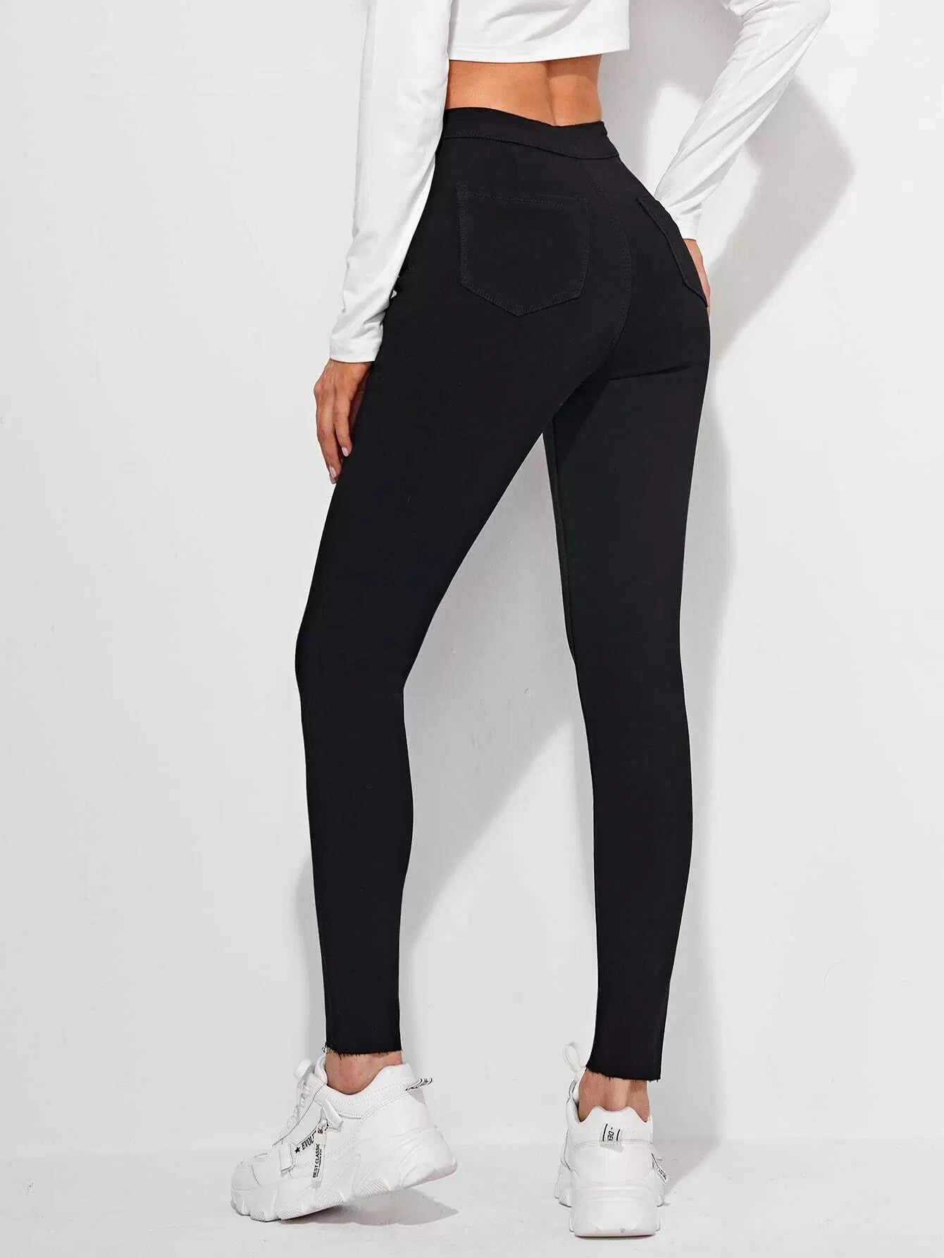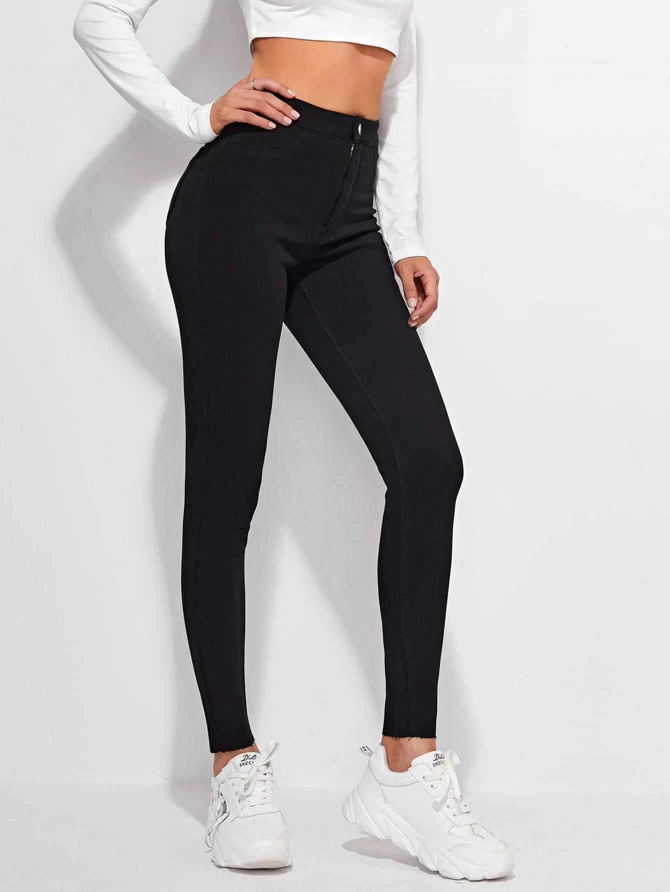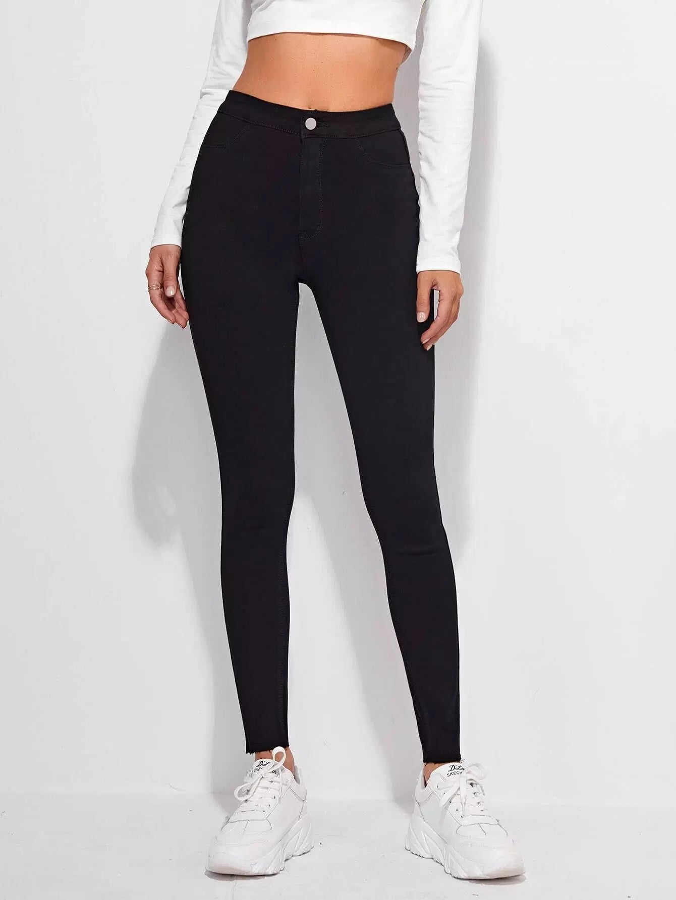 جينز جينز سكيني بحافة عالية الخصر عالية الخصر الخام