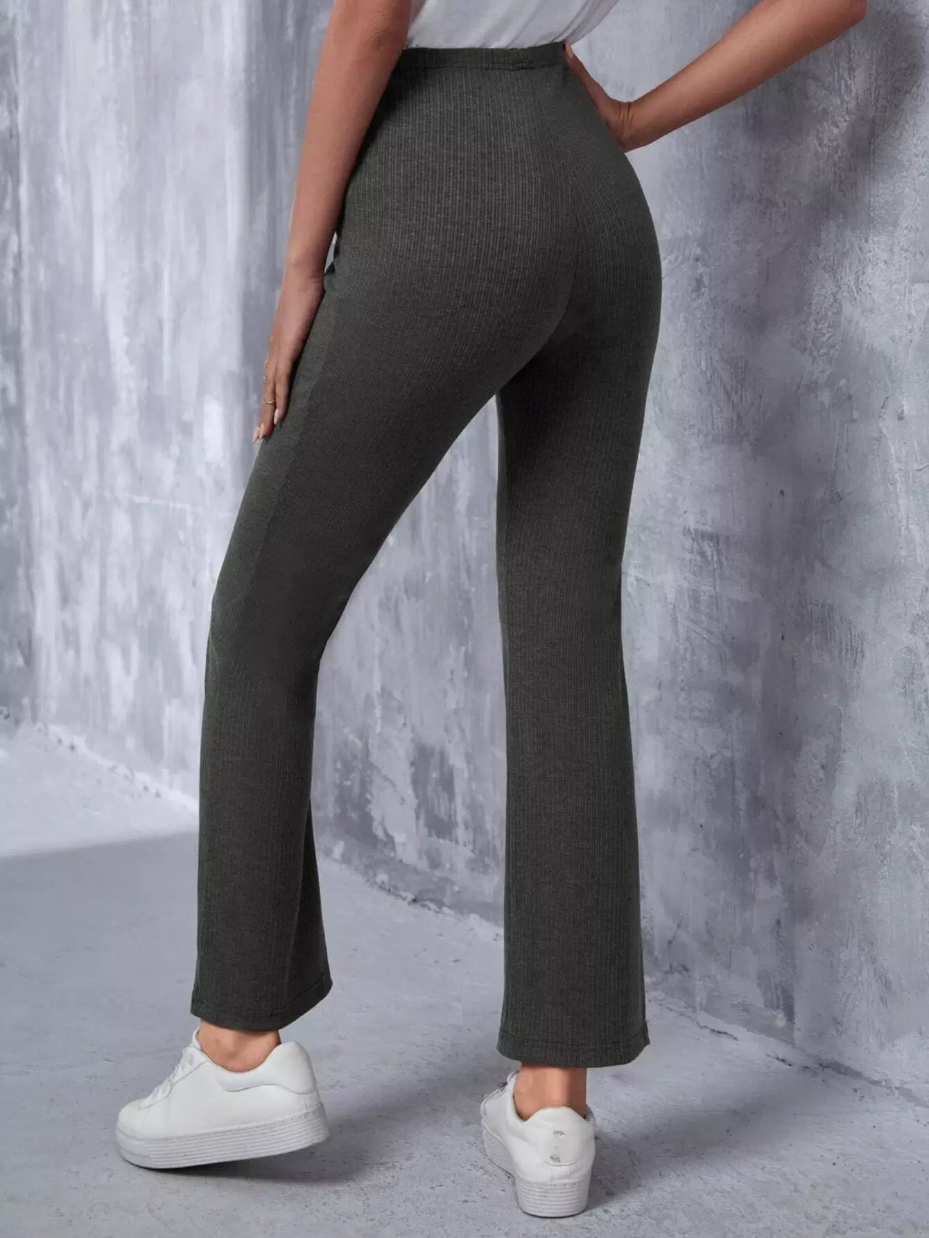 بنطلون بخصر عالٍ مضلع ومضلع ومضلع الساقين الفضفاضة