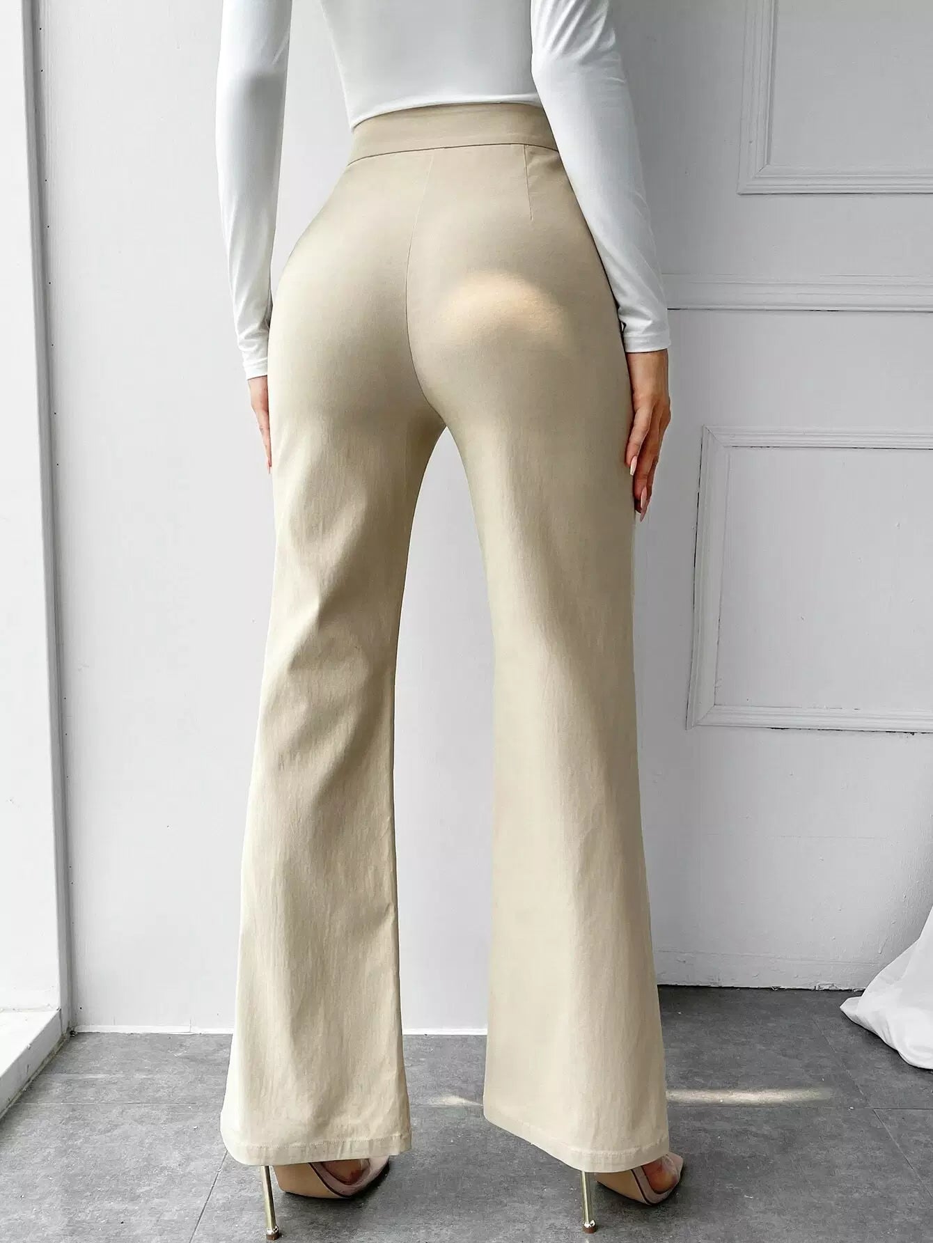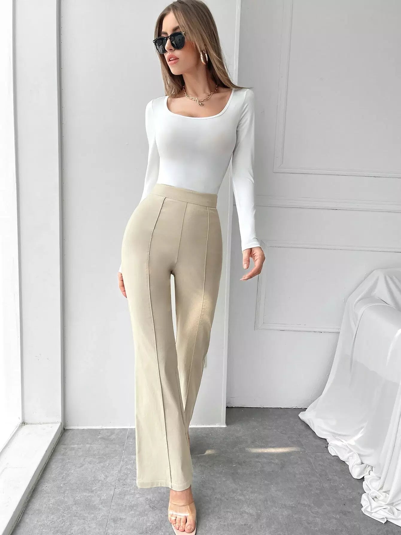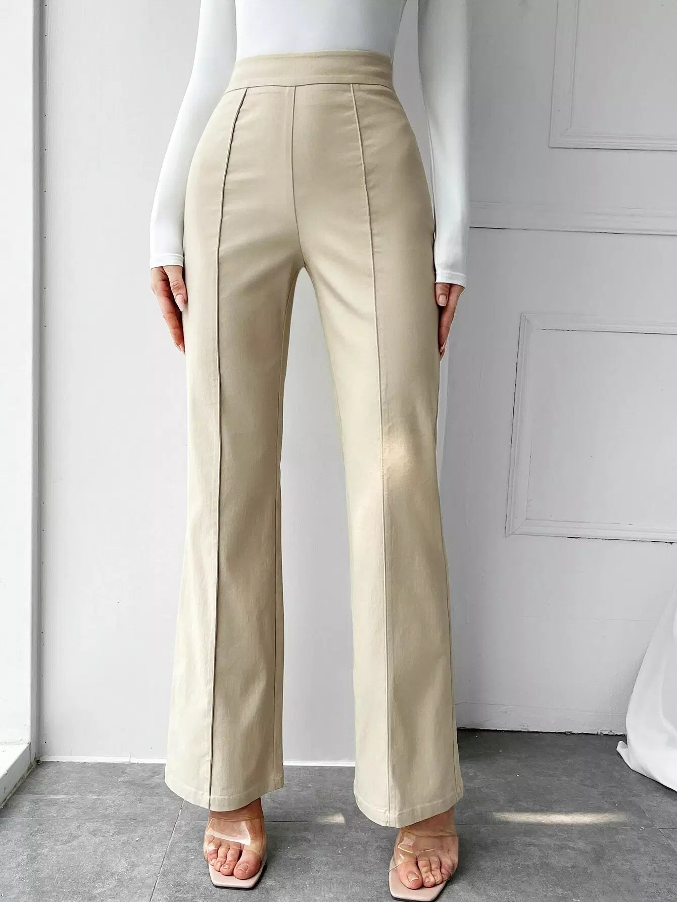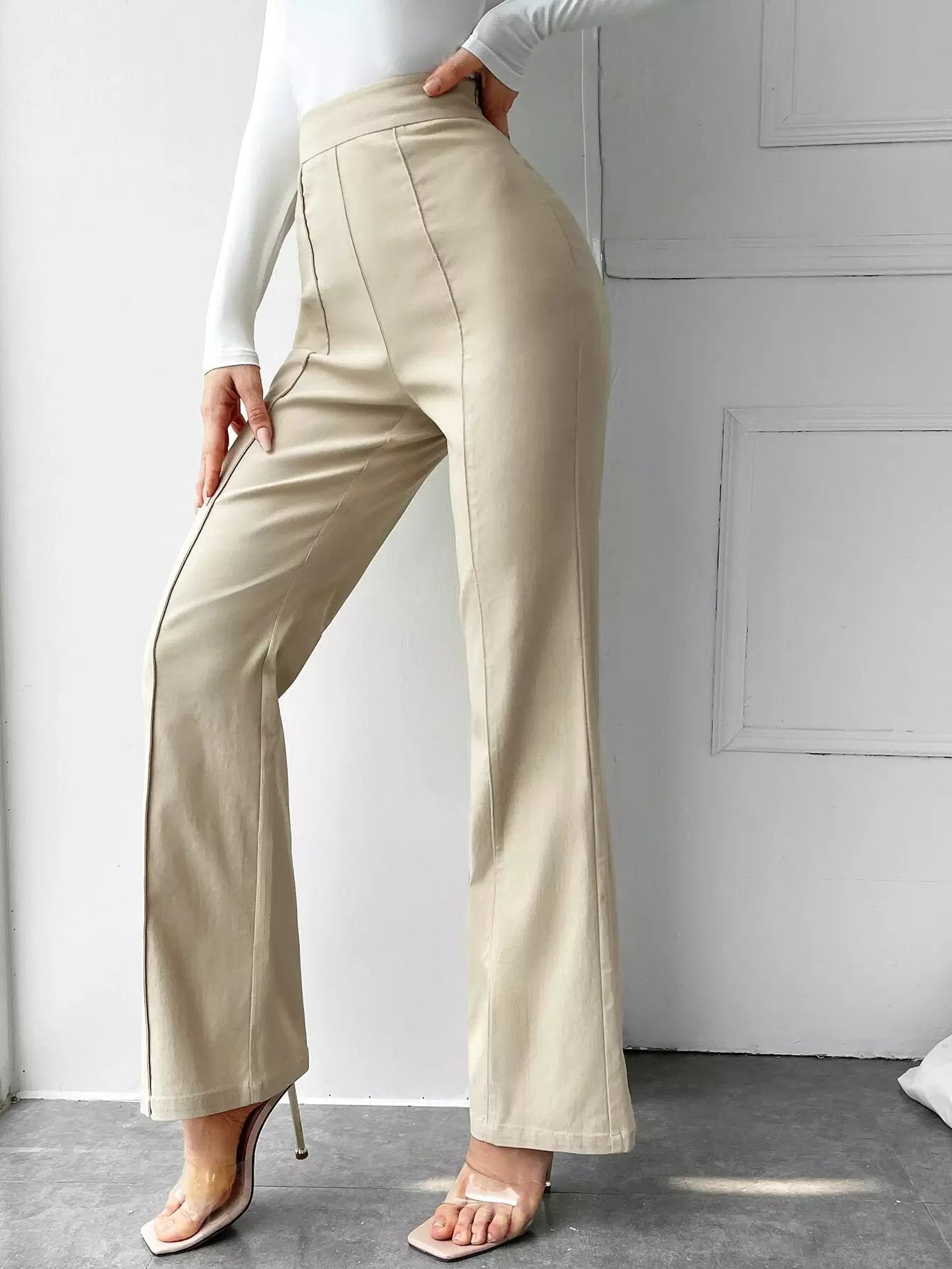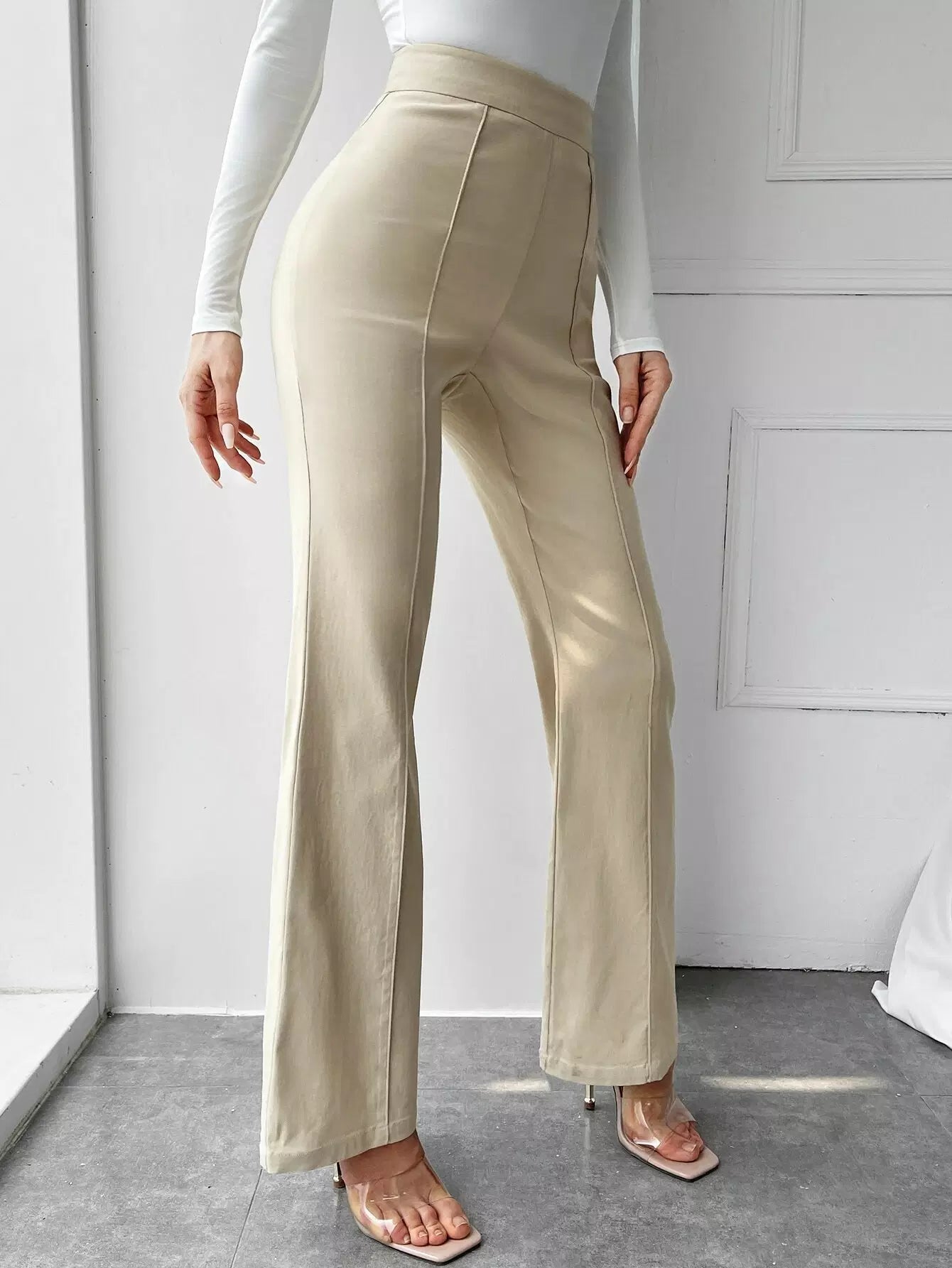 الملابس - بنطال واسع الساق بتفاصيل درزات عالية الخصر