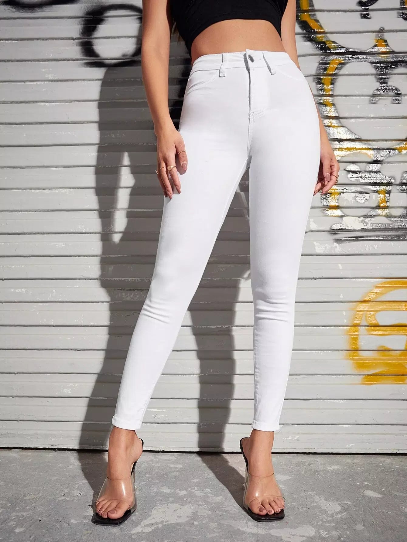 بنطلون جينز سكيني بخصر عالي الخصر
