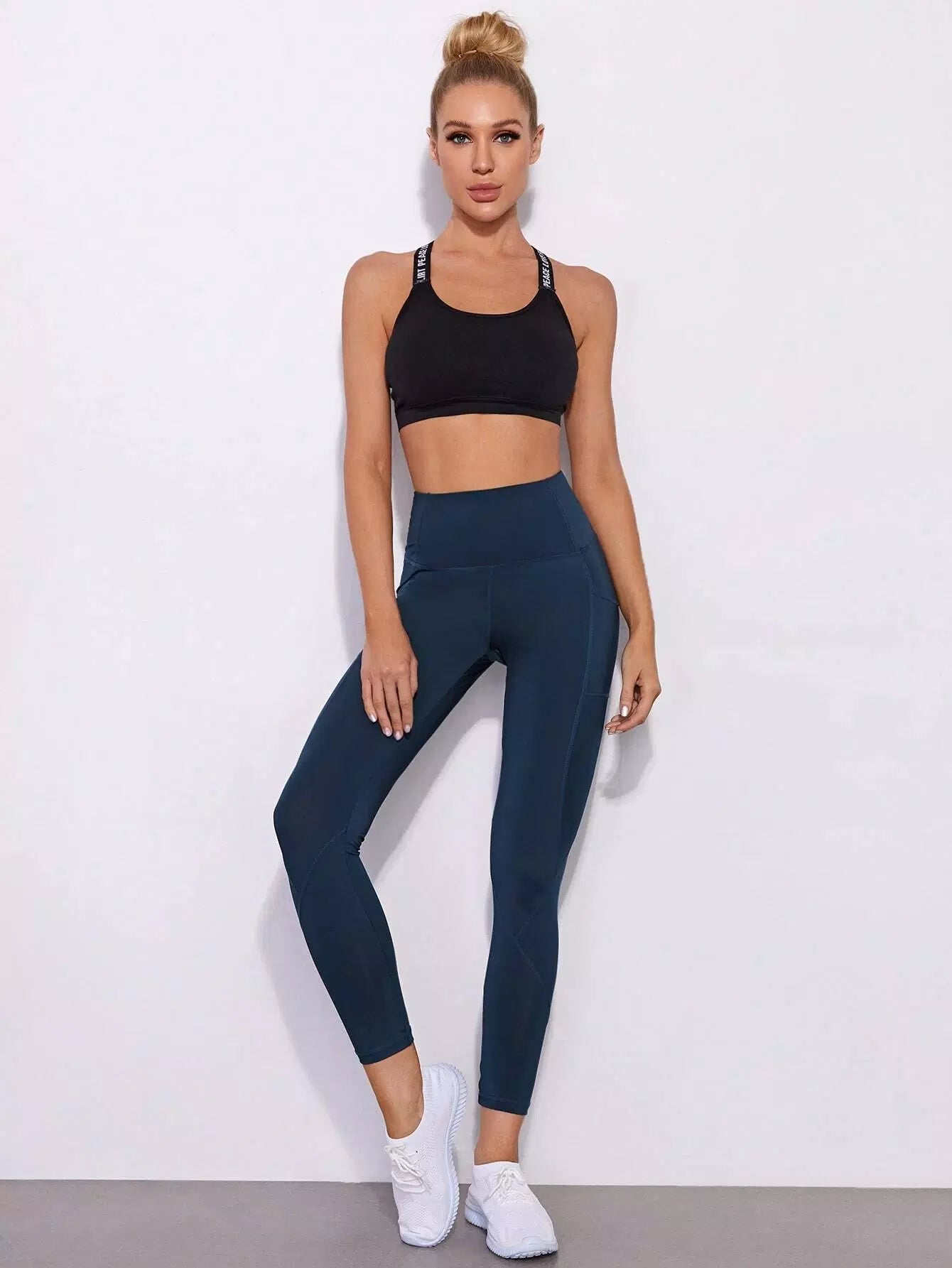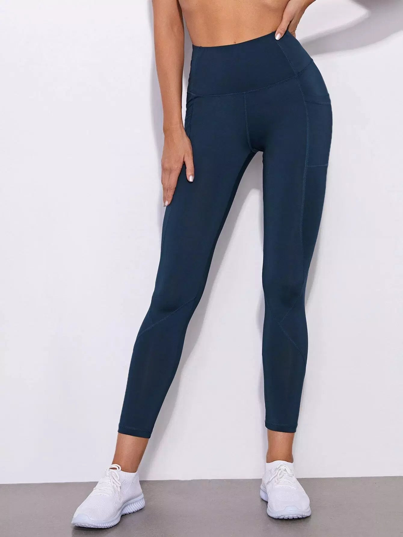 بنطال ضيق رياضي سادة عالي الخصر مع جيب