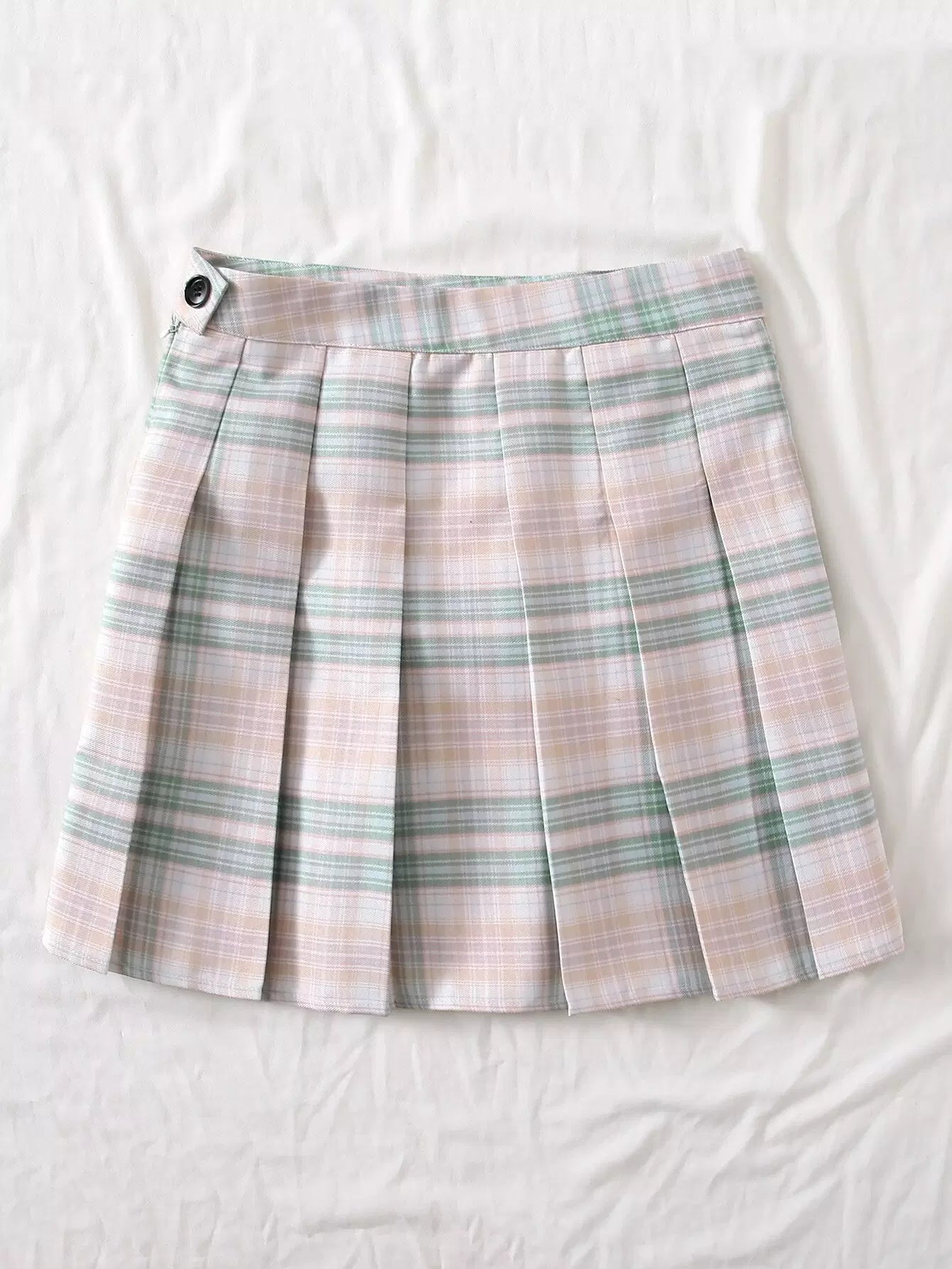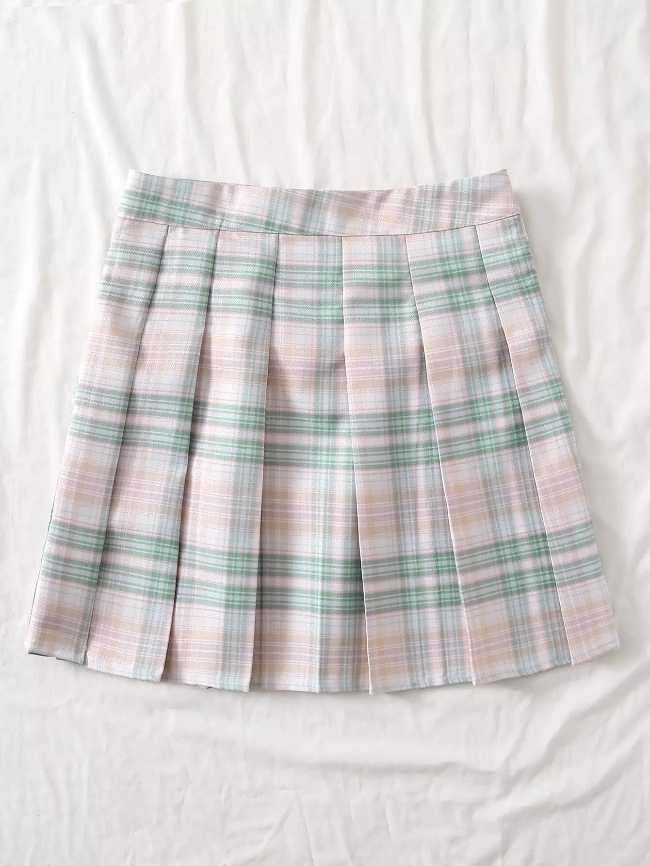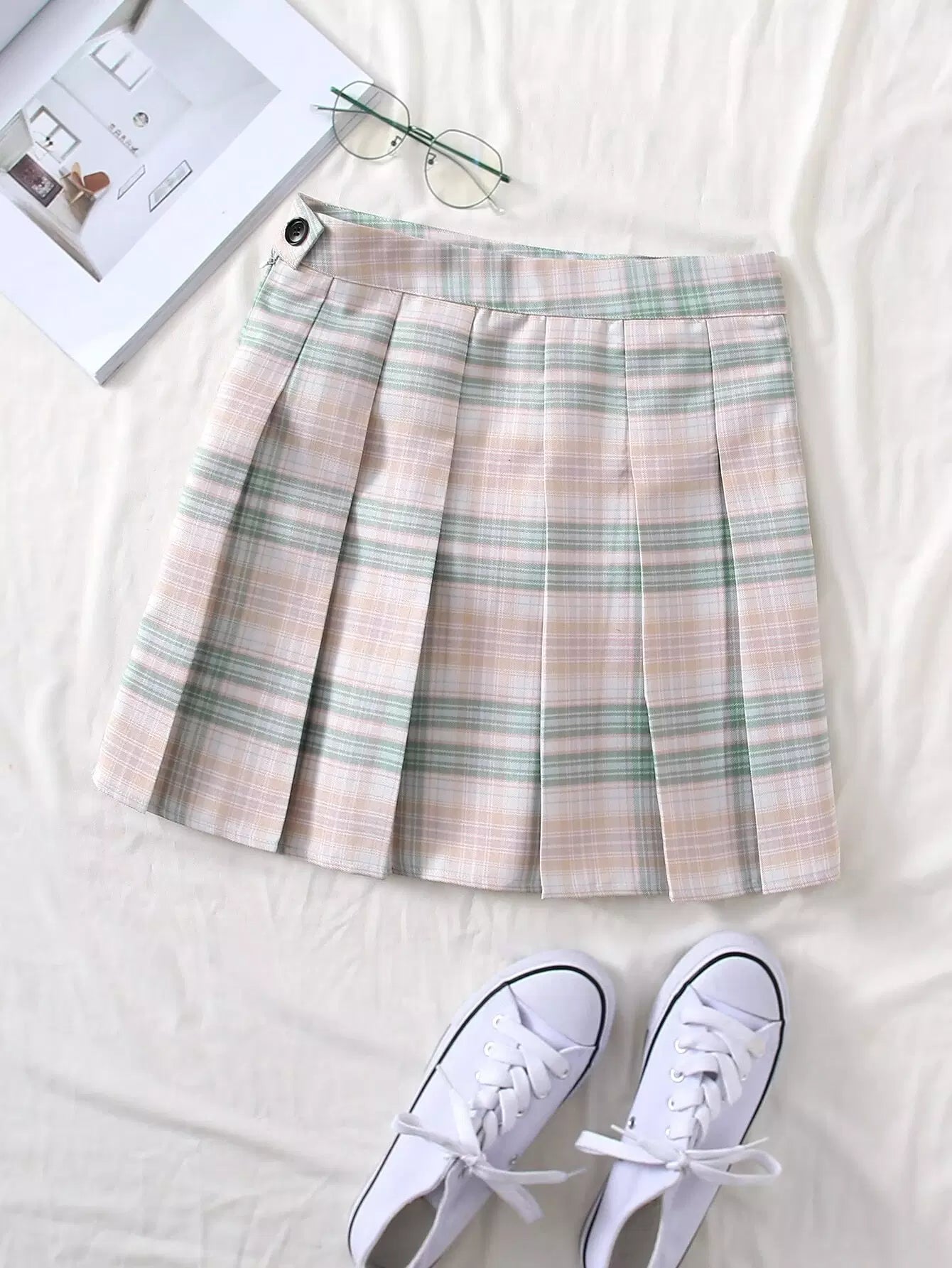 تنورة تارتان ذات ثنيات عالية الخصر من الترتان