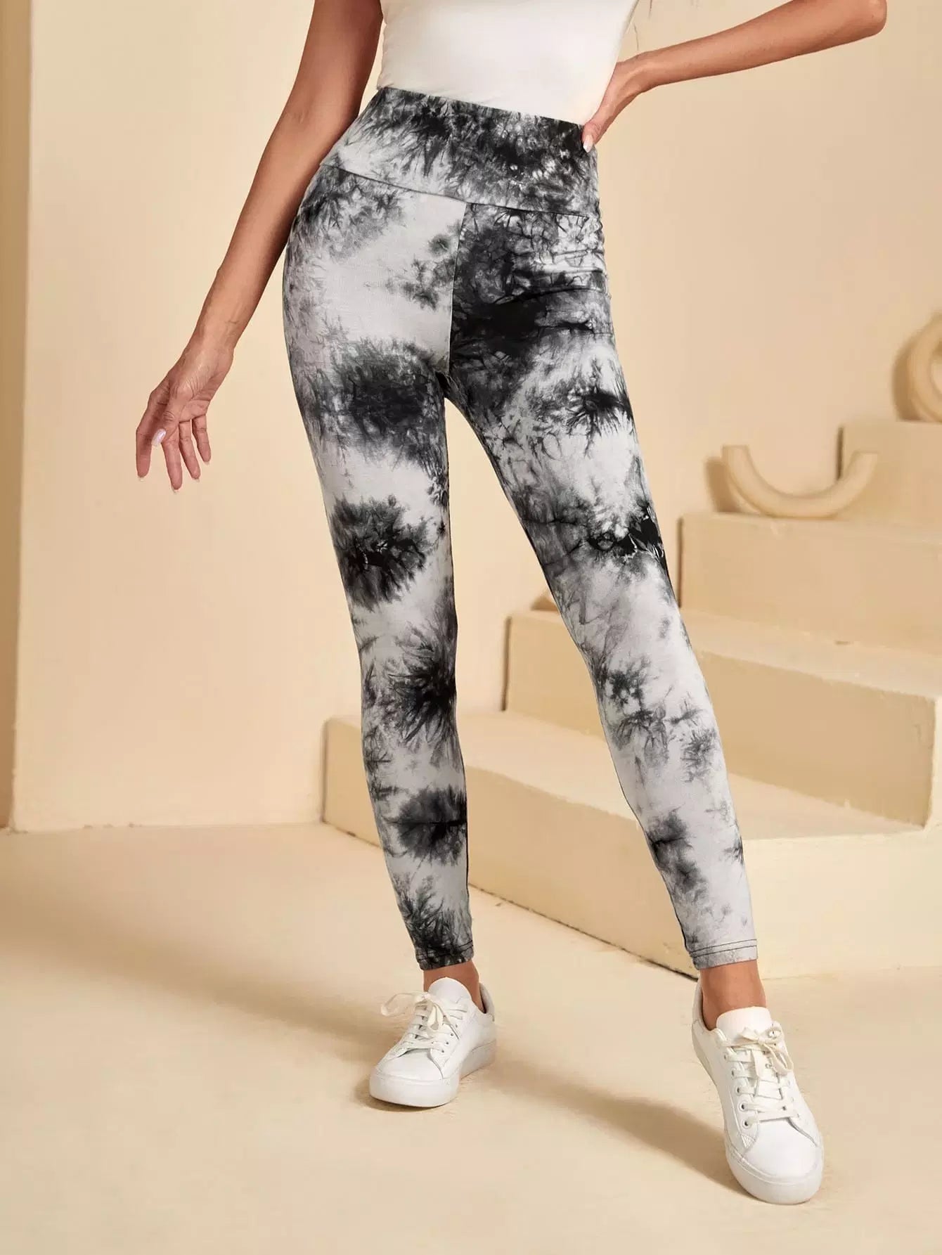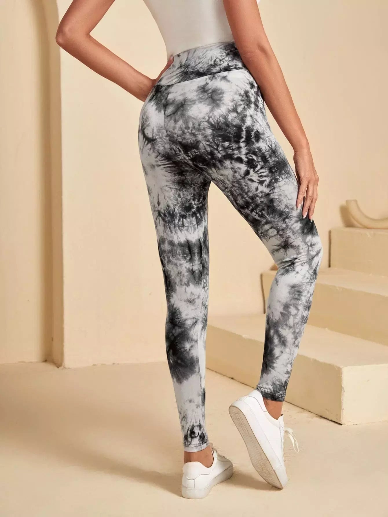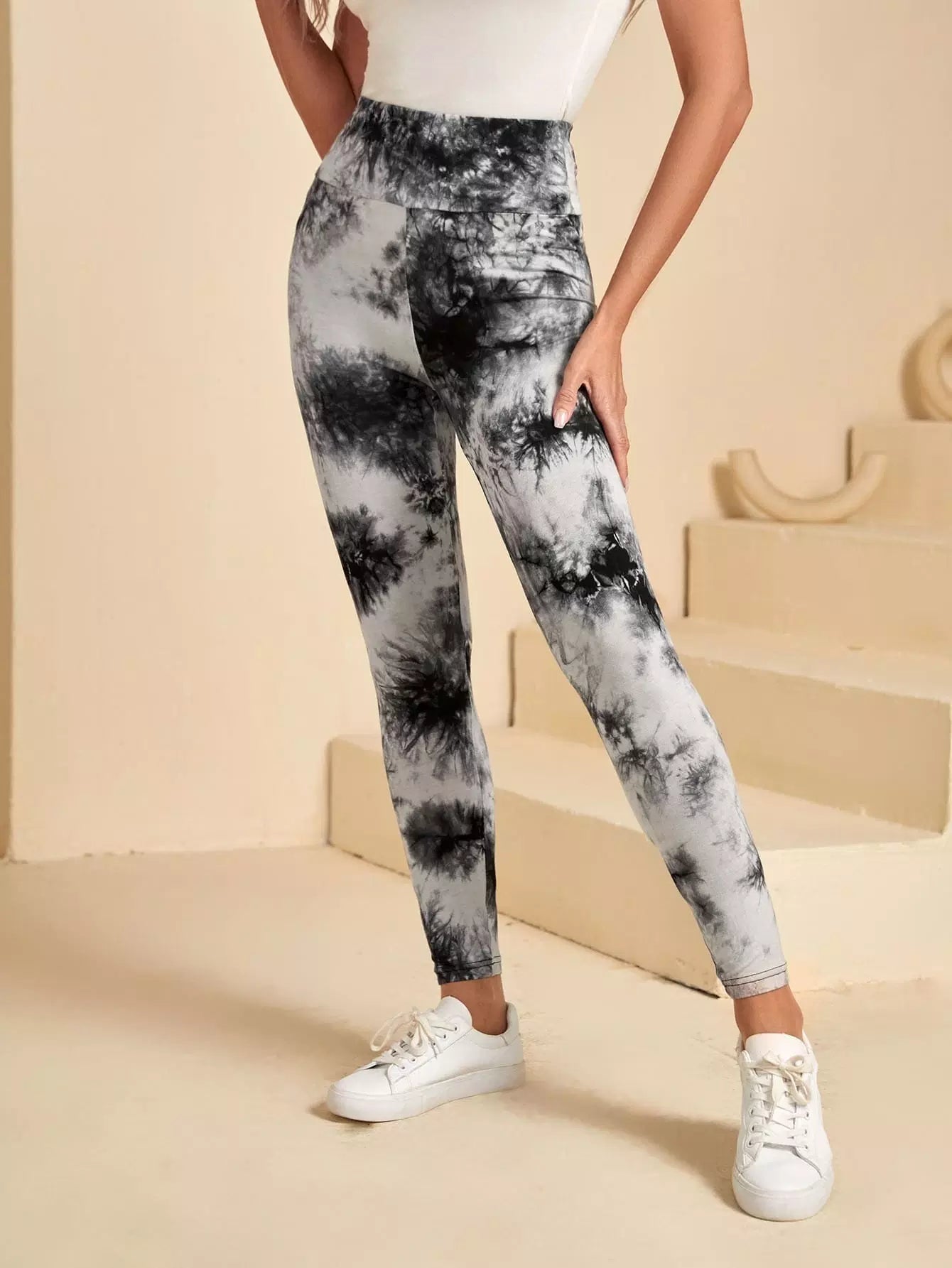 بنطلون ضيق بخصر عالٍ مصبوغ بربطة خصر عالية