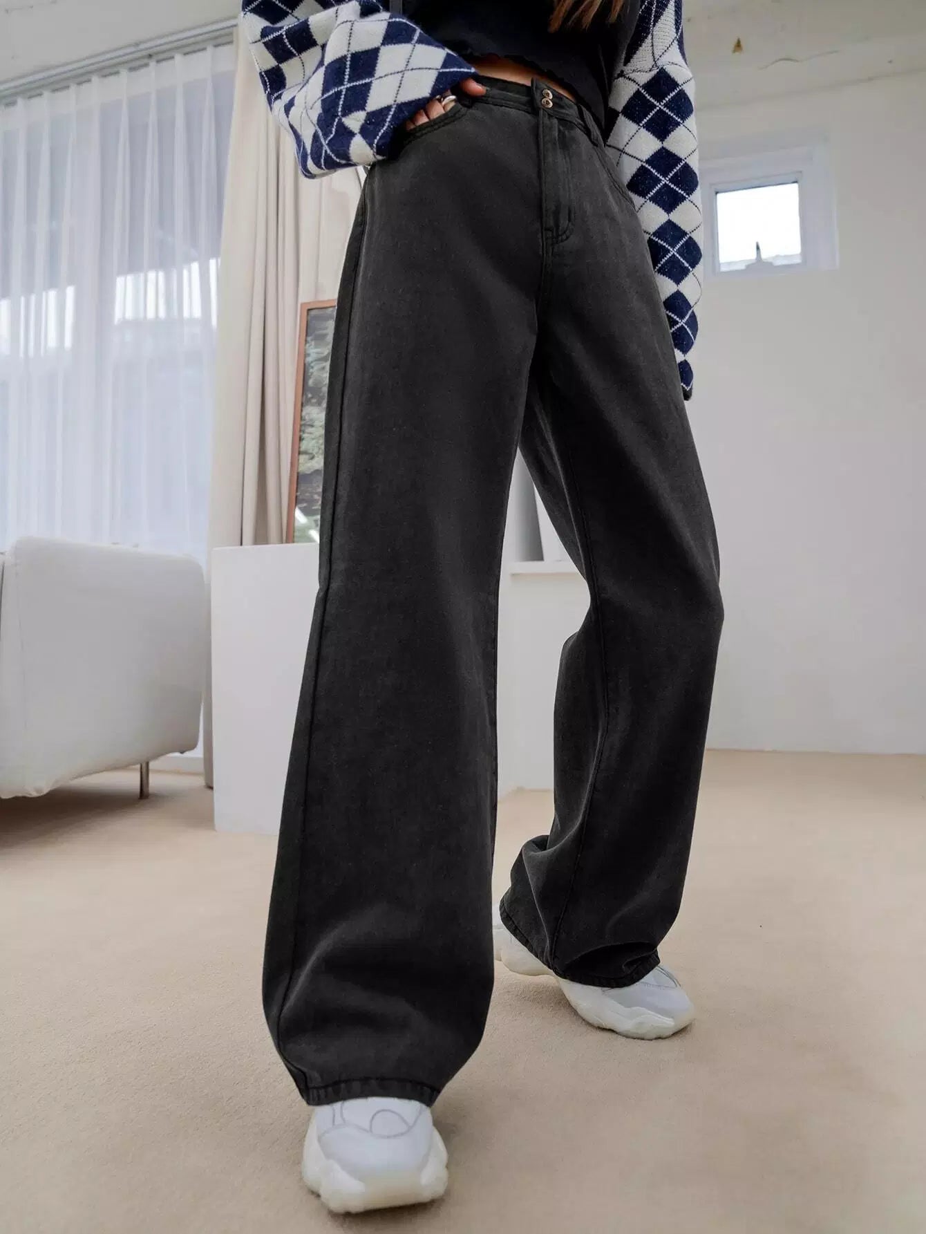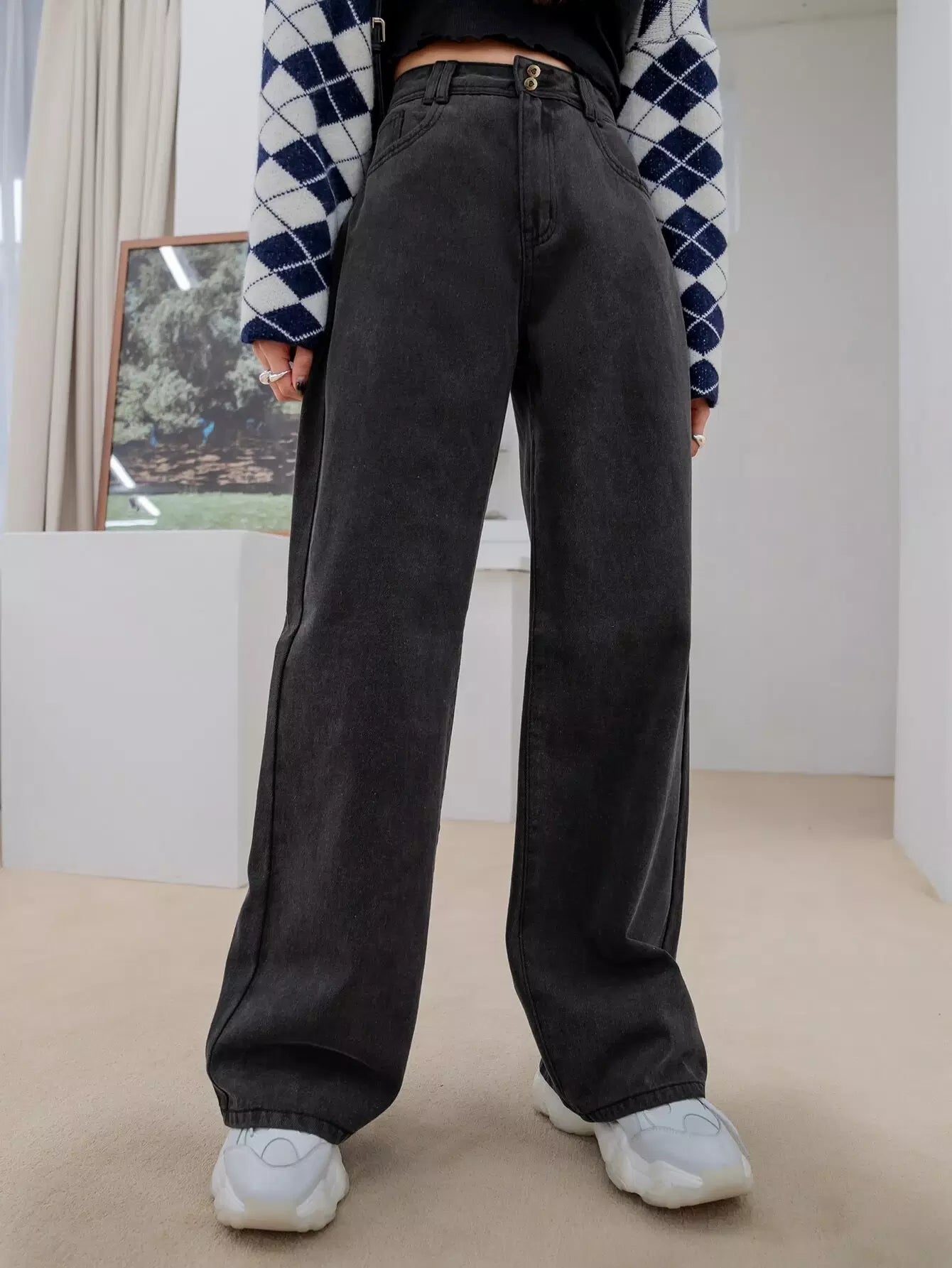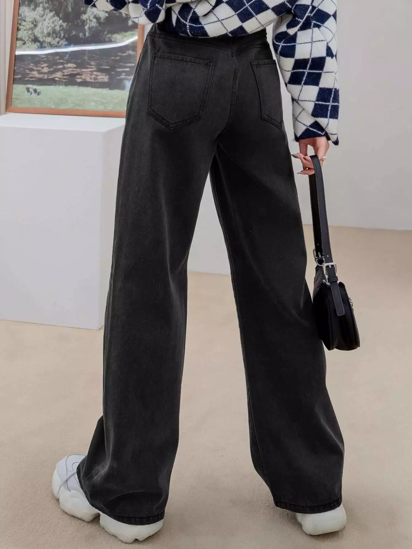 بنطلون جينز بخصر عالي الخصر واسع الساقين