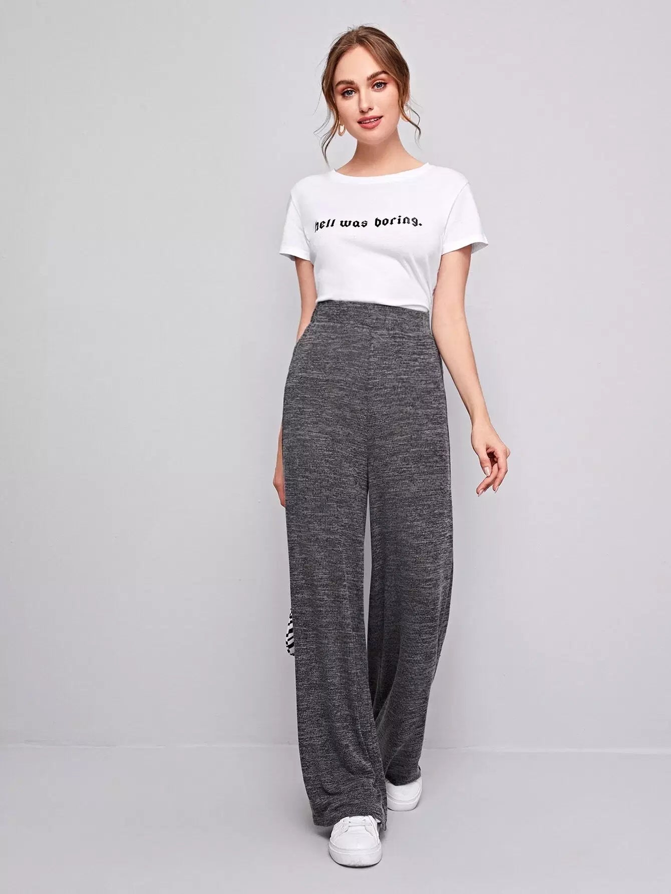 بنطال واسع الساق بخصر مرتفع