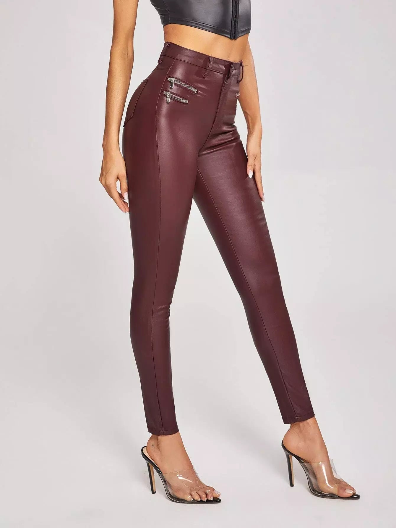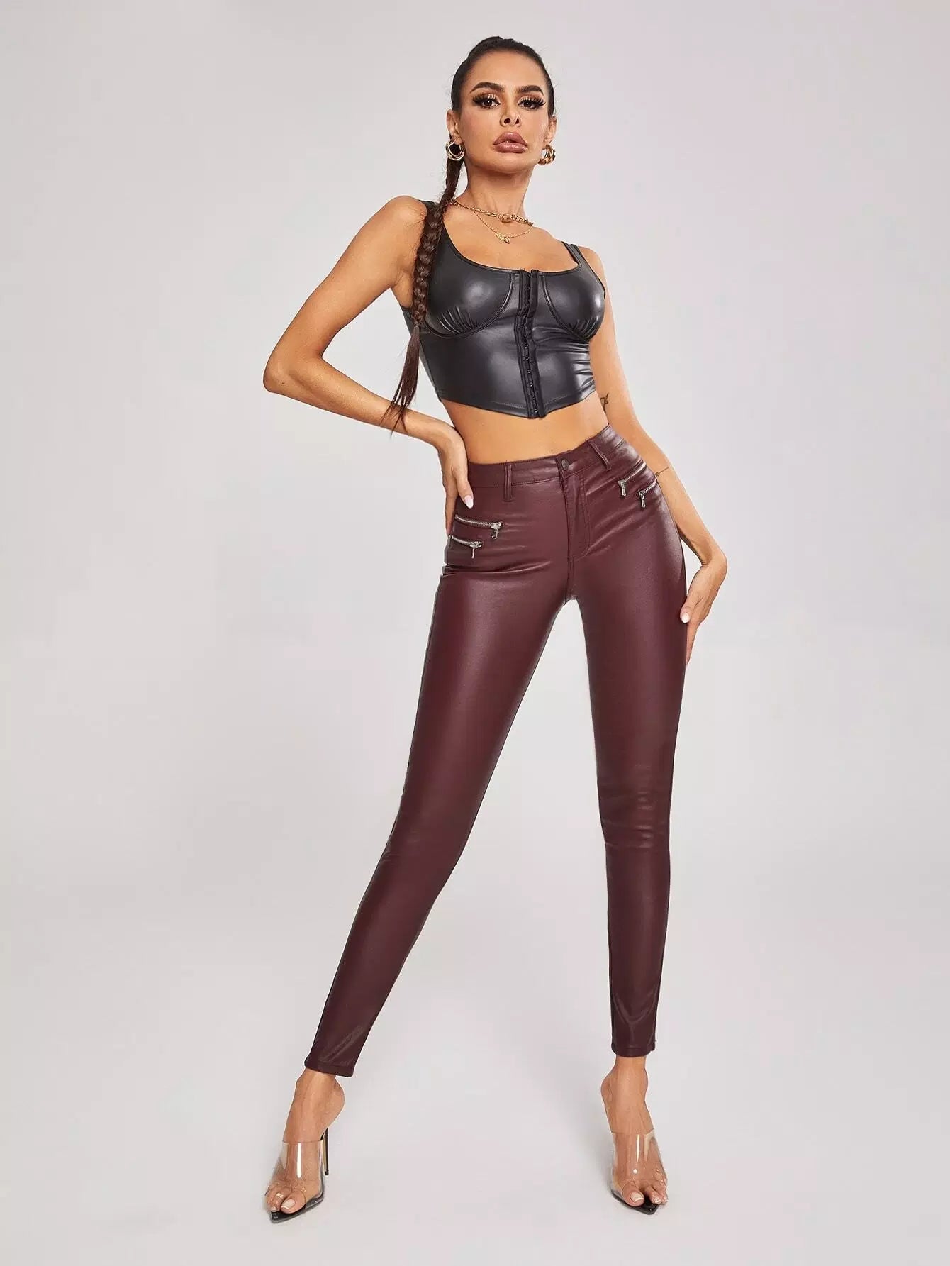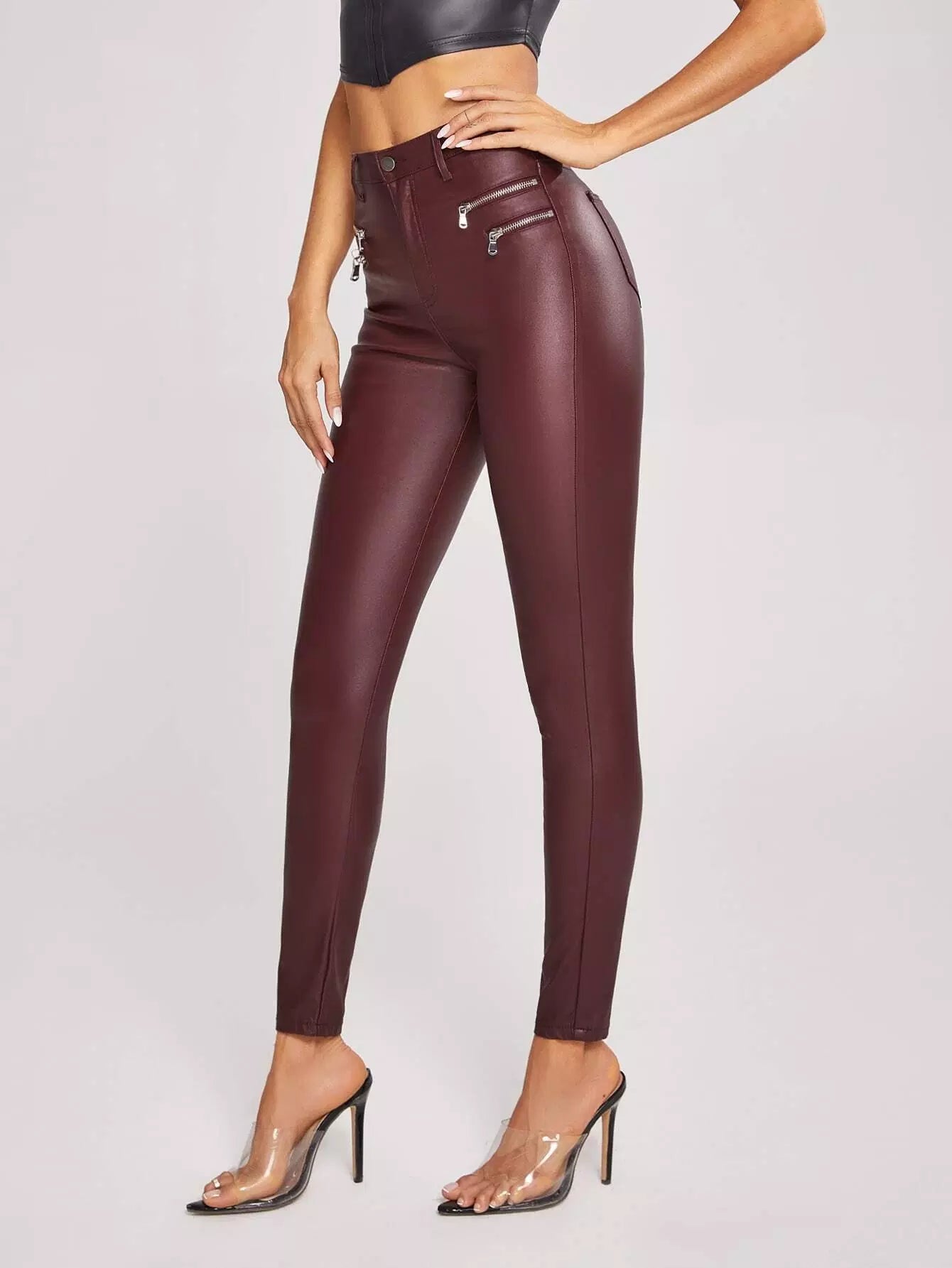 بنطلون جينز جينز سكيني ذو خصر عالٍ مزين بسحّاب ومزين بسحّاب
