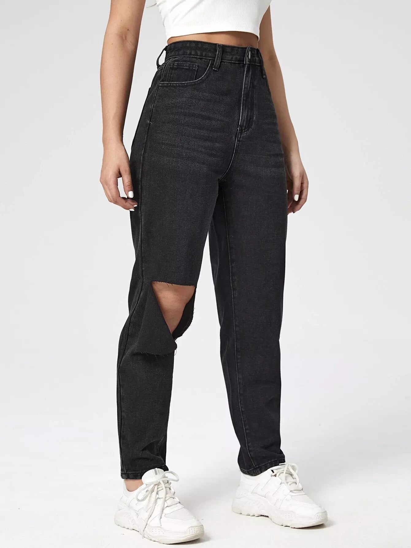 بنطلون جينز ممزق عالي الخصر