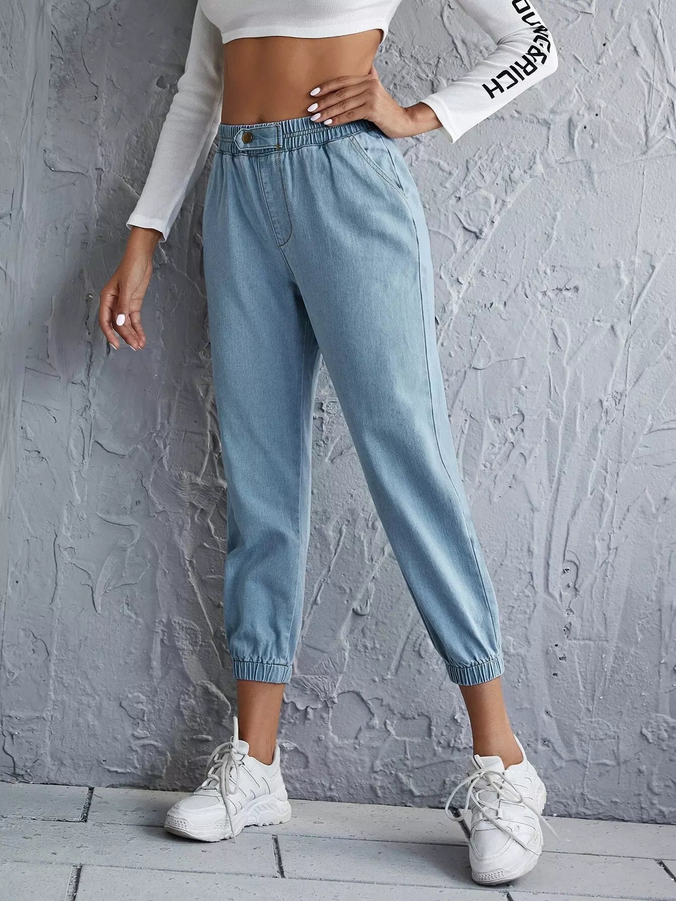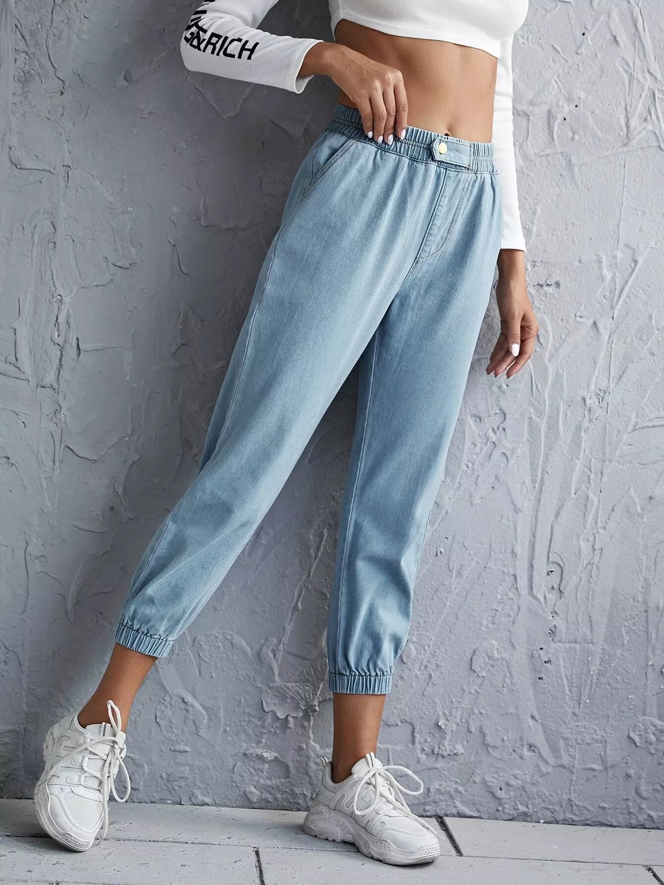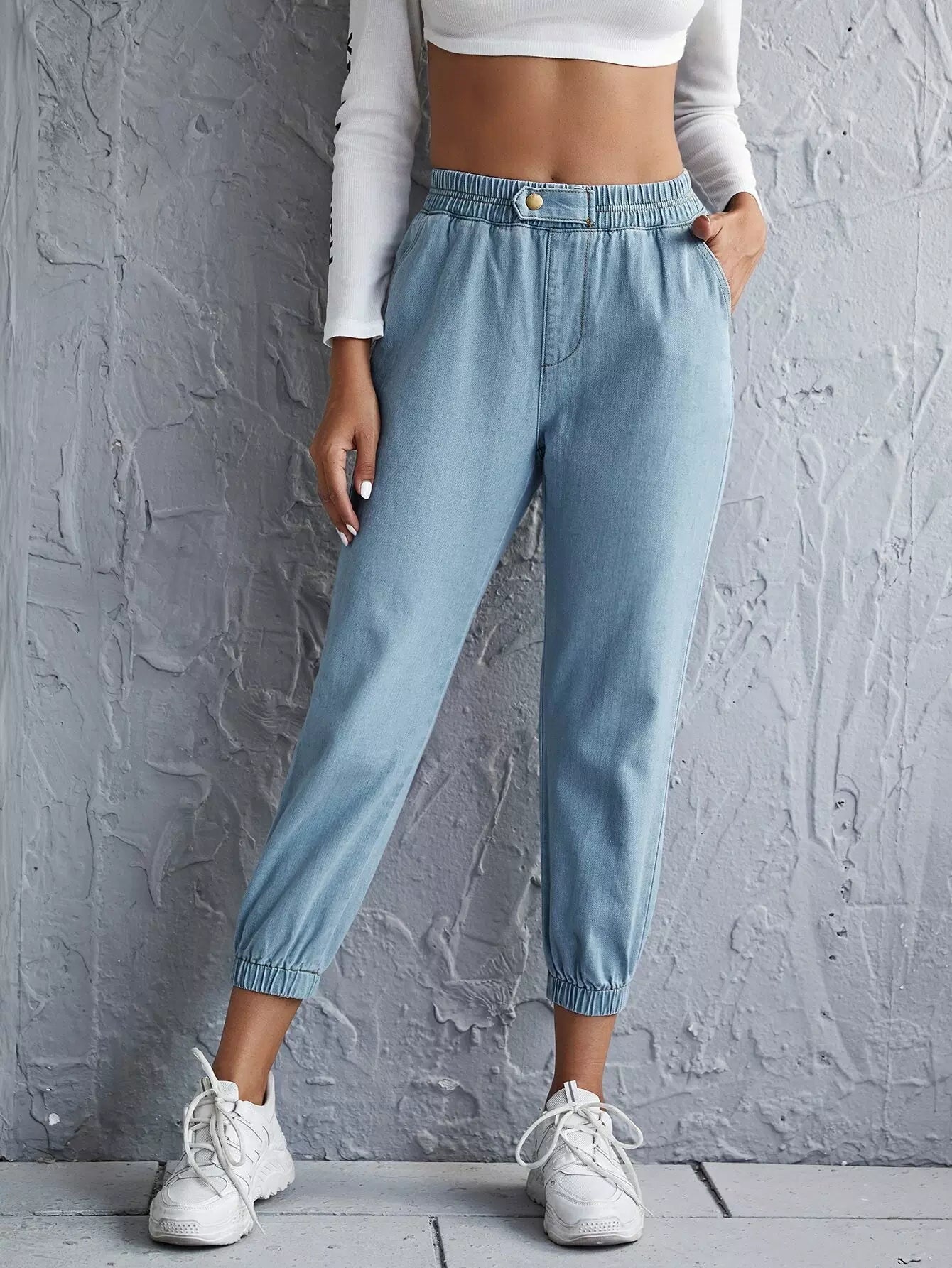 للنساء - بنطال جينز جوغرز بجيب مائل عالي الخصر