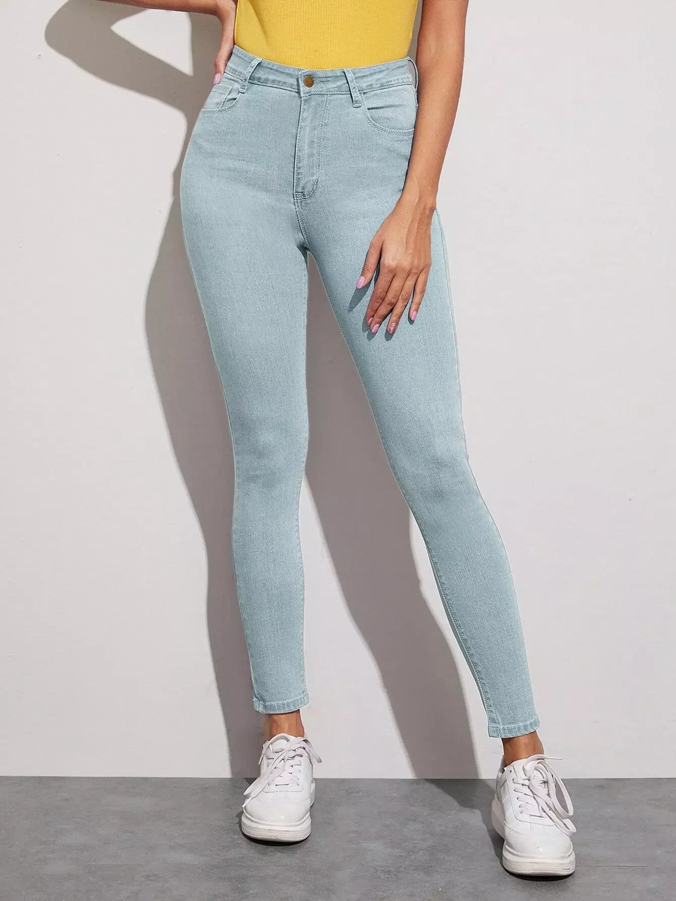بنطلون جينز سكيني ضيق عالي التمدد عالي الارتفاع