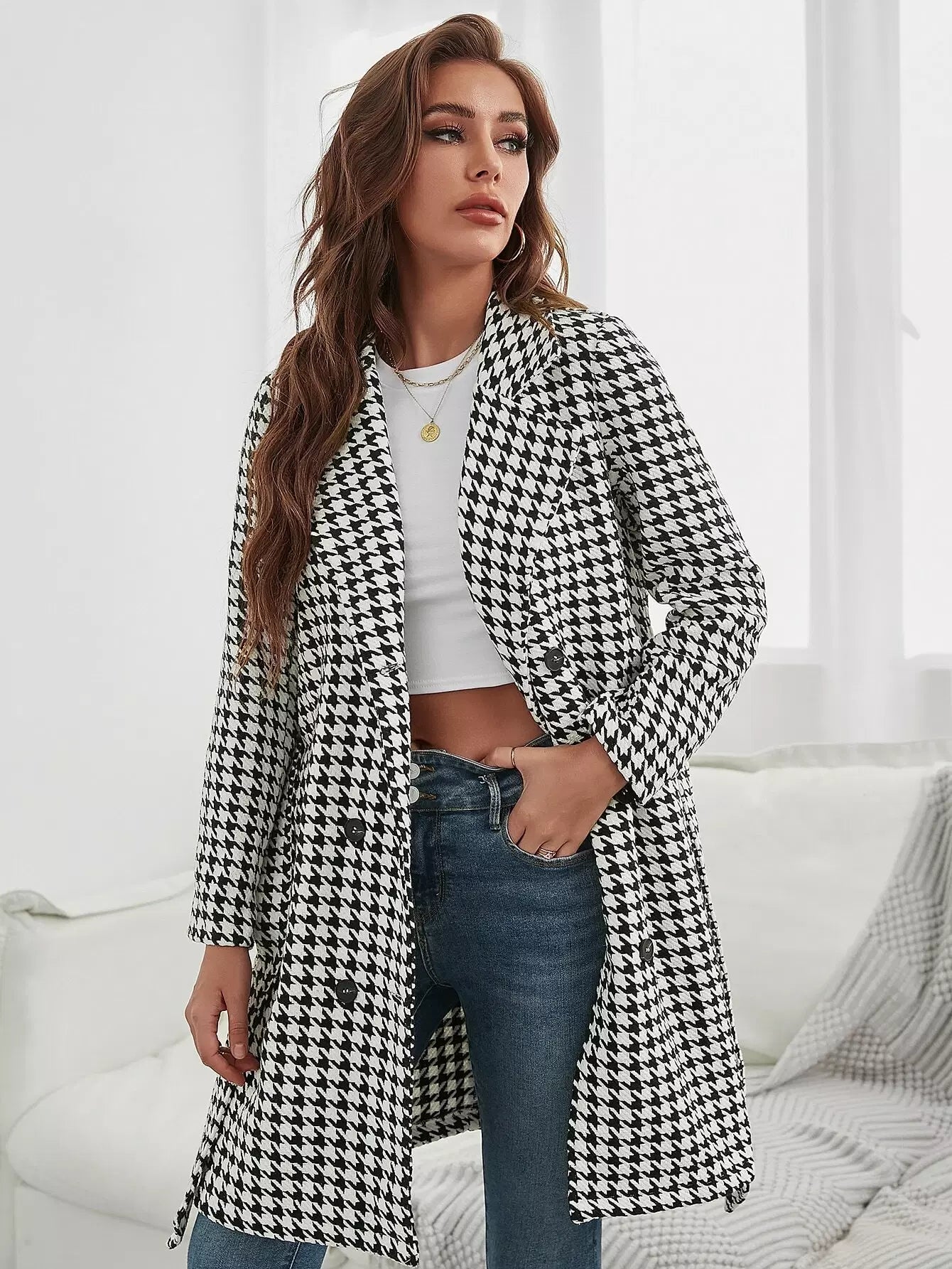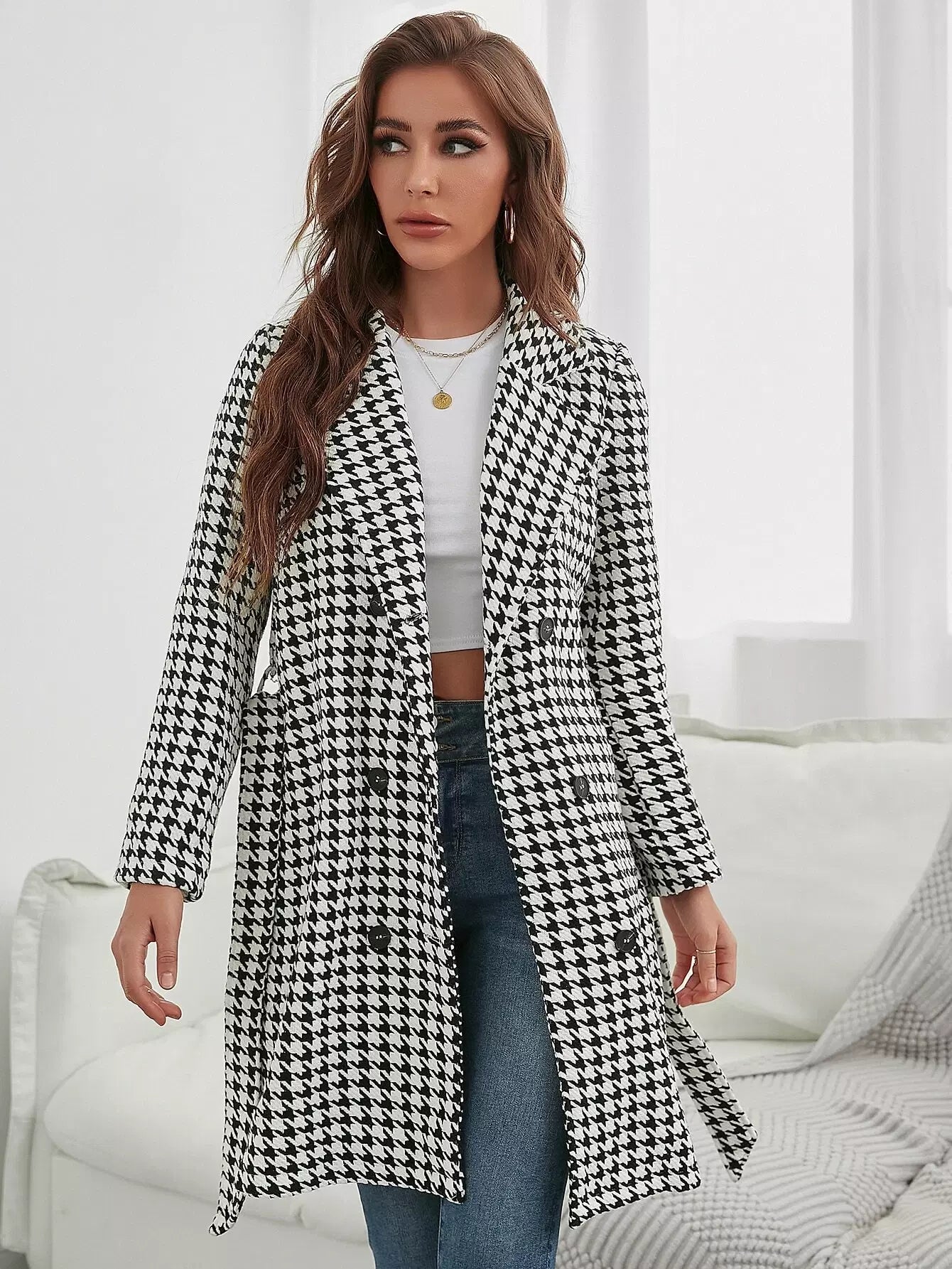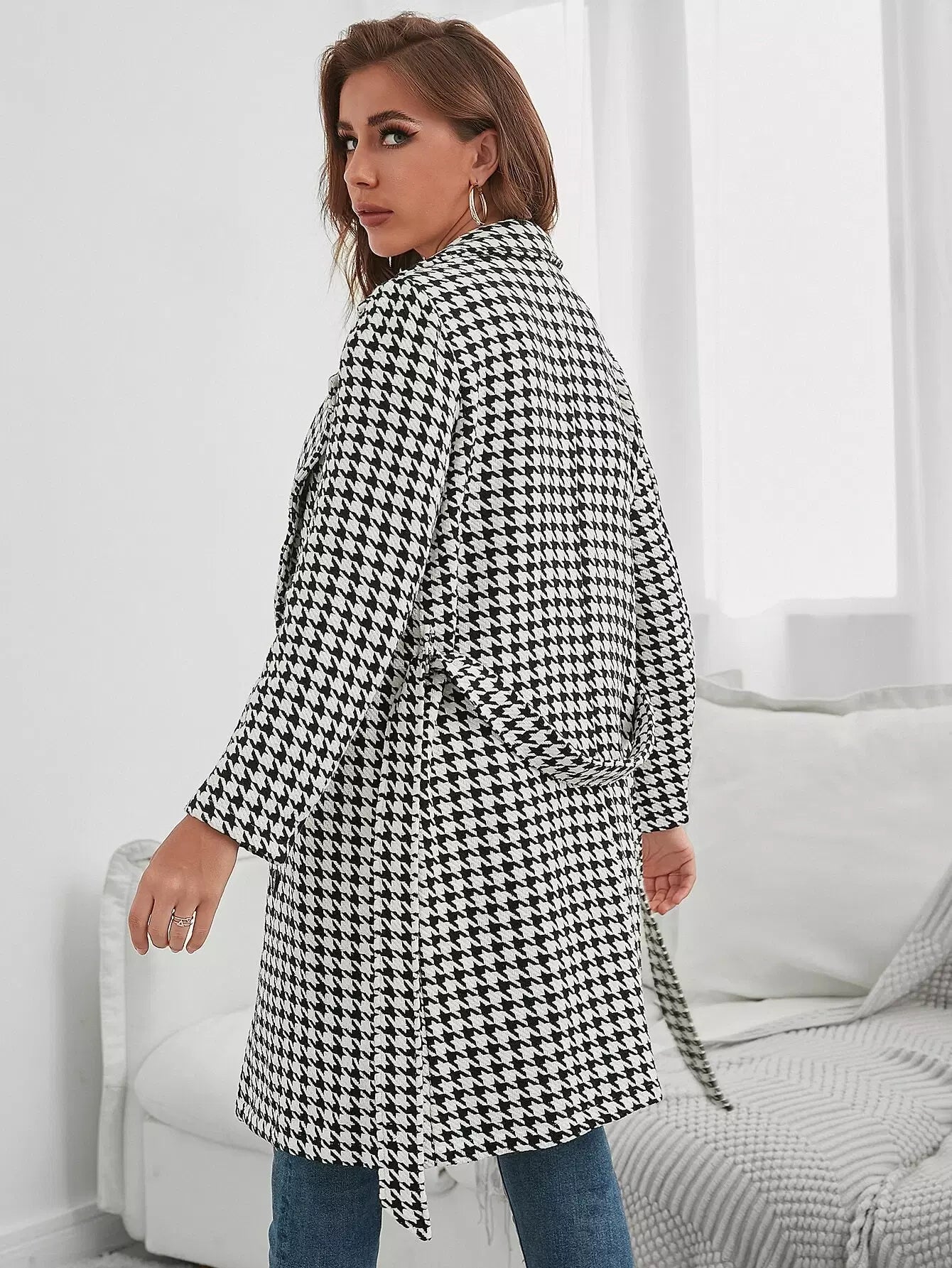 معطف من التويد ذو طية صدر السترة بدون حزام
