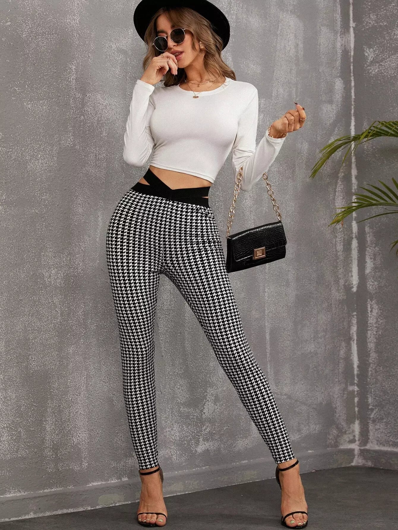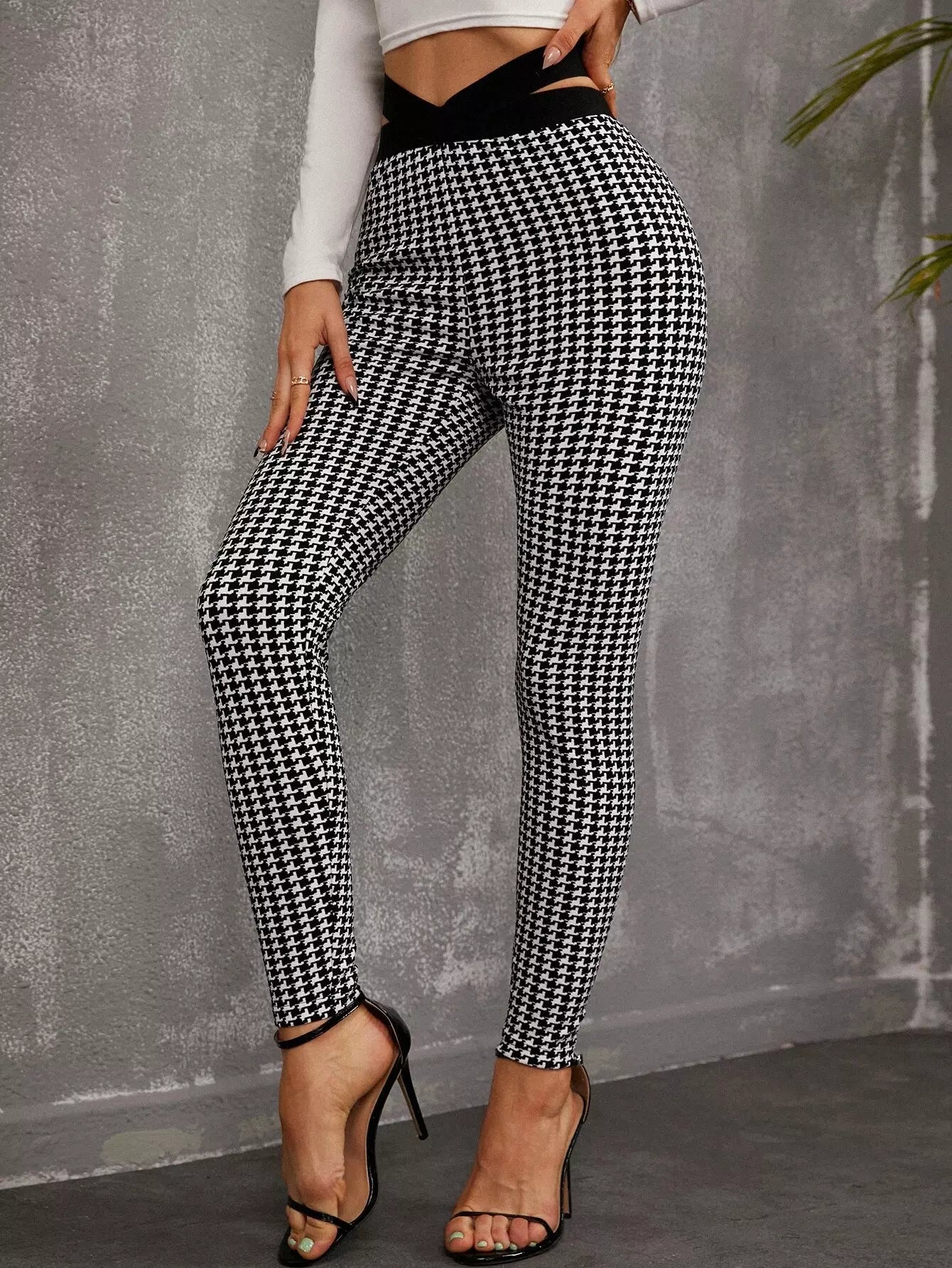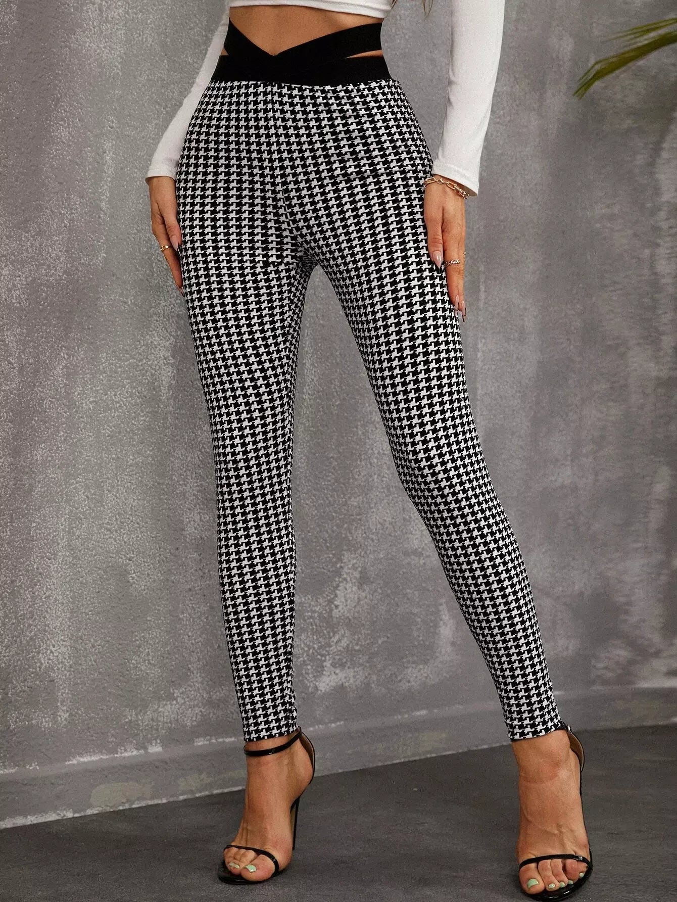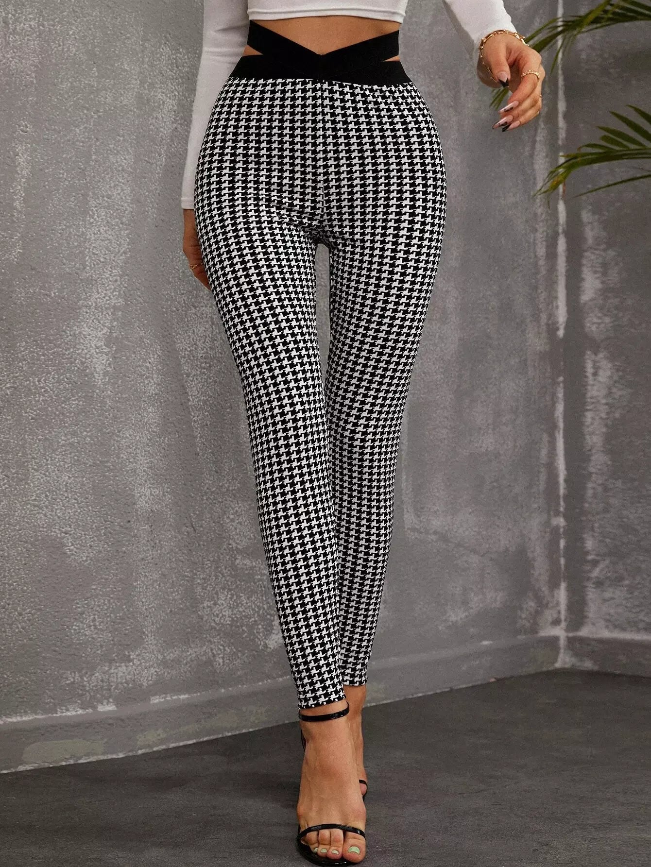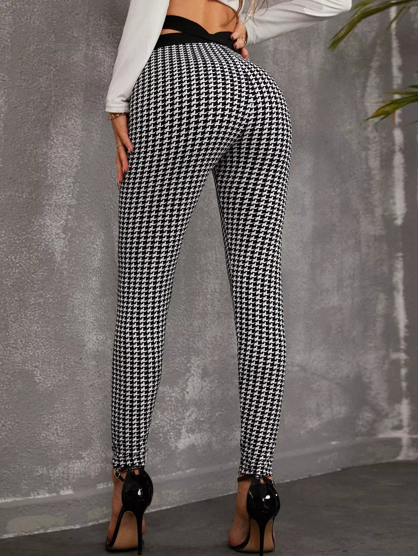 بنطال ضيق بطبعة هاوندستوث بقصّة خصر مقطوع
