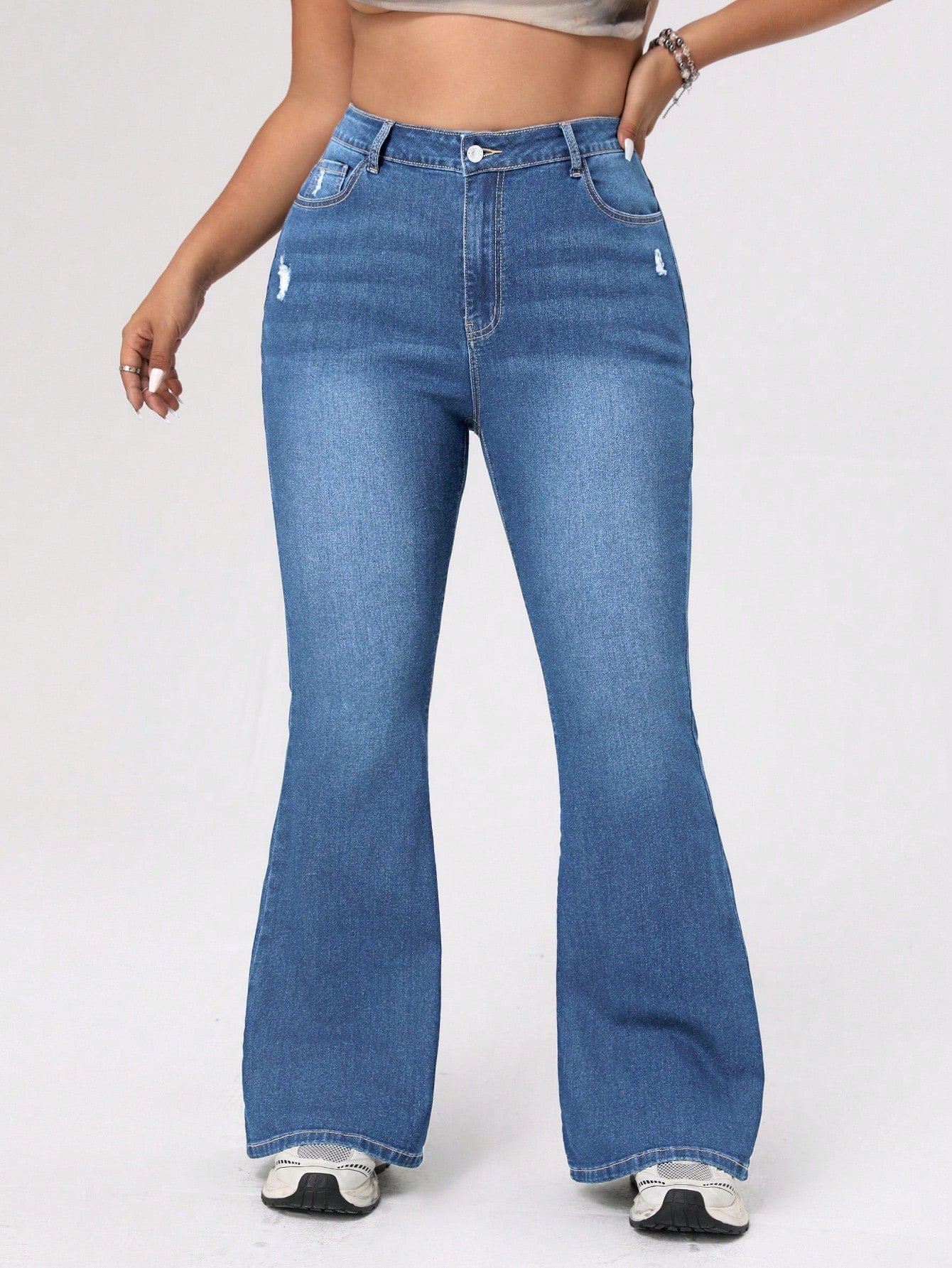 ICON Plus Size Front Button Multiple Pocket Distressed Simple Design Denim Jeans, Casual Daily Wear