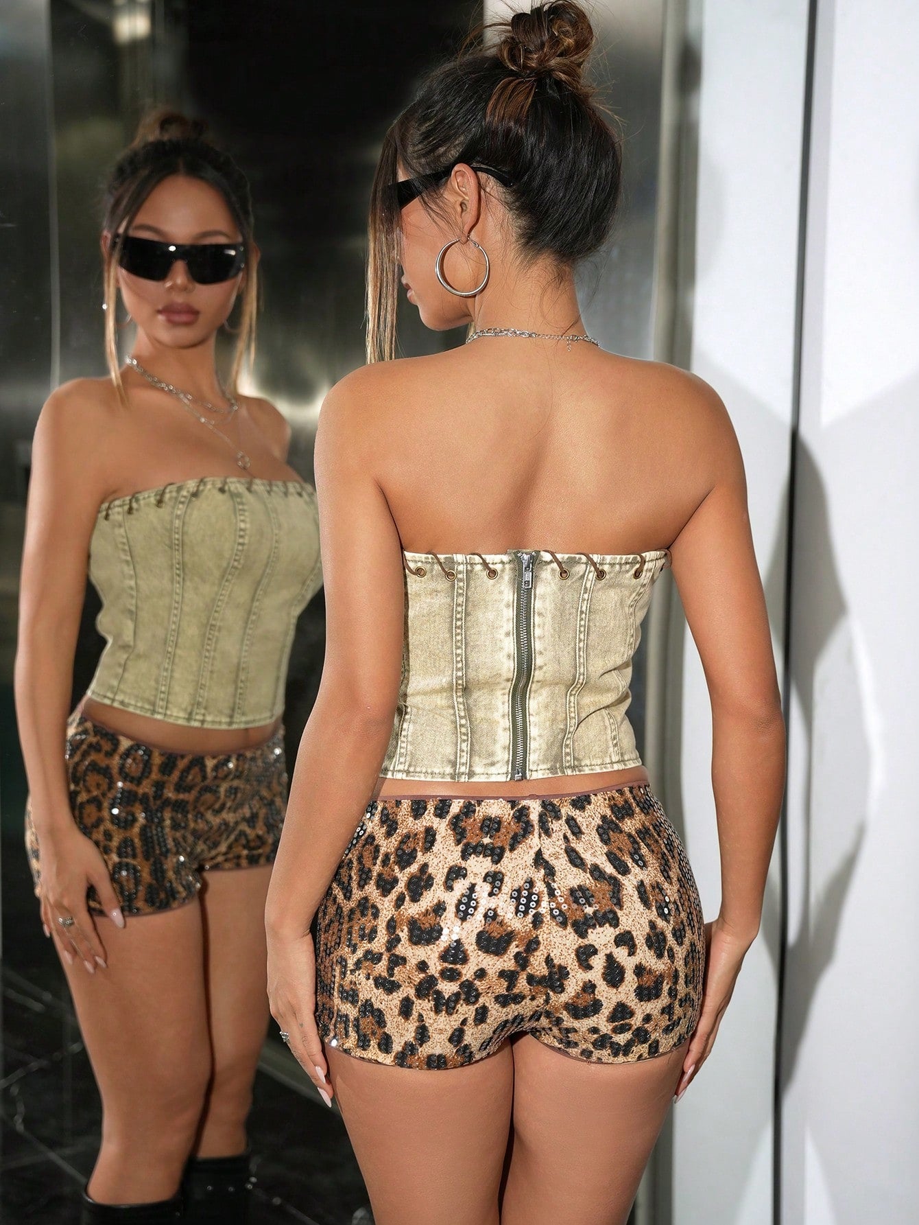 قميص داخلي نسائي من ICON بسحاب من قماش الدنيم، مناسب للارتداء اليومي غير الرسمي