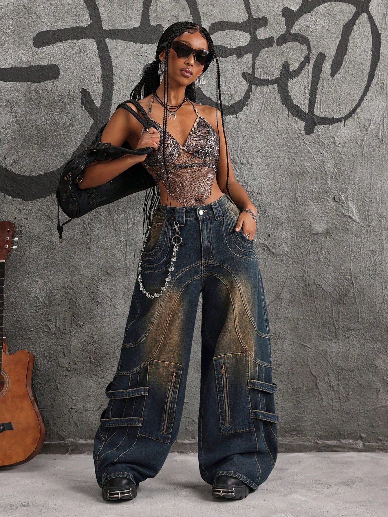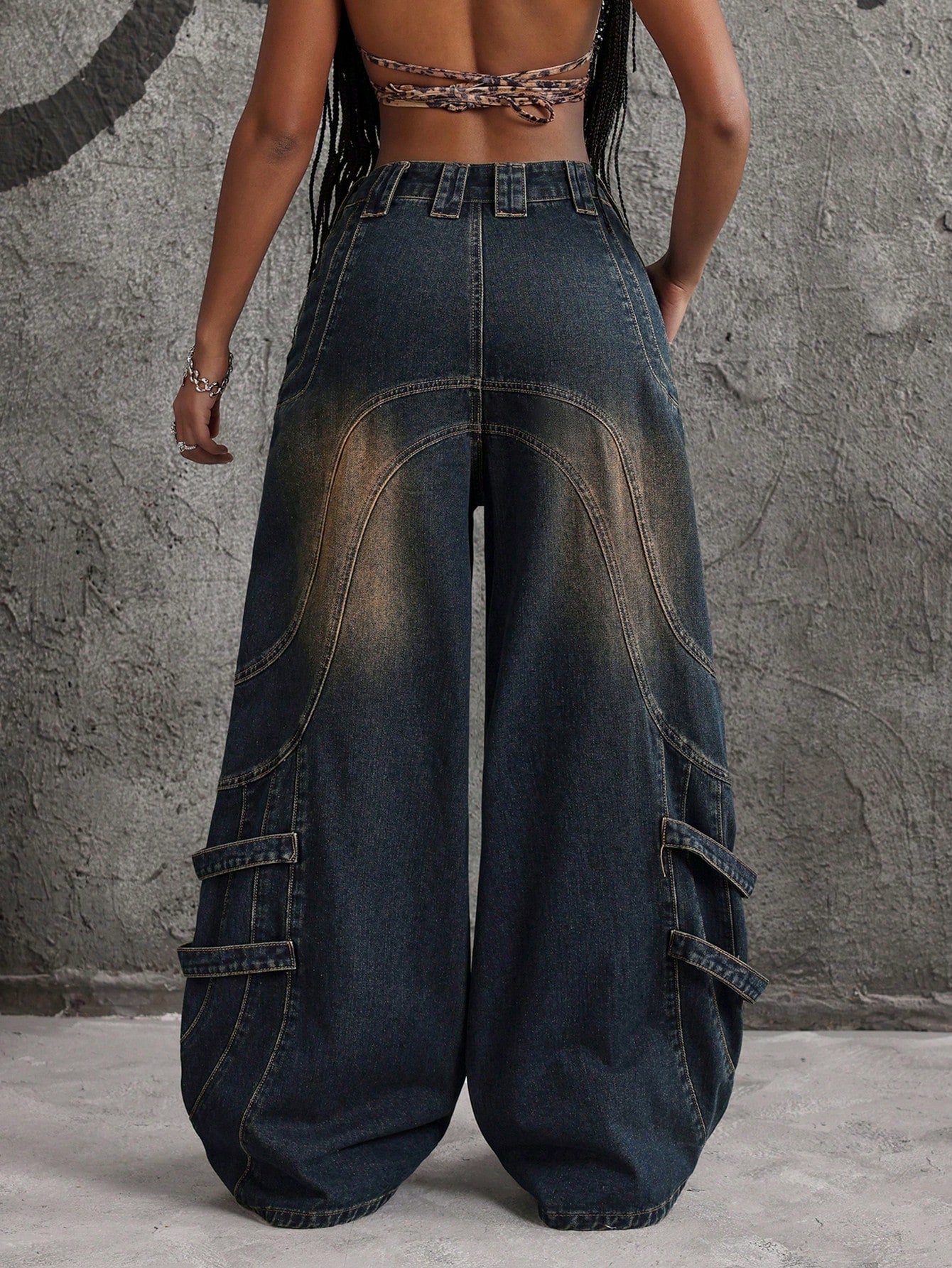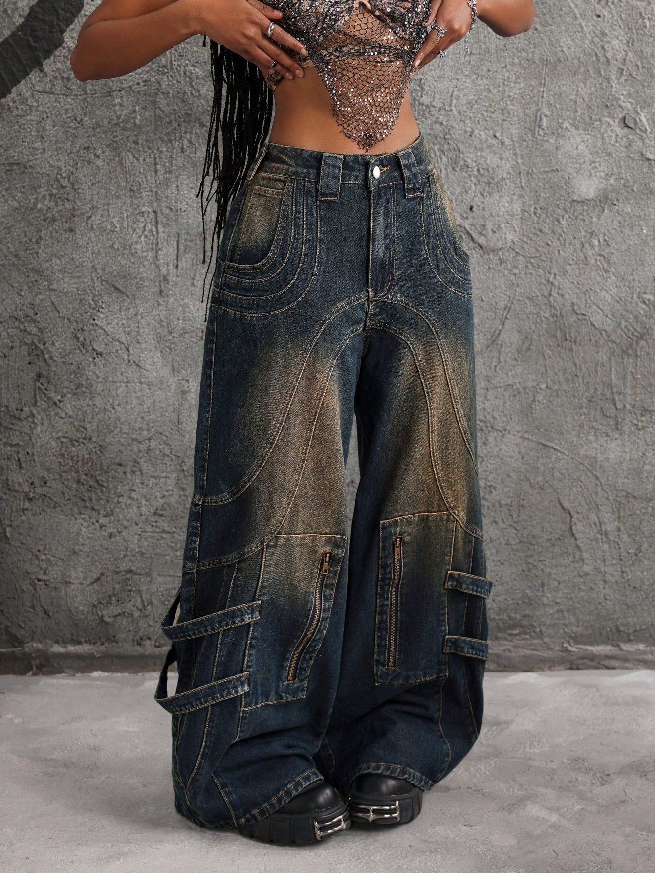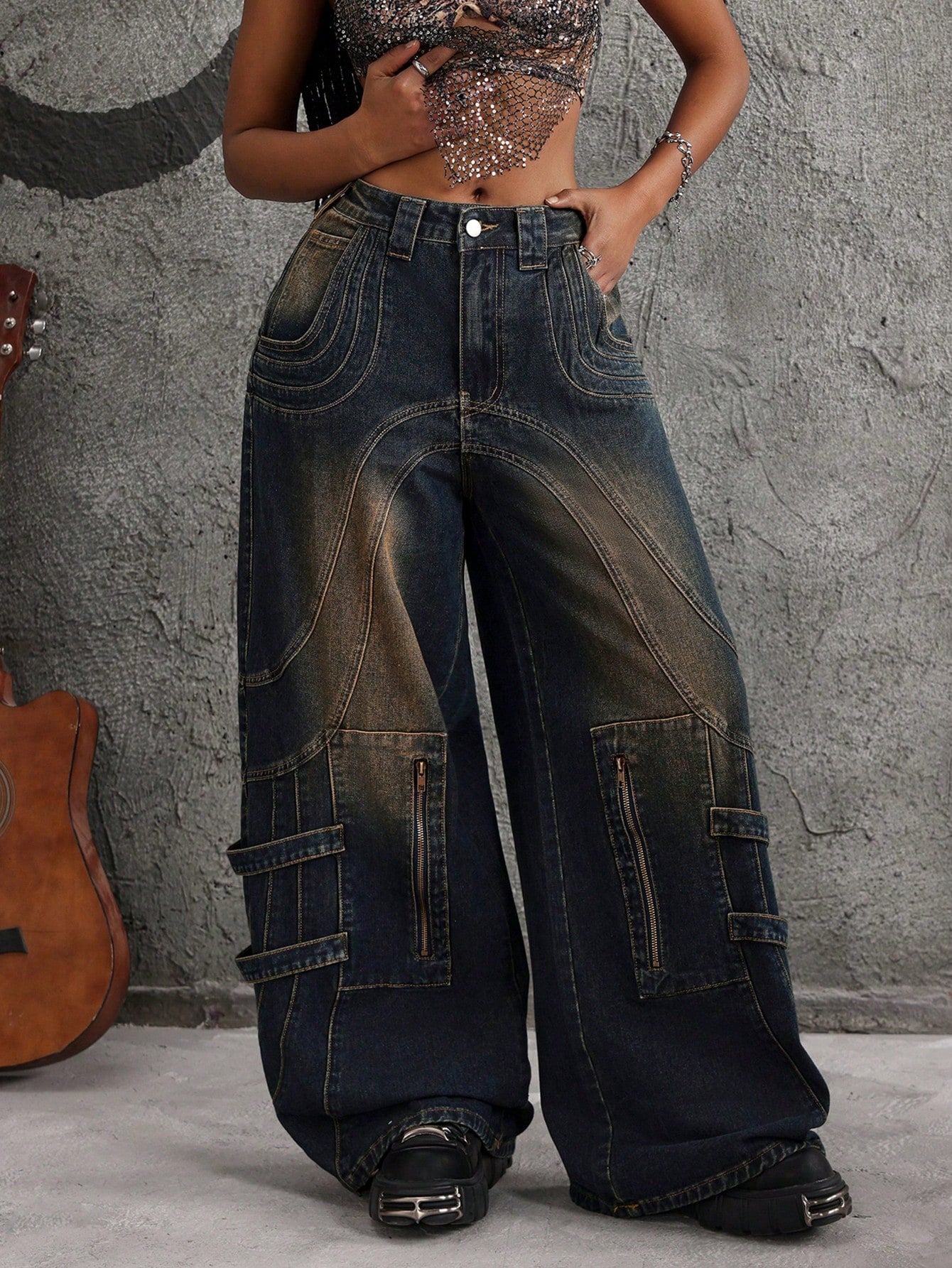 بنطلون جينز نسائي فضفاض واسع الساق من ICON بسحاب أمامي وجيب