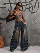 ICON Women's Zipper Front Pocket Wide Leg Loose Casual Jeans