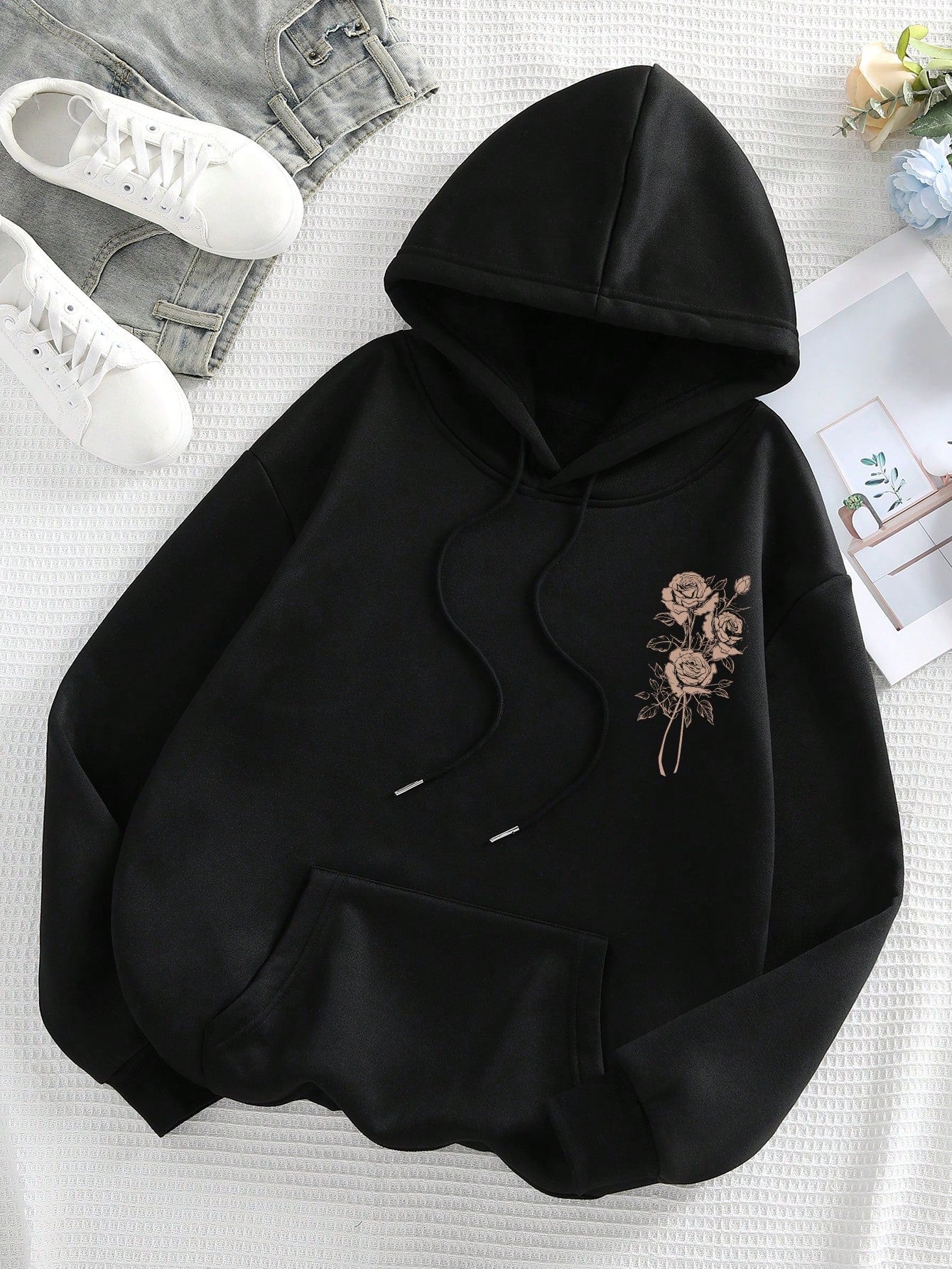سويت شيرت نسائي بأكمام طويلة وغطاء رأس مطبوع عليه حروف وزهور، قطعة واحدة من INAWLY، مناسب للتخرج