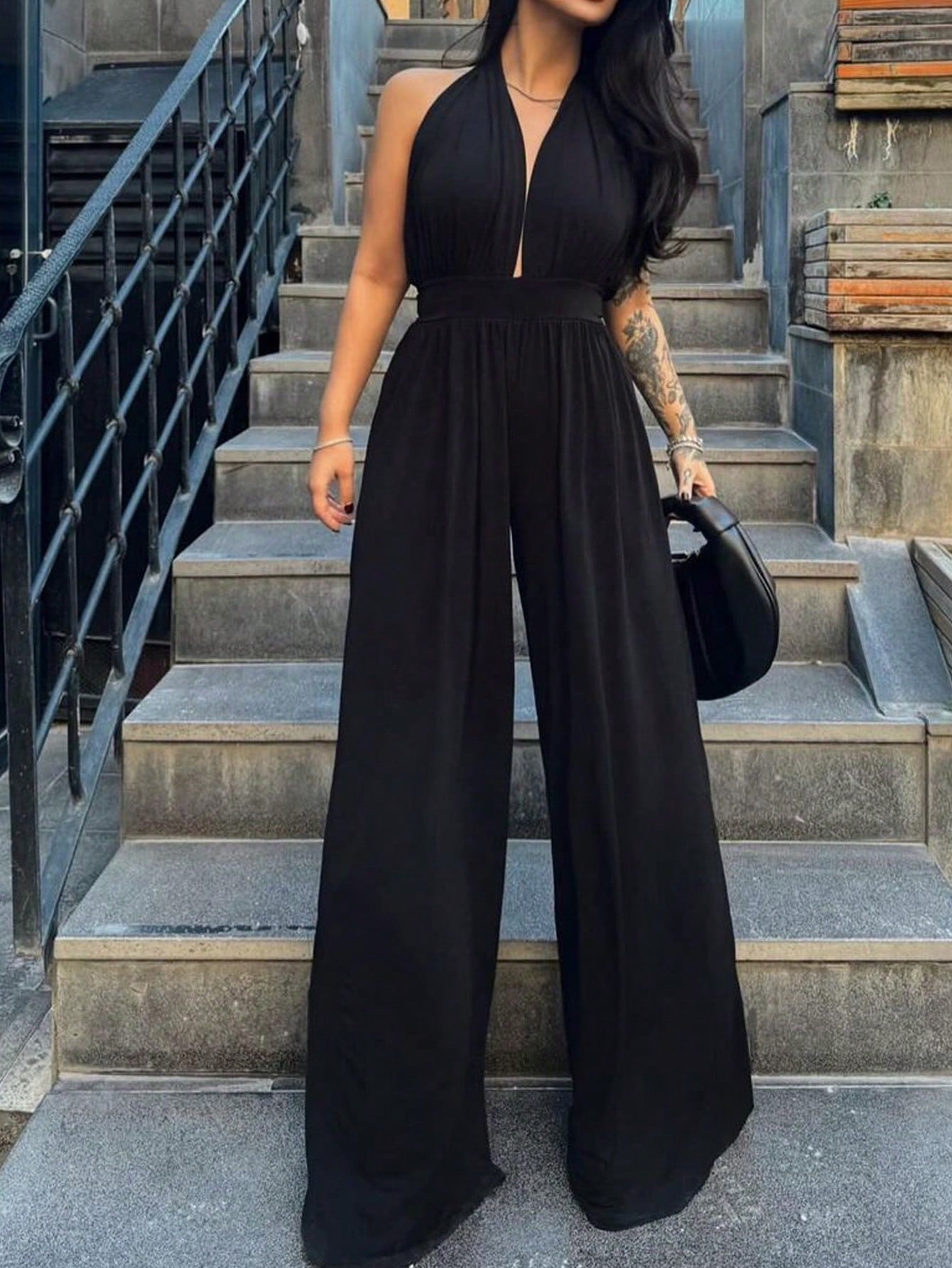 جمبسوت نسائي بلون موحد بدون ظهر من إناولي