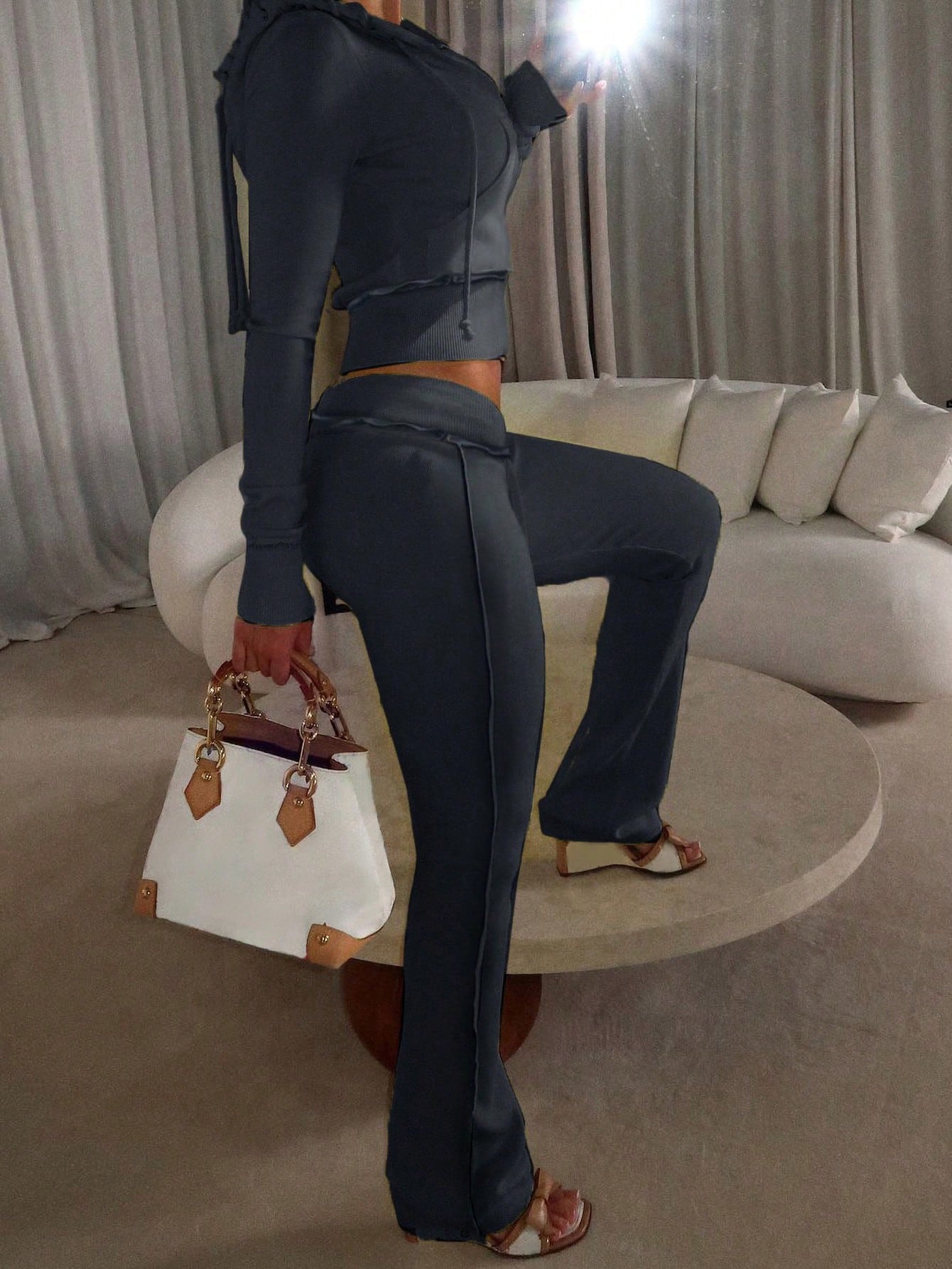 طقم نسائي من INAWLY Solva مكون من بلوزة بغطاء رأس بسحاب وبنطال طويل
