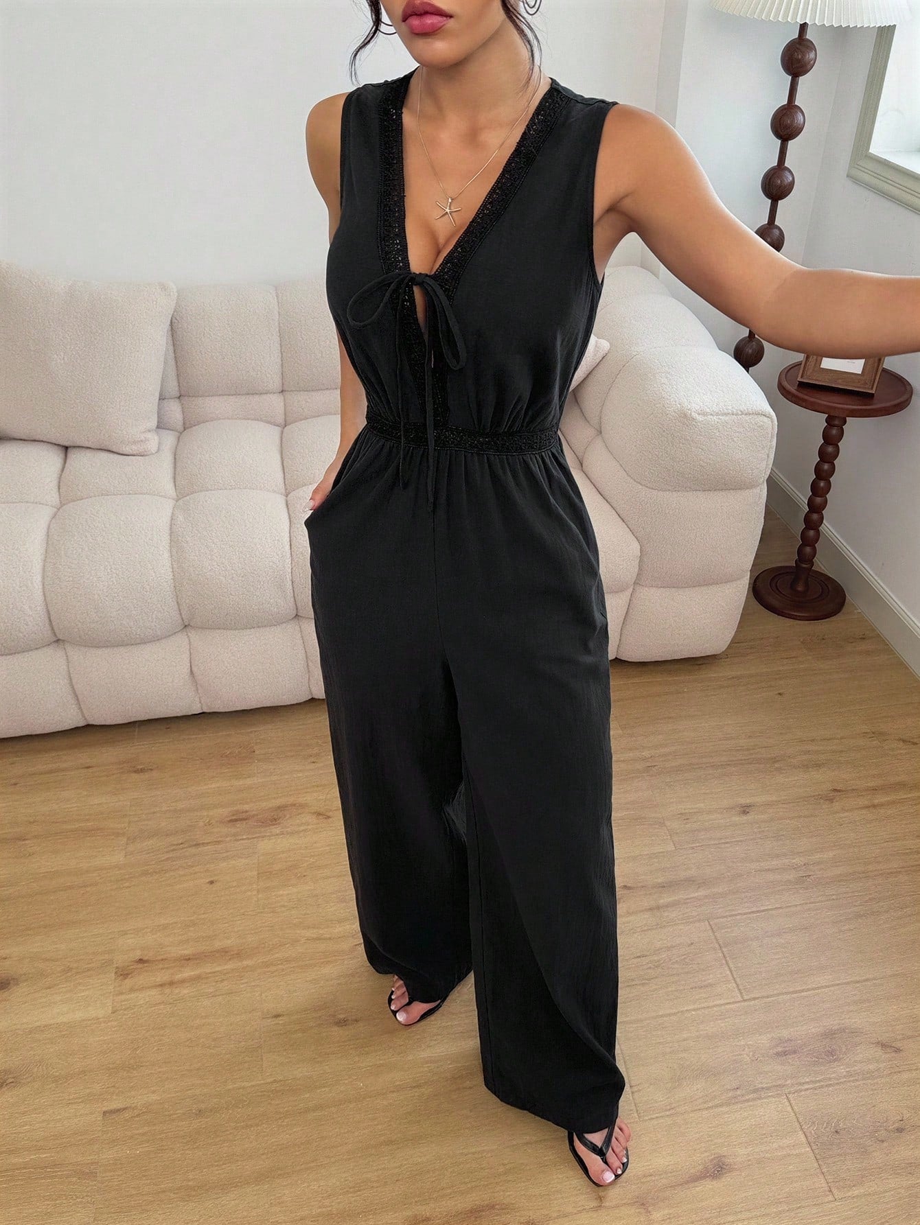 جمبسوت صيفي كاجوال من القطن والدانتيل المرقع من إيناولي