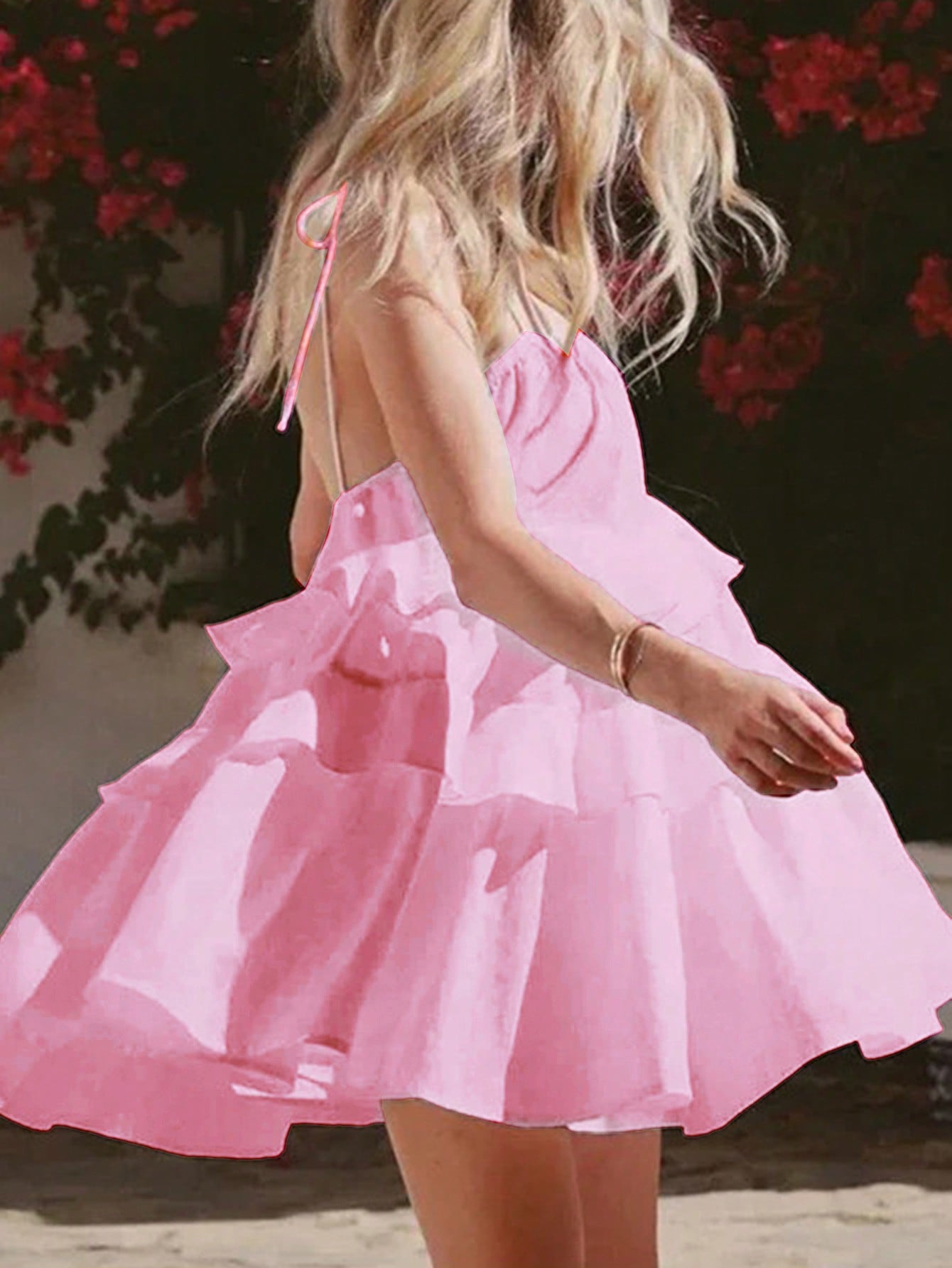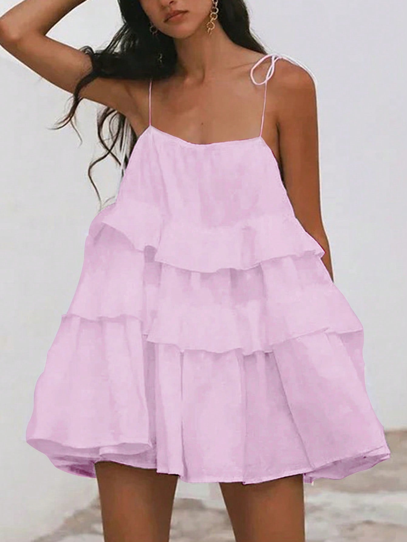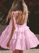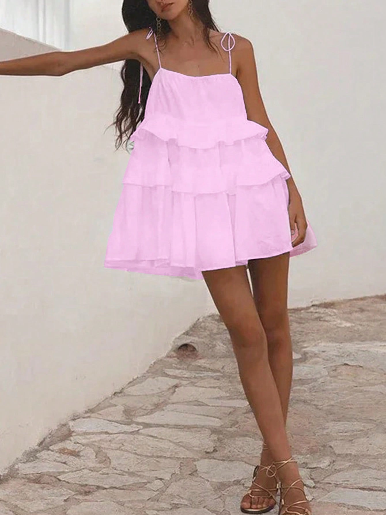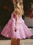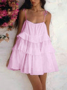 فستان صيفي أنيق بلون موحد وحمالات مكشكشة للنساء من إيناولي