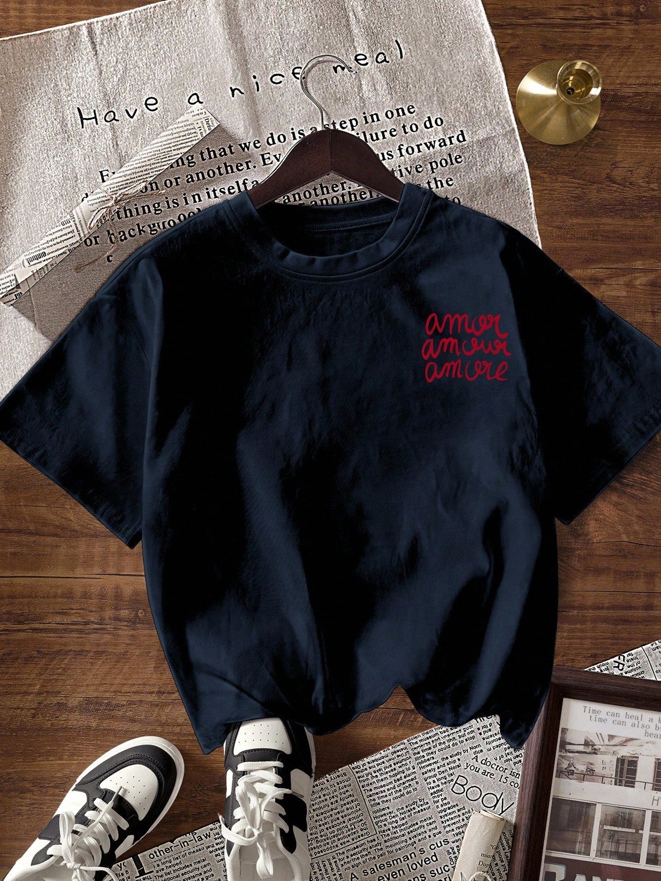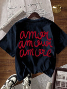 تيشيرت نسائي كاجوال مطبوع عليه حروف، بياقة دائرية وأكمام قصيرة من INAWLY