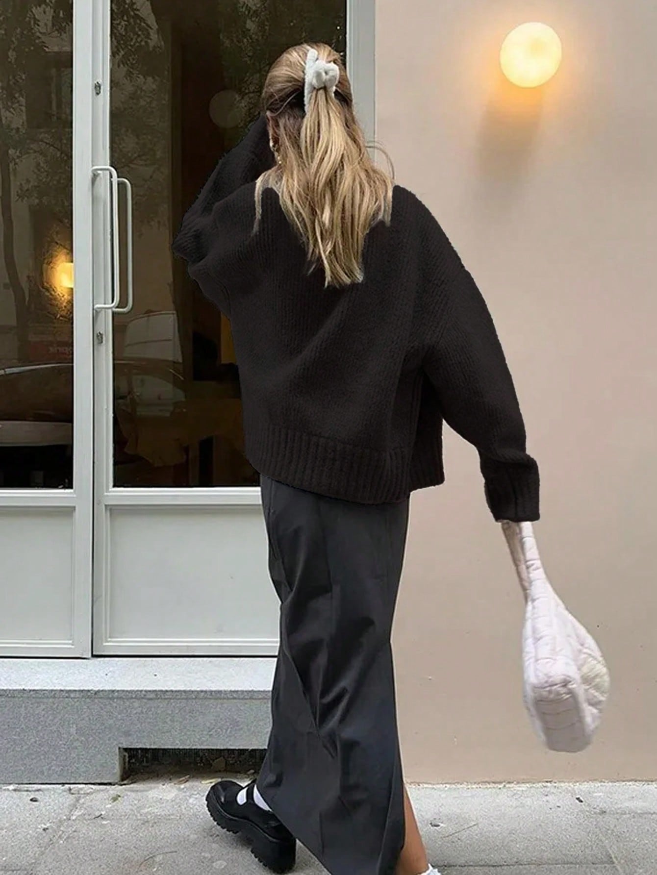 كنزة صوفية نسائية من إيناولي، بلون موحد وتصميم بسيط، بأكمام طويلة، مناسبة للارتداء اليومي، مثالية لفصلي الخريف والشتاء.