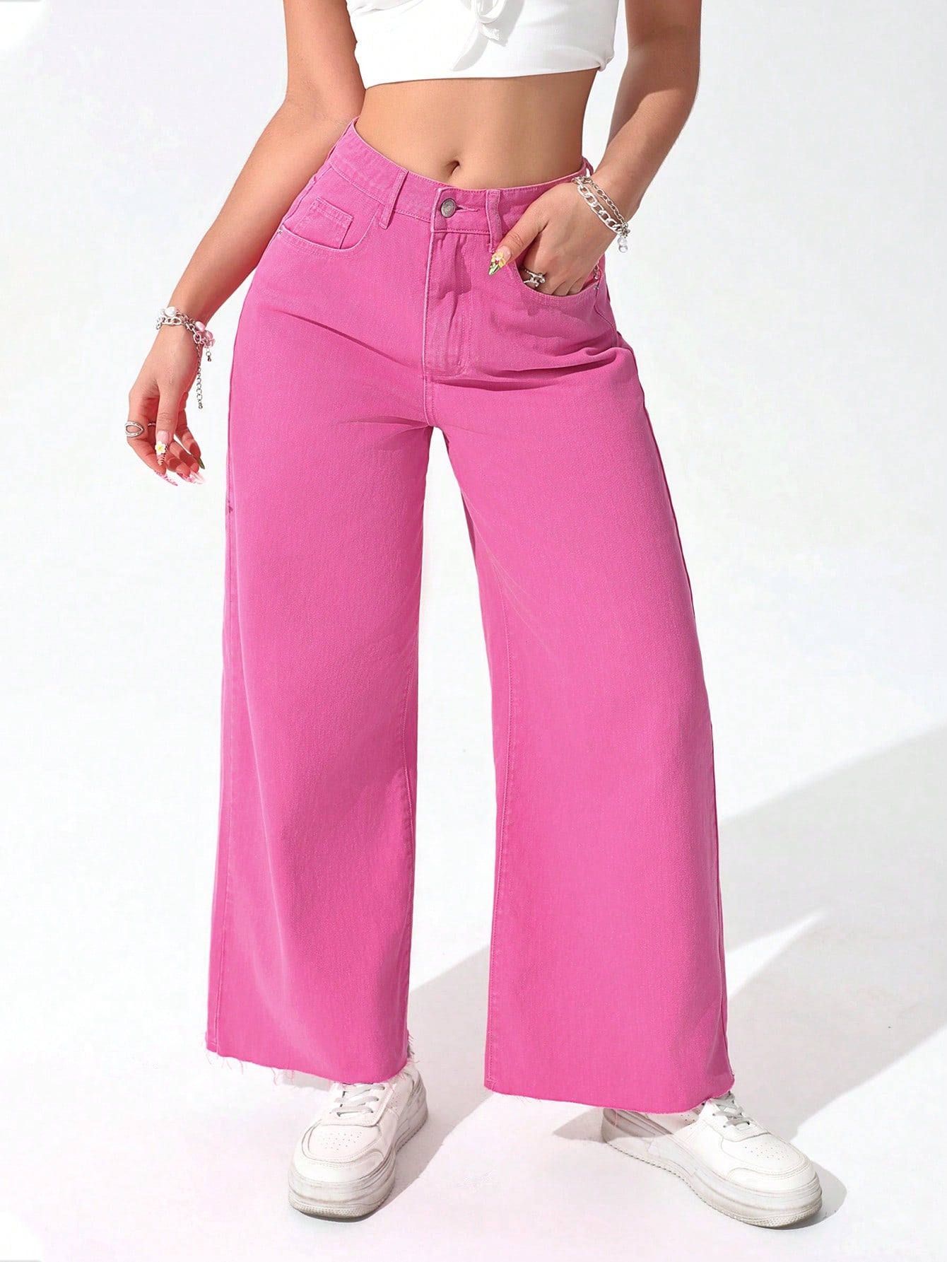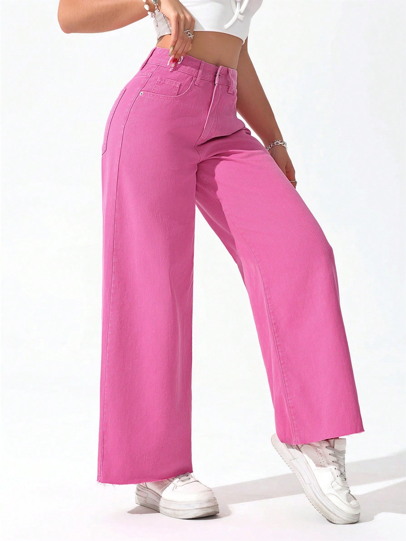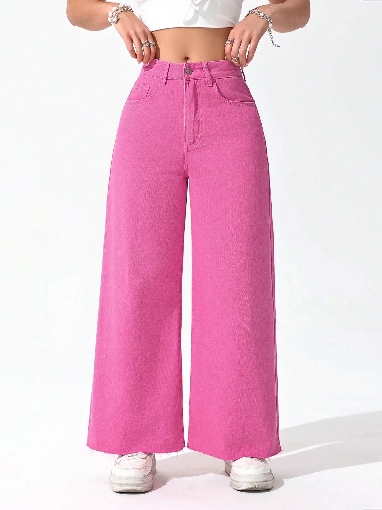 Jeanoix Plus Size Women's Pockets Wide Leg Loose Casual Versatile Denim Pants