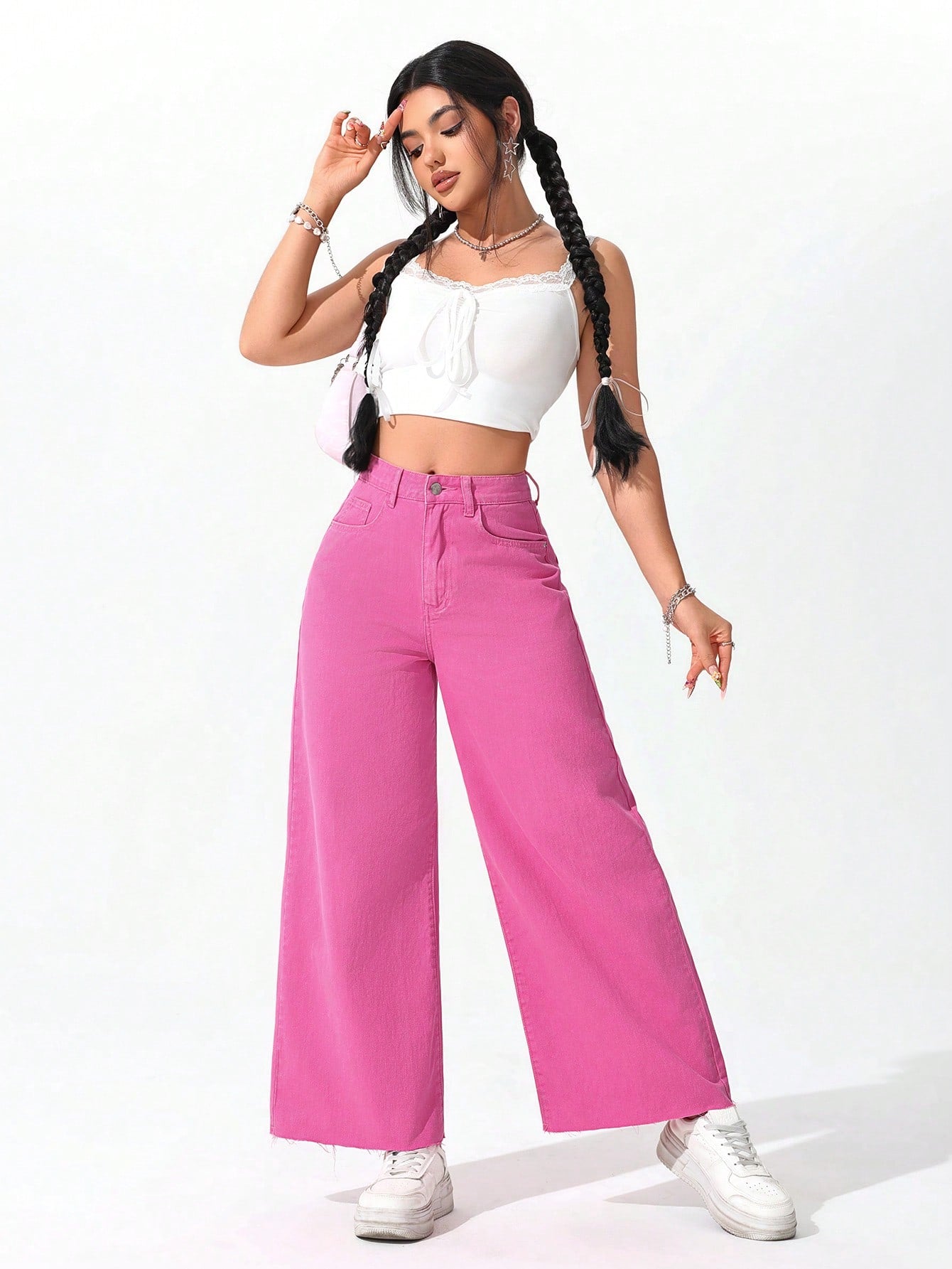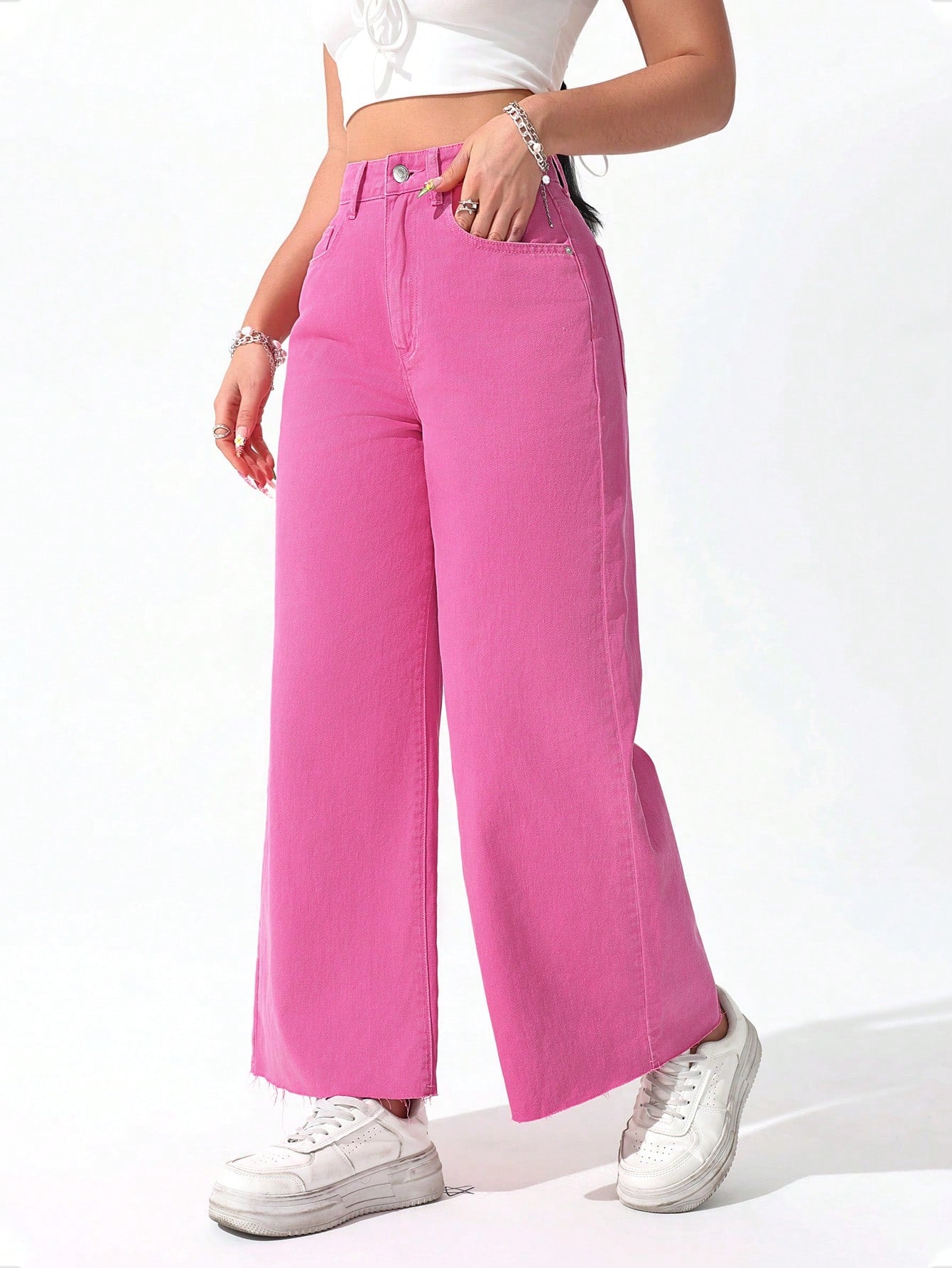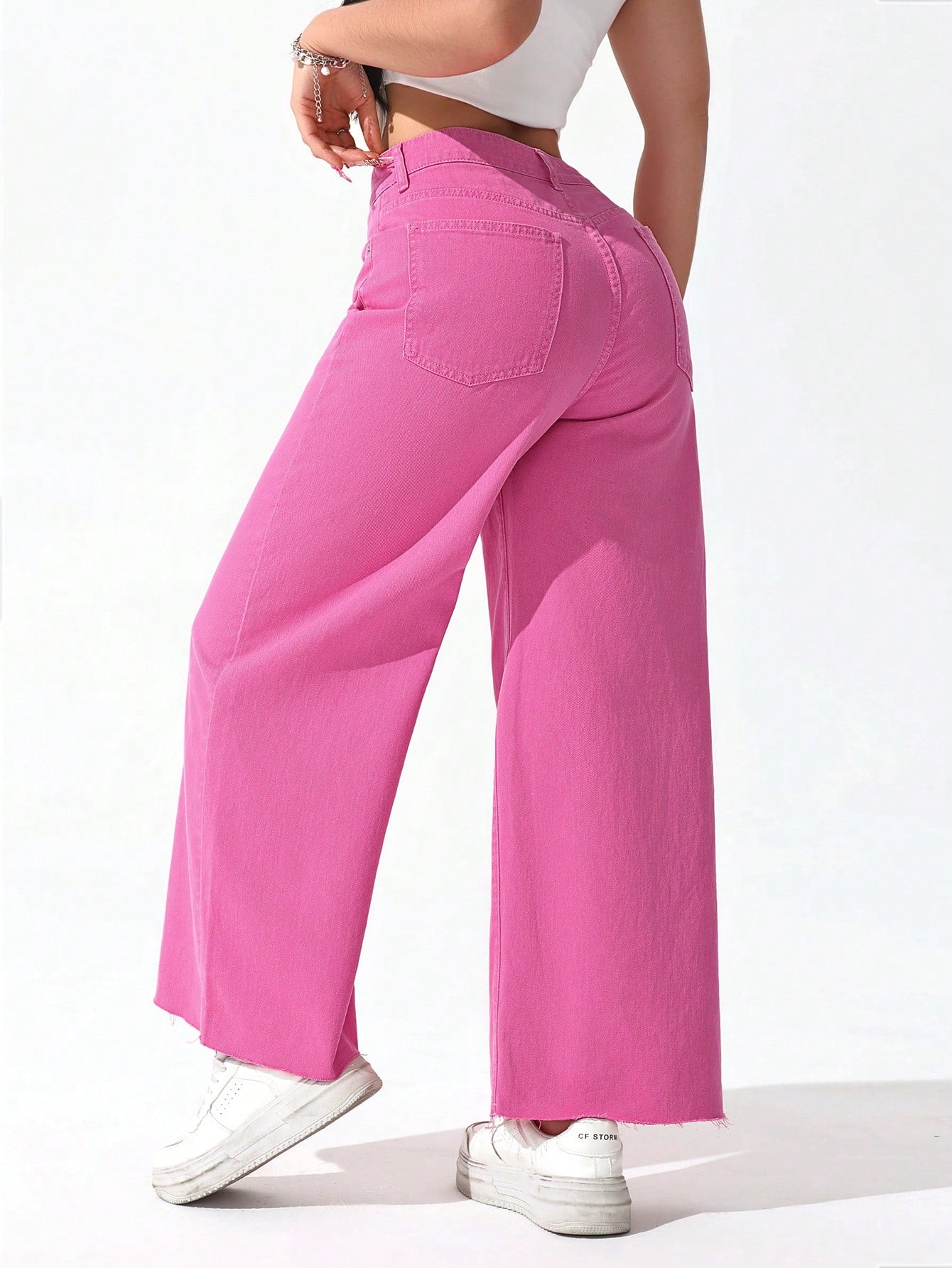 Jeanoix Plus Size Women's Pockets Wide Leg Loose Casual Versatile Denim Pants